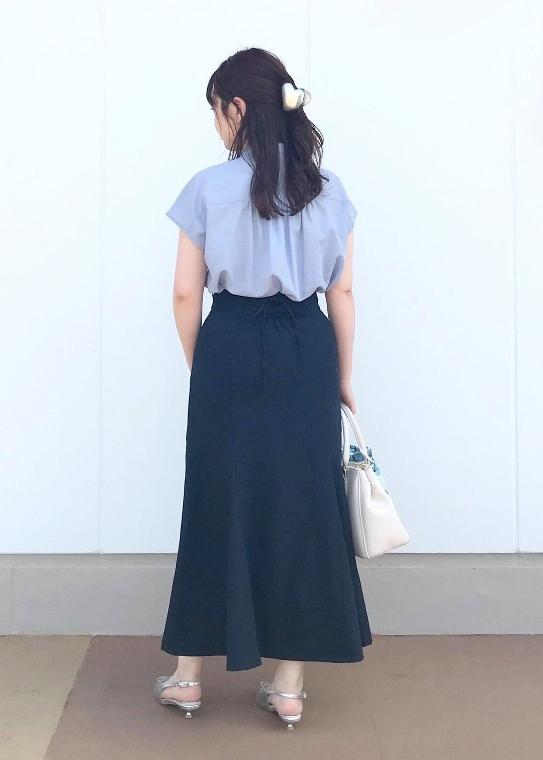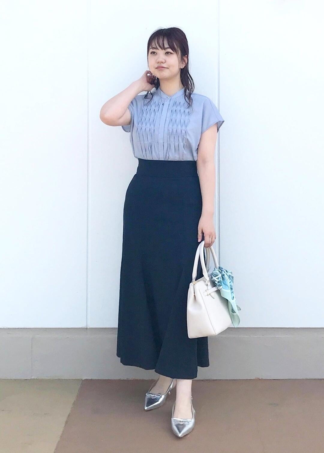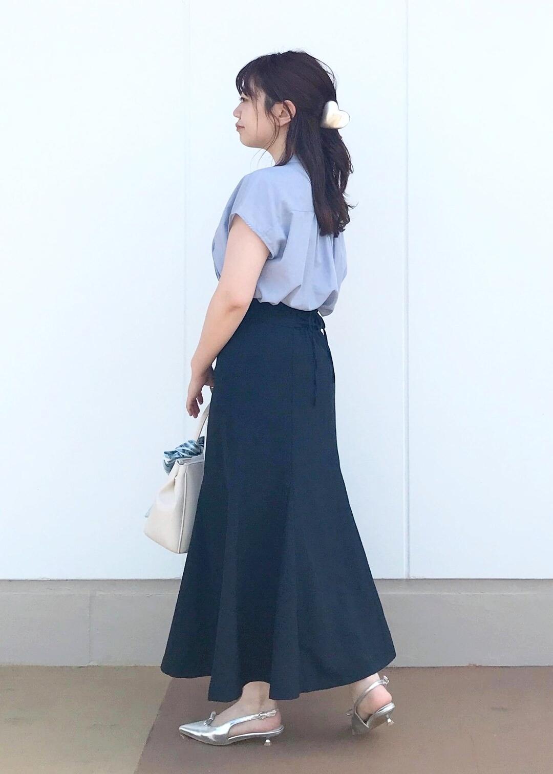ブルー系アイテムを使った夏の綺麗めコーデ。