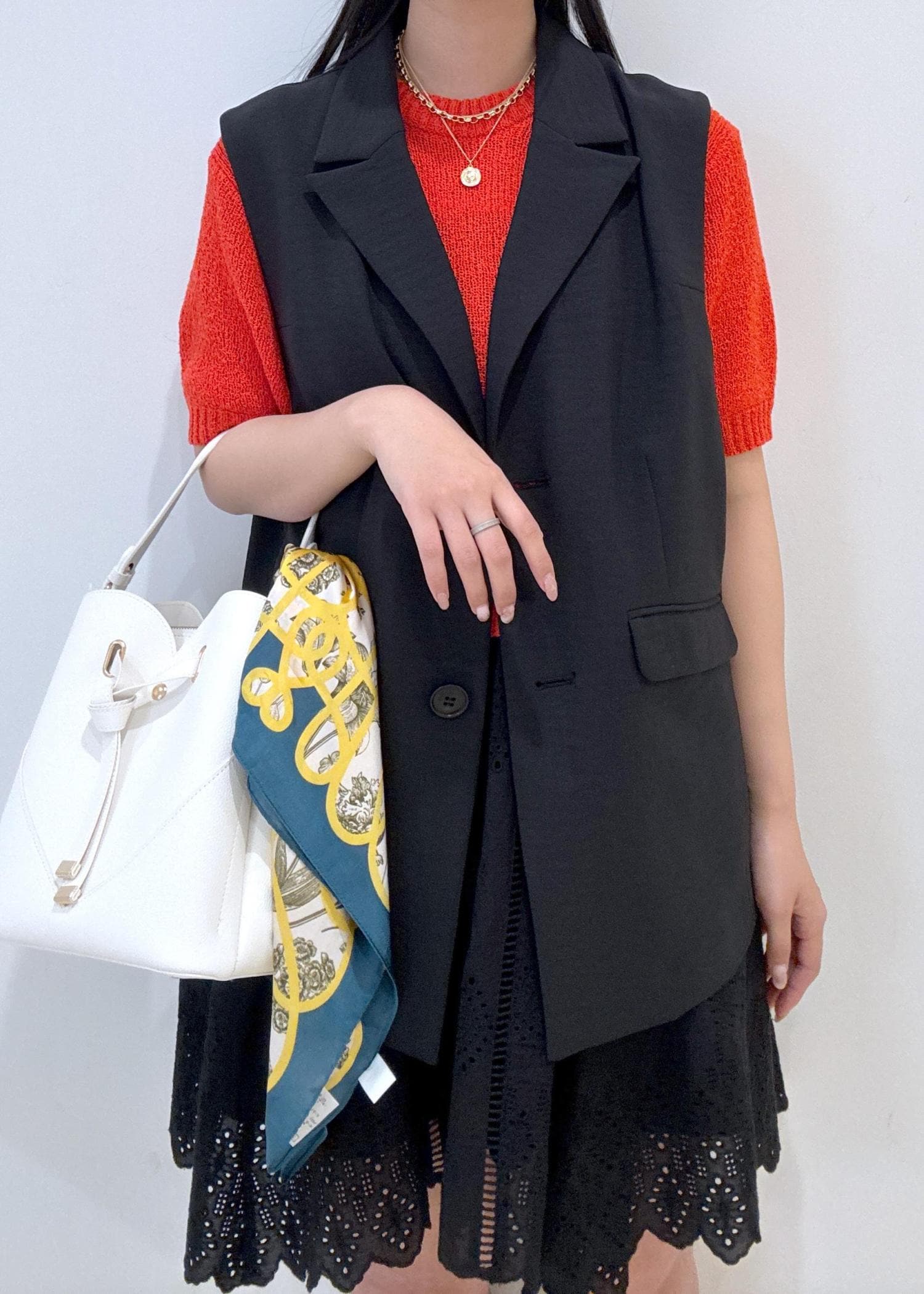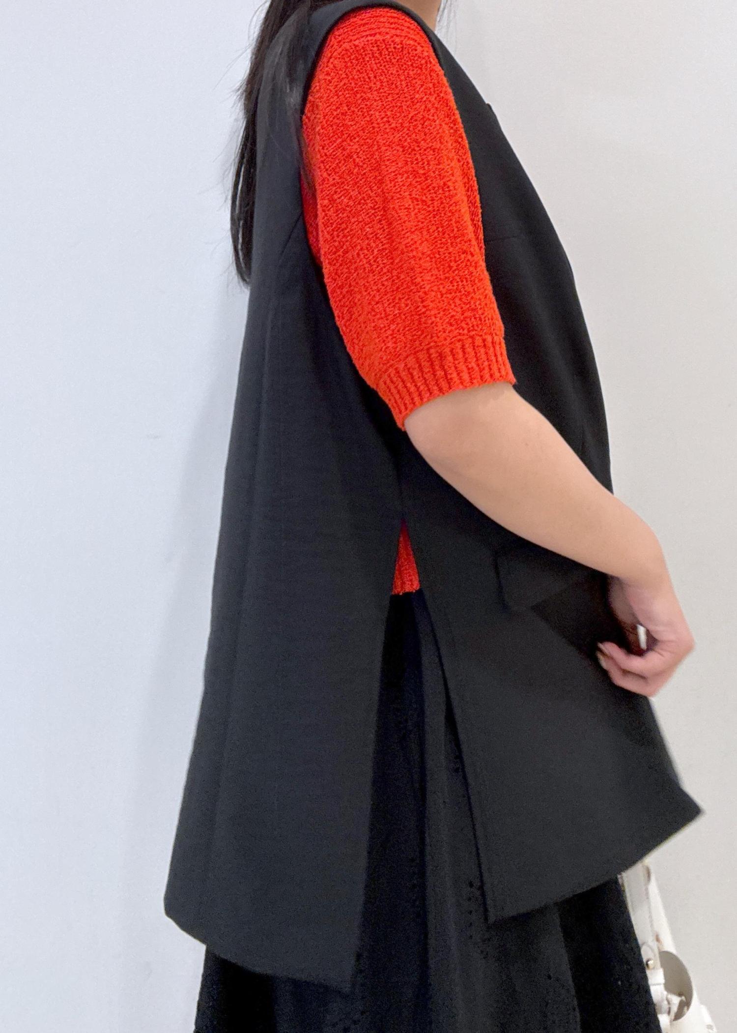 アウトレットVIS【セットアップ対応】サイド深スリットジレベストブラック / F¥3,164レビューサラッとした生地で、すごく涼しいです。横にスリットが入っているので、レイヤードコーデがすごく映えます。袖は短いので、二の腕はしっかり出ますが、その分さわやかにスッキリ着用できます。