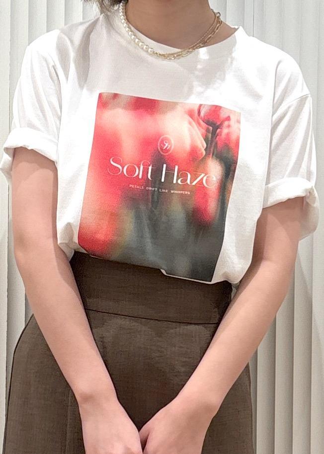 アウトレットVIS【接触冷感】フラワーフォト&ロゴTシャツホワイト / F¥1,580レビュー程よくゆとりがあり、着丈もしっかりあるので、