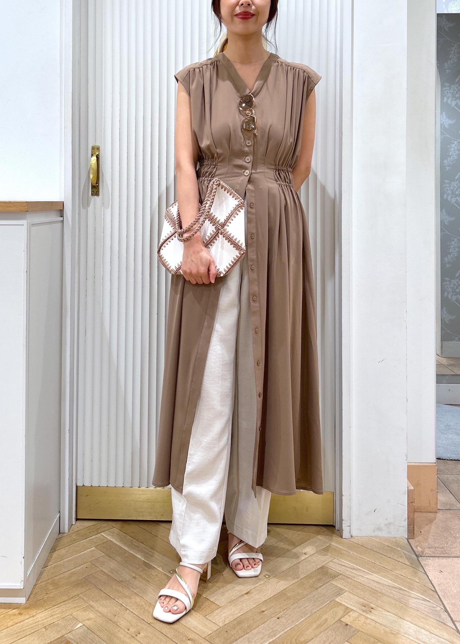 シルエットのきれいなワンピースにパンツをレイヤードしてコーディネートしました♡