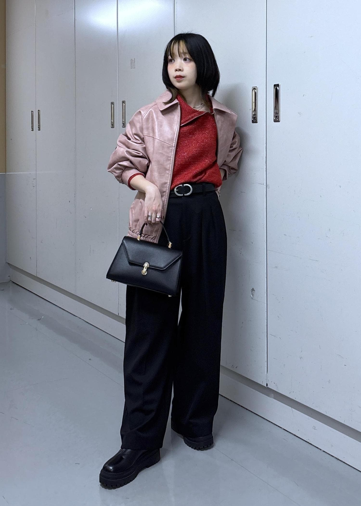 インナーに黒を着ており、少し透け感があるので白系のインナーを着るのがおすすめかも! -