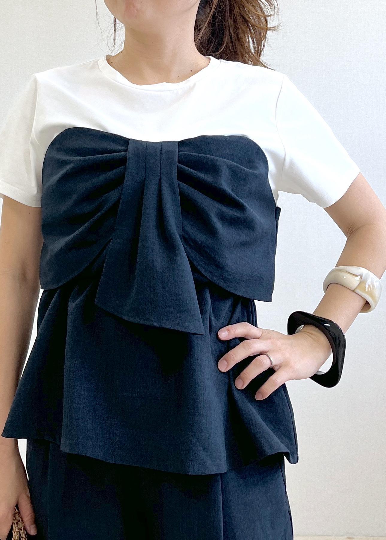 VIS【新色追加】【美easy】ねじりリボンTシャツドッキングプルオーバー【接触冷感/洗える】ネイビー / F¥5,489レビュー152cmでFサイズ着用し、着丈は腰にかかるくらいの丈。後ろゴムなので程よくフィットしてくれ、気になるお腹周りもカバーしてくれて◎サラッとした素材感で夏までお召しいただけます。着映えもしてくれる楽ちんトップスです!
