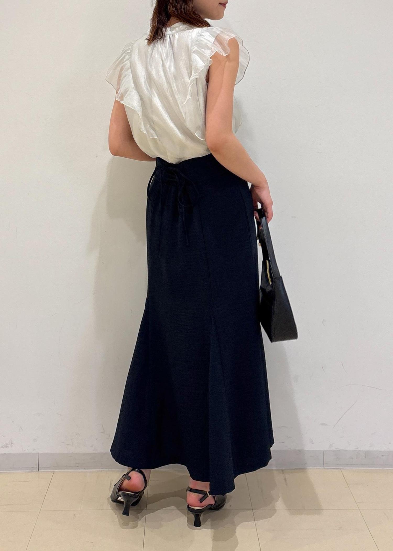 Mサイズだとウエストが大きめなので、後ろリボンで絞るとジャストなサイズ感になります◎ -