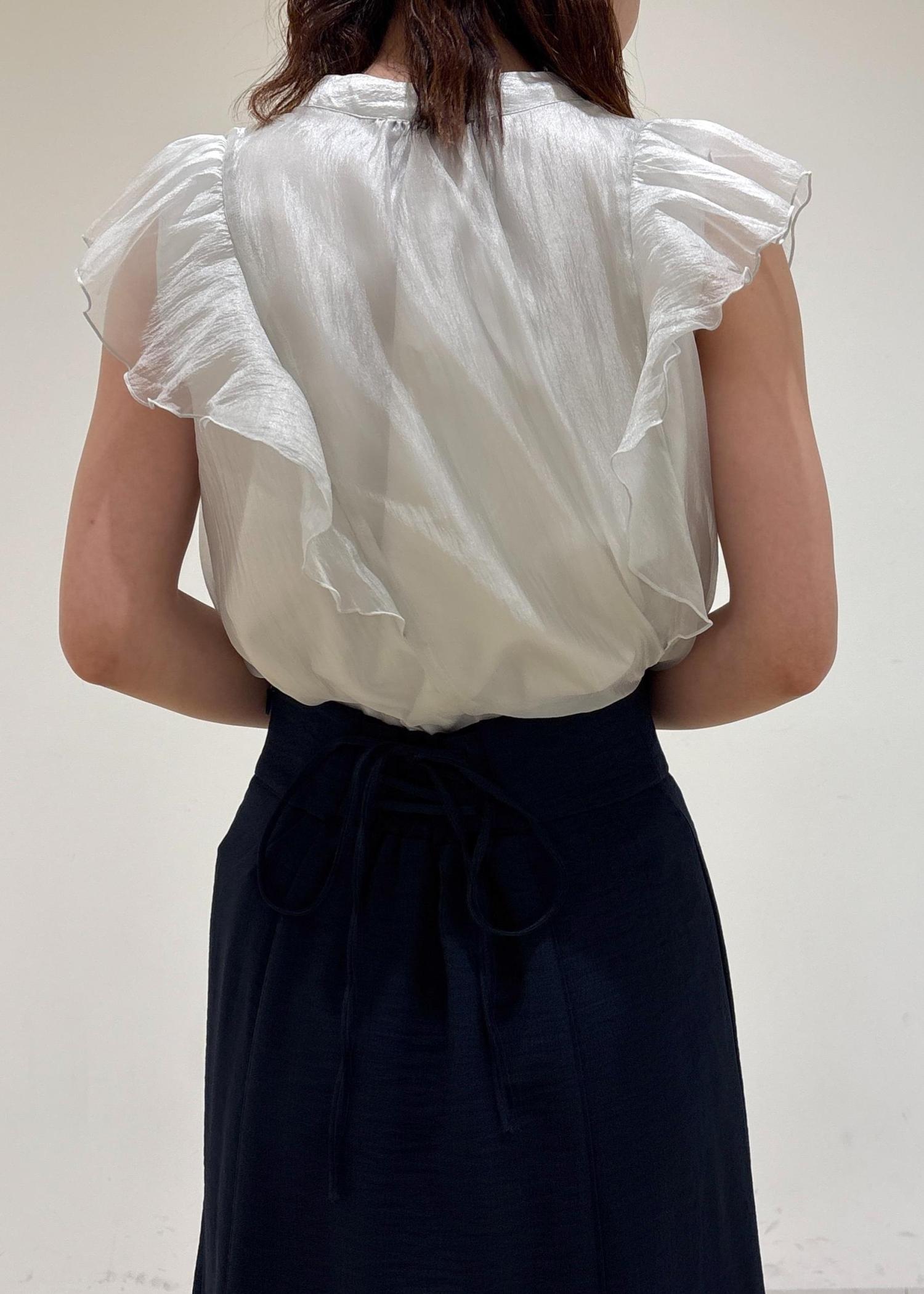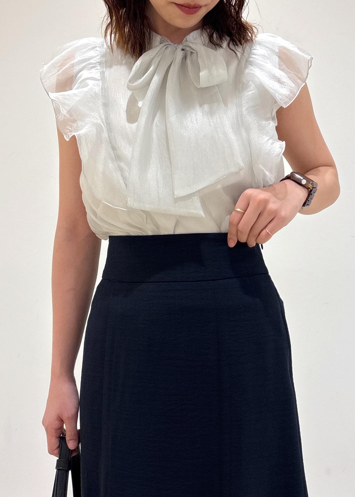 VIS【店頭人気】主役級!華やぎシアーシャイニーボウタイフリルブラウス【前後2WAY】【洗える】ベージュ / F¥5,489レビュー大人気のシャイニーボウタイブラウス。