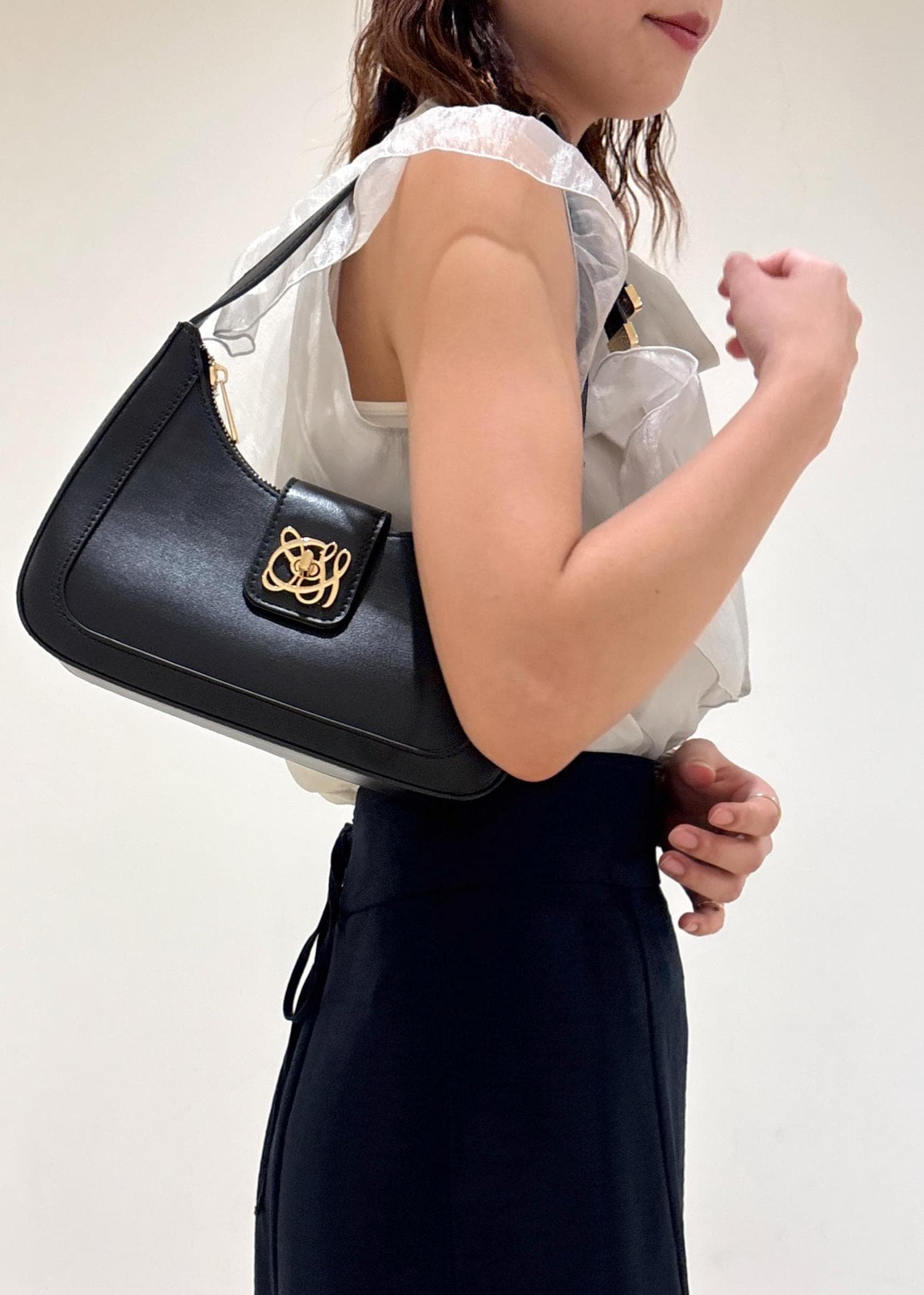 VIS【新色追加】【180℃美人見え】ハンドルリボンワンショルダーバッグブラック / F¥5,929レビュー丸みのある形がとても可愛いです!
