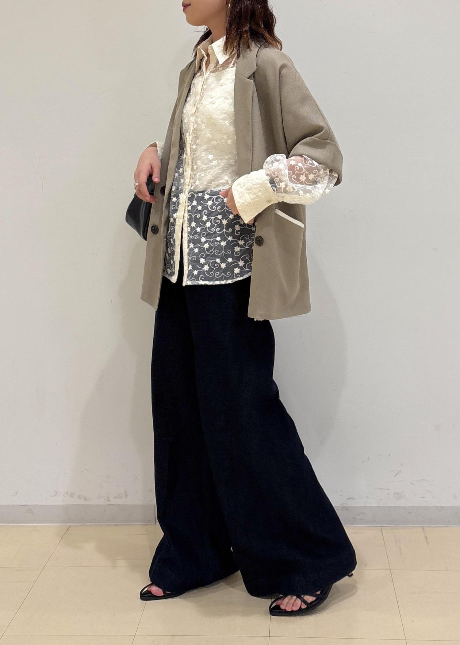 透け感がしっかりあるのでTシャツやキャミなど入れていただくのがオススメです◎