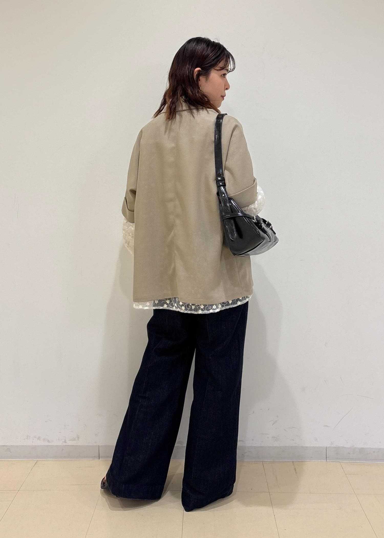 ヒップがしっかり隠れる丈感と、肩線が無いので落ち感が出てすっきりとした印象になります!