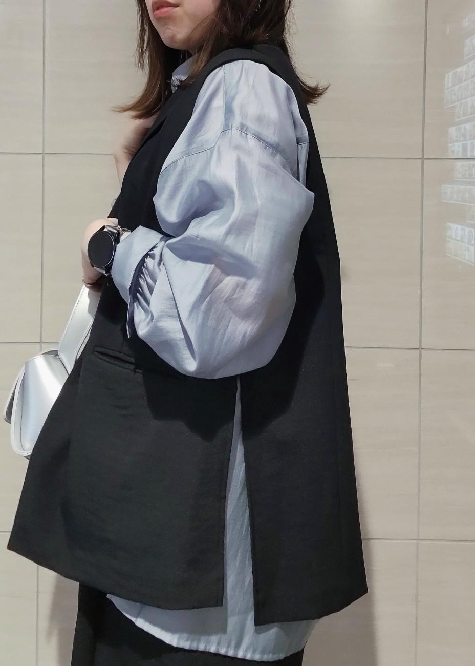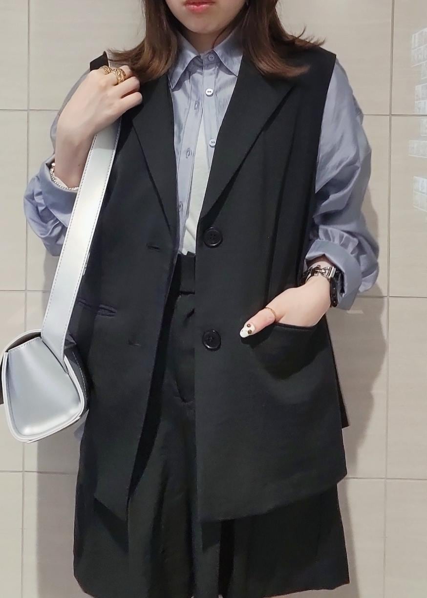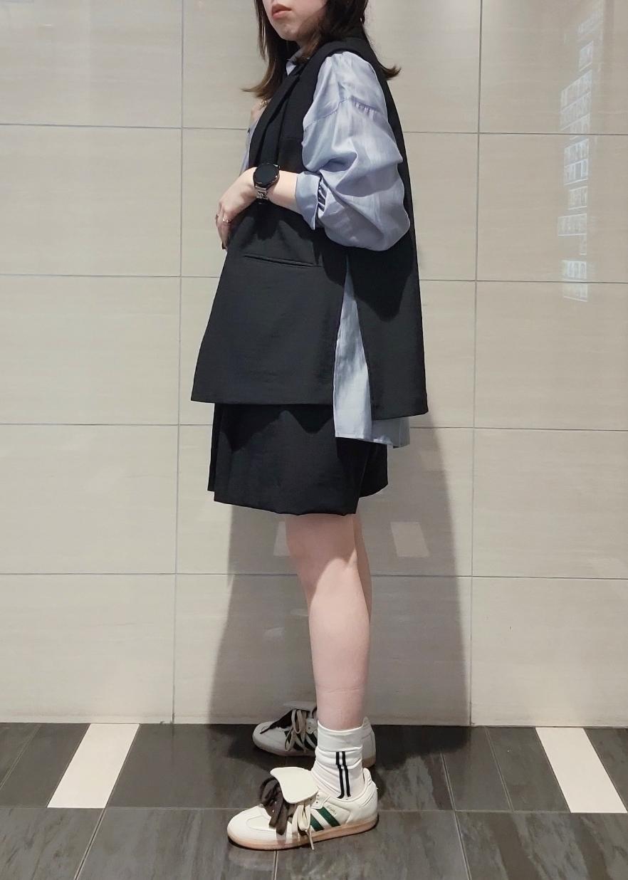 ジレのセットアップにスニーカーを合わせてボーイッシュなスタイリングにしました♪