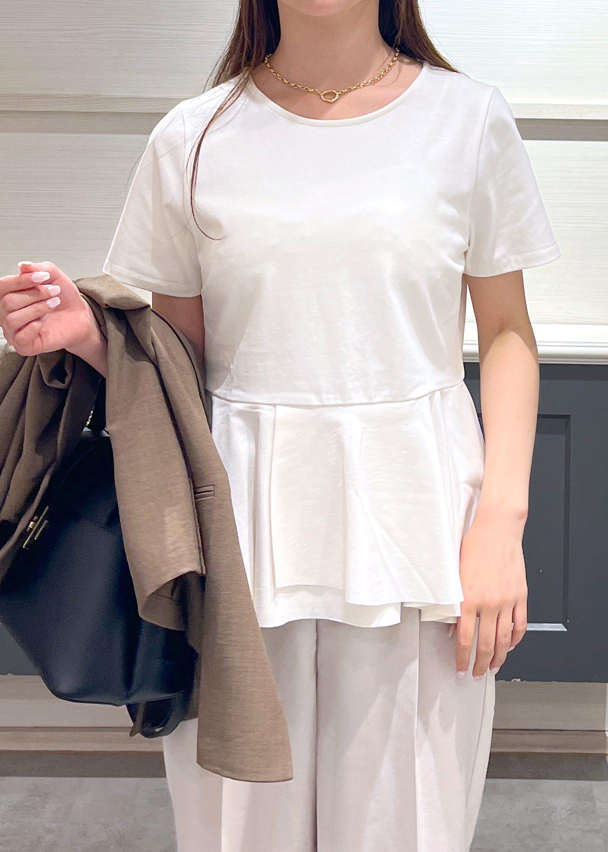 イレギュラーヘム異素材ドッキングペプラムプルオーバー