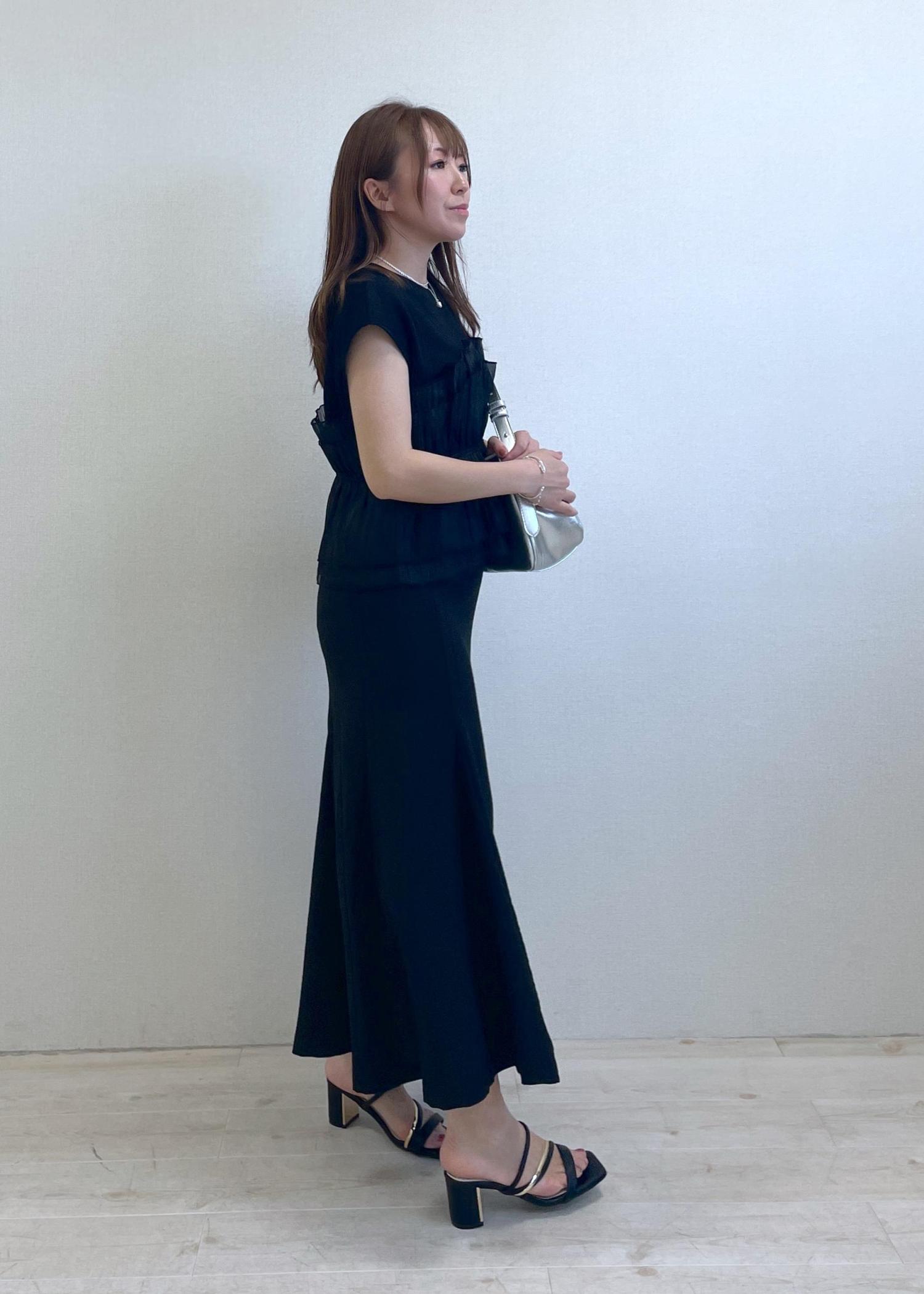 VIS旬なレイヤードスタイルが叶う!ビスチェドッキングフレンチスリーブプルオーバー【洗える】ブラック系 / F¥5,489レビュー150cmでFサイズ着用です!