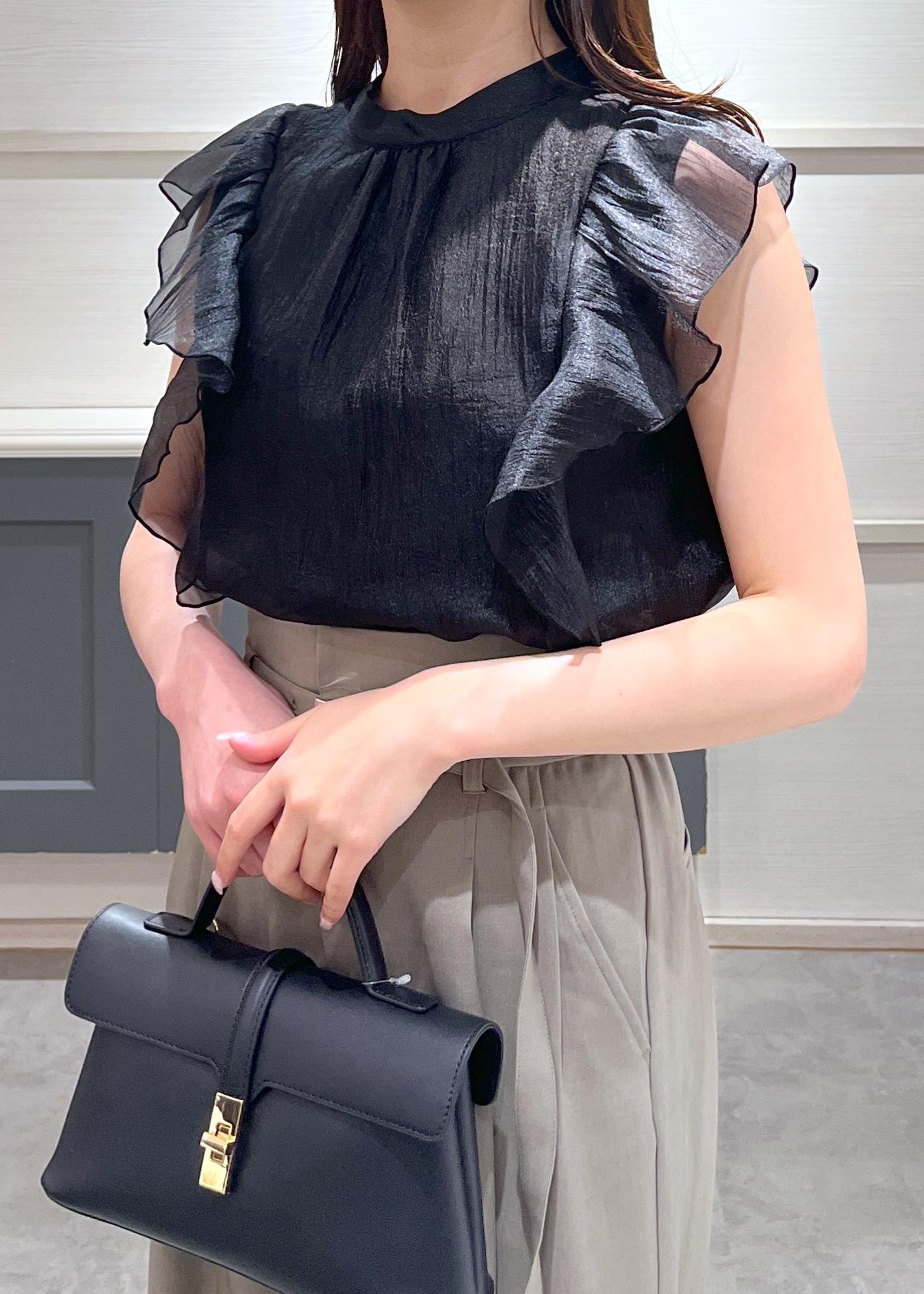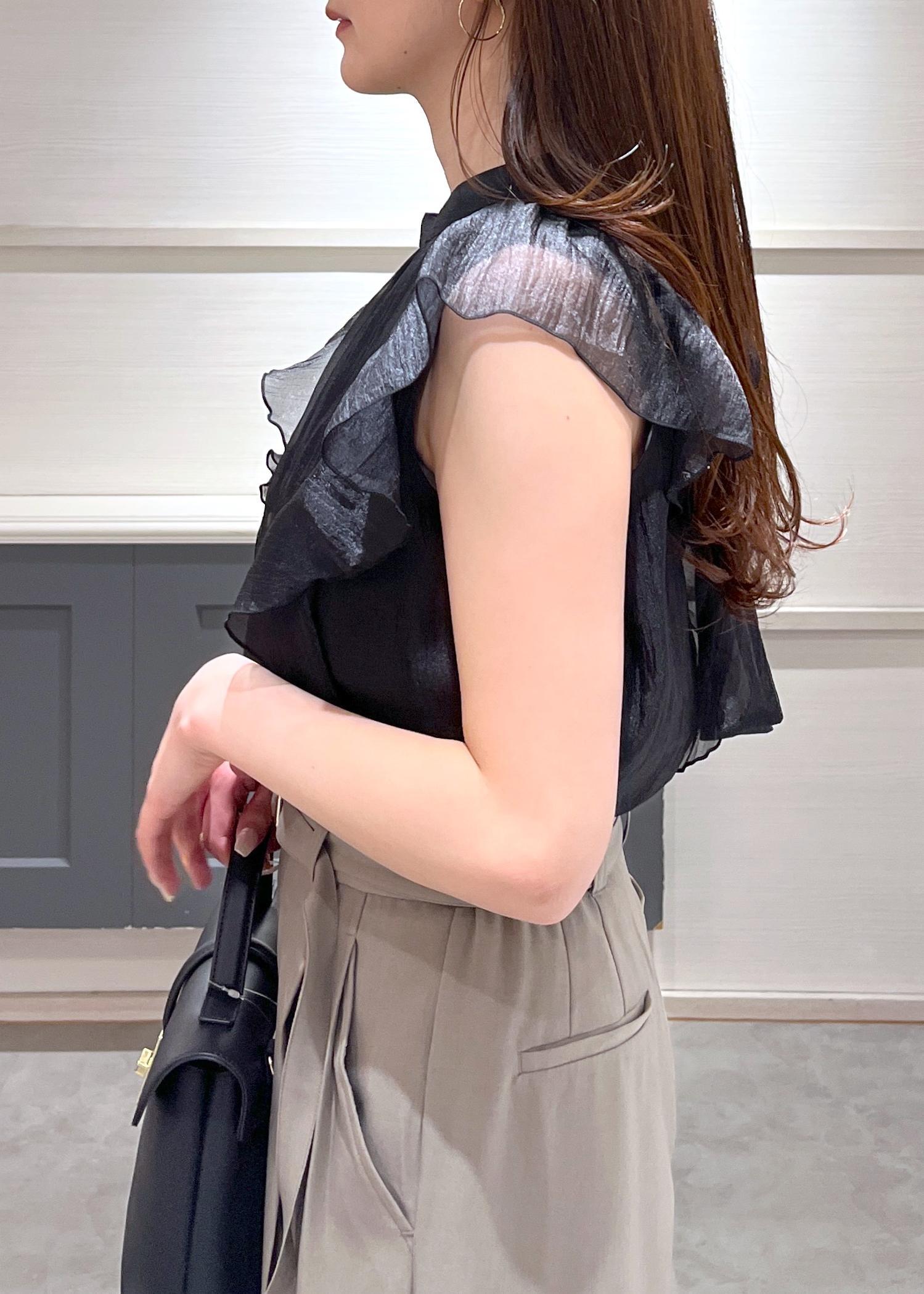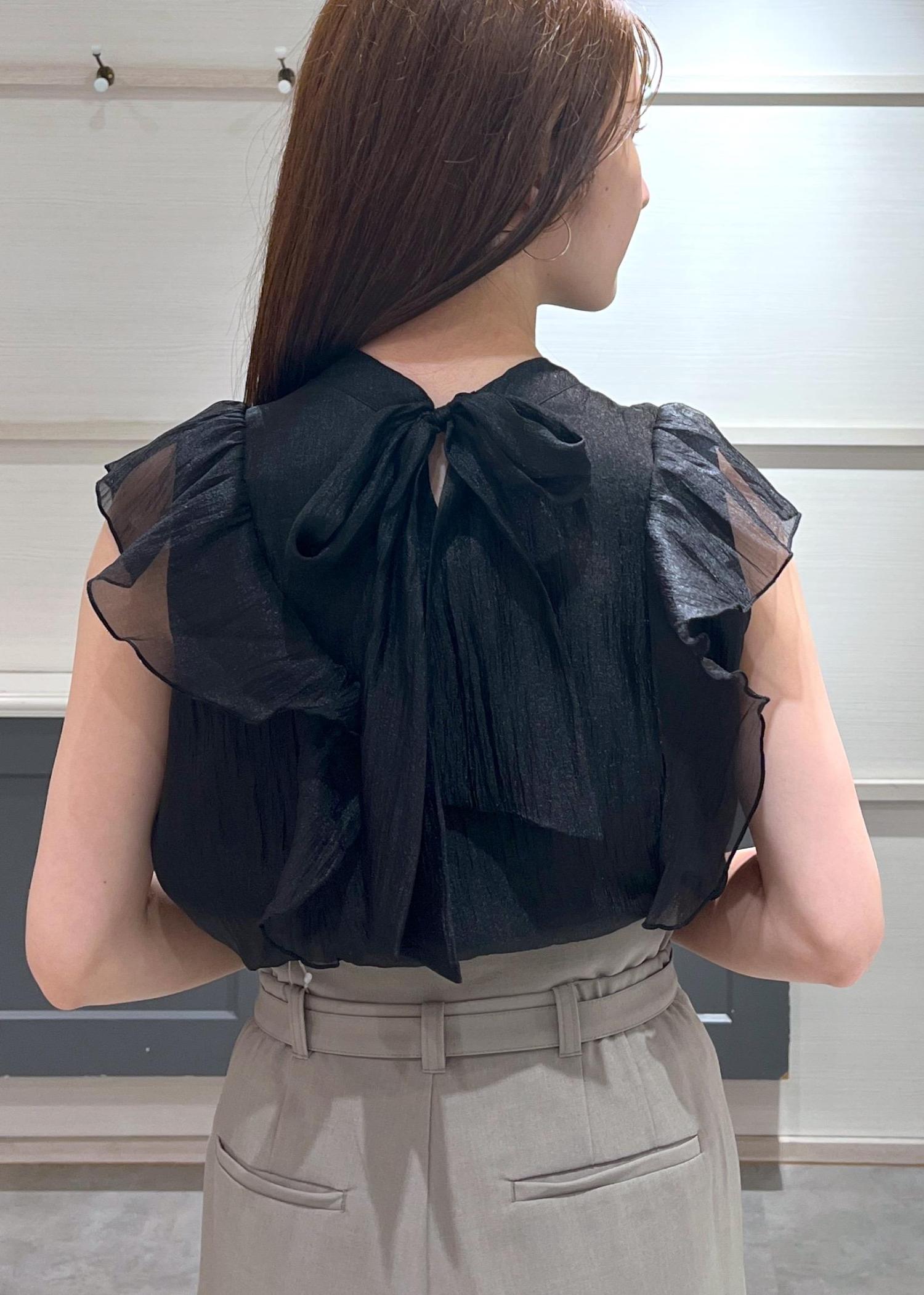 VIS【店頭人気】主役級!華やぎシアーシャイニーボウタイフリルブラウス【前後2WAY】【洗える】ブラック / F¥5,489レビュー156cmでヒップにかかる丈感です◎