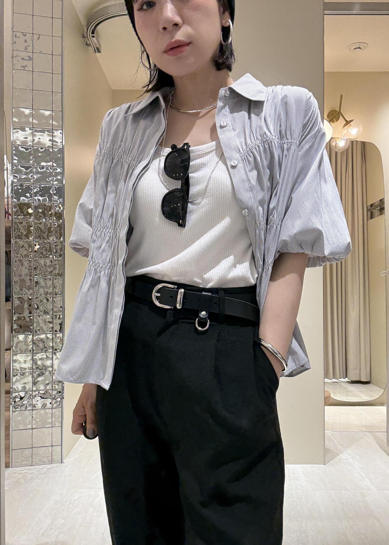 シャーリング部分はゴムになって伸びるので、シャツなのに楽に着れて、シワ感も気になりにくいです! -