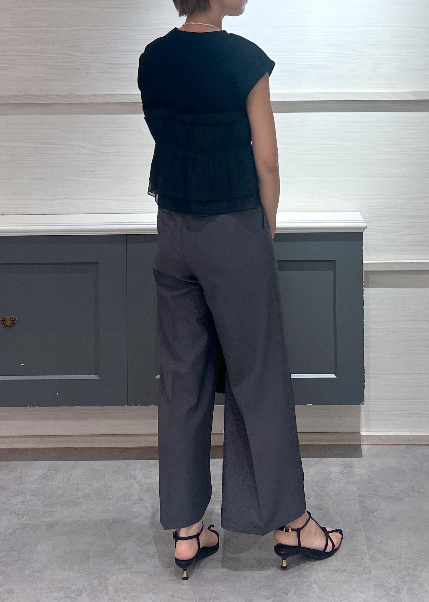 柔らかくすとんと落ちる生地感で、ストレートラインがとても綺麗なパンツです。 -