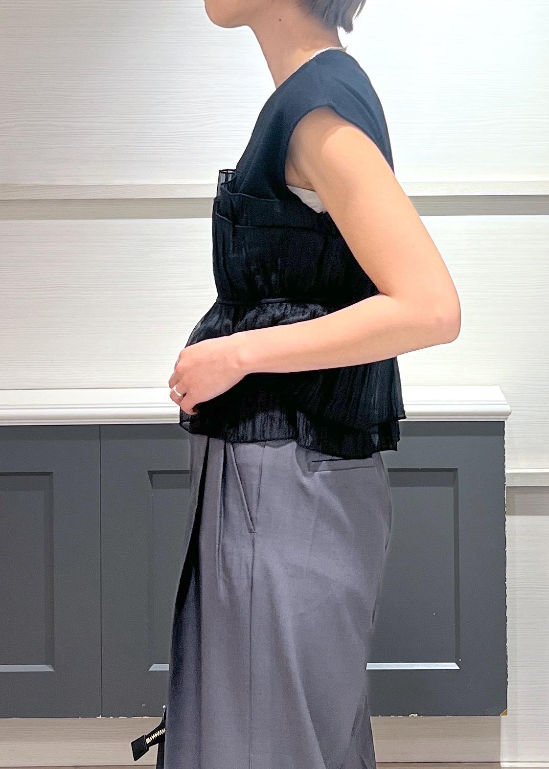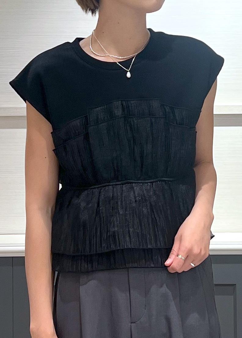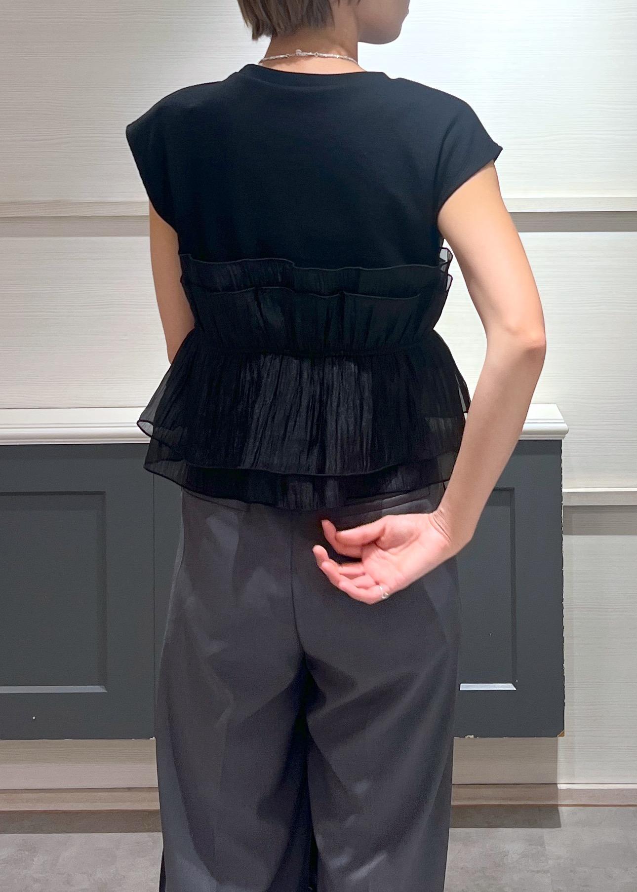 VIS旬なレイヤードスタイルが叶う!ビスチェドッキングフレンチスリーブプルオーバー【洗える】ブラック系 / F¥5,489レビューリブ編みのカットソーが程よく伸縮性があって着やすいです◎