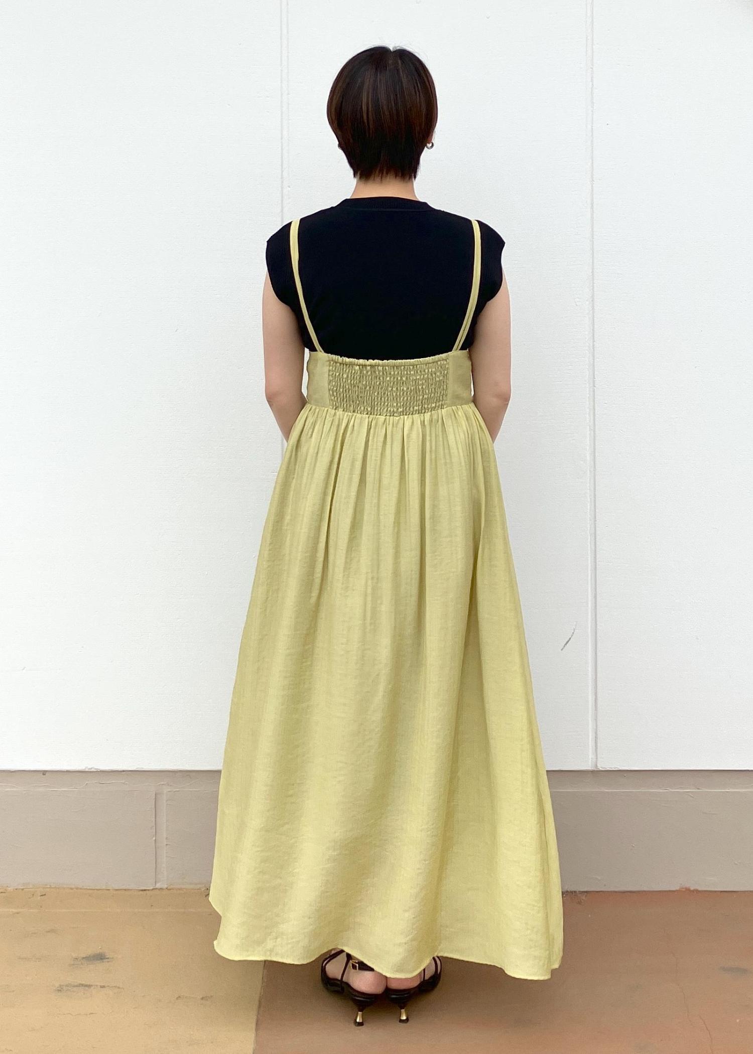 アウトレットVISAラインキャミワンピースライトグリーン / F¥3,955レビューバスト下での着用がおすすめのキャミワンピースです!素材が薄く柔らかいので軽やかな印象のAラインシルエットです!インナーにはタンクトップやTシャツで雰囲気を変えて楽しめます!肩紐ストラップは長さ調節可能なので幅広い方にお使いいただけます!ストッパーパーツがきらりとワンポイントに!裾に向かってたっぷりとボリュームを取っているので落ち着いた大人のリラックスキャミワンピースです!