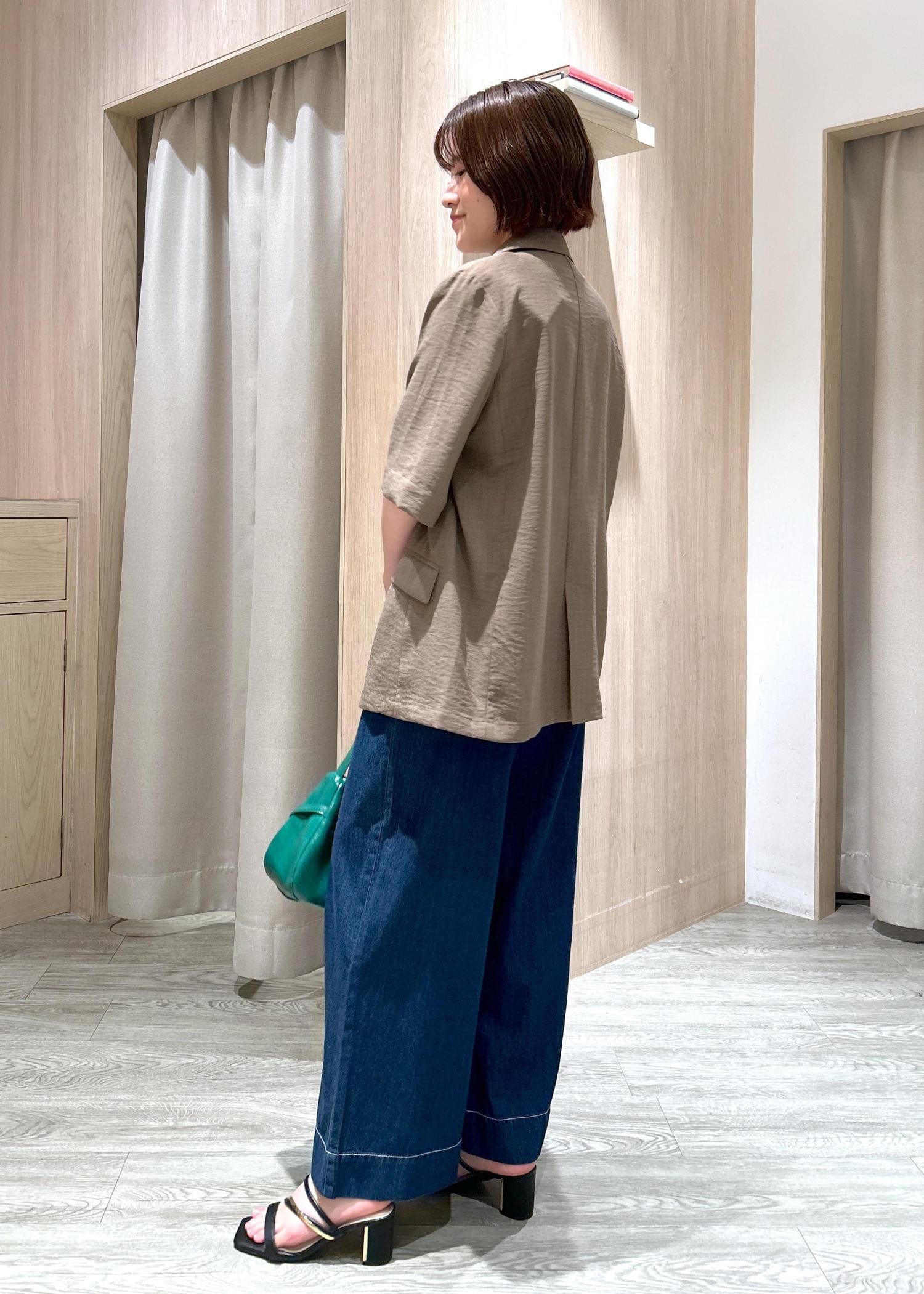 VIS【美easy】ハーフスリーブジャケット/セットアップ対応・洗えるカーキ系 / S¥7,909レビュー身長155cm、Sサイズ着用でお尻が隠れる長さです。