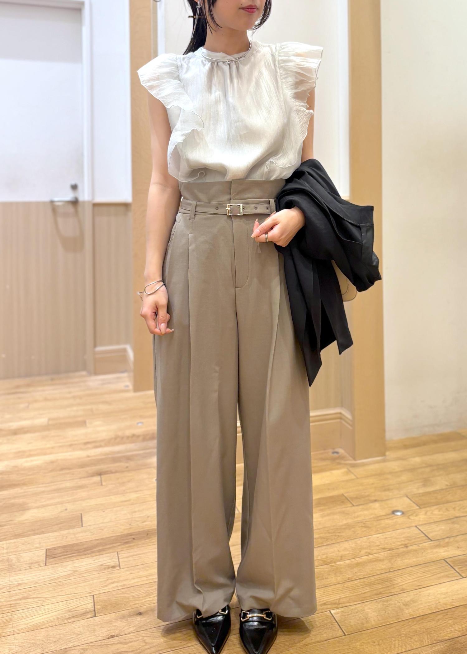 VIS【新色追加】【防シワ/接触冷感】ベルトディテールタックワイドスラックスパンツベージュ系 / S¥6,589レビュー156センチでSSサイズがジャストでした。靴にかかるかかからないかくらいの丈で着用できました。