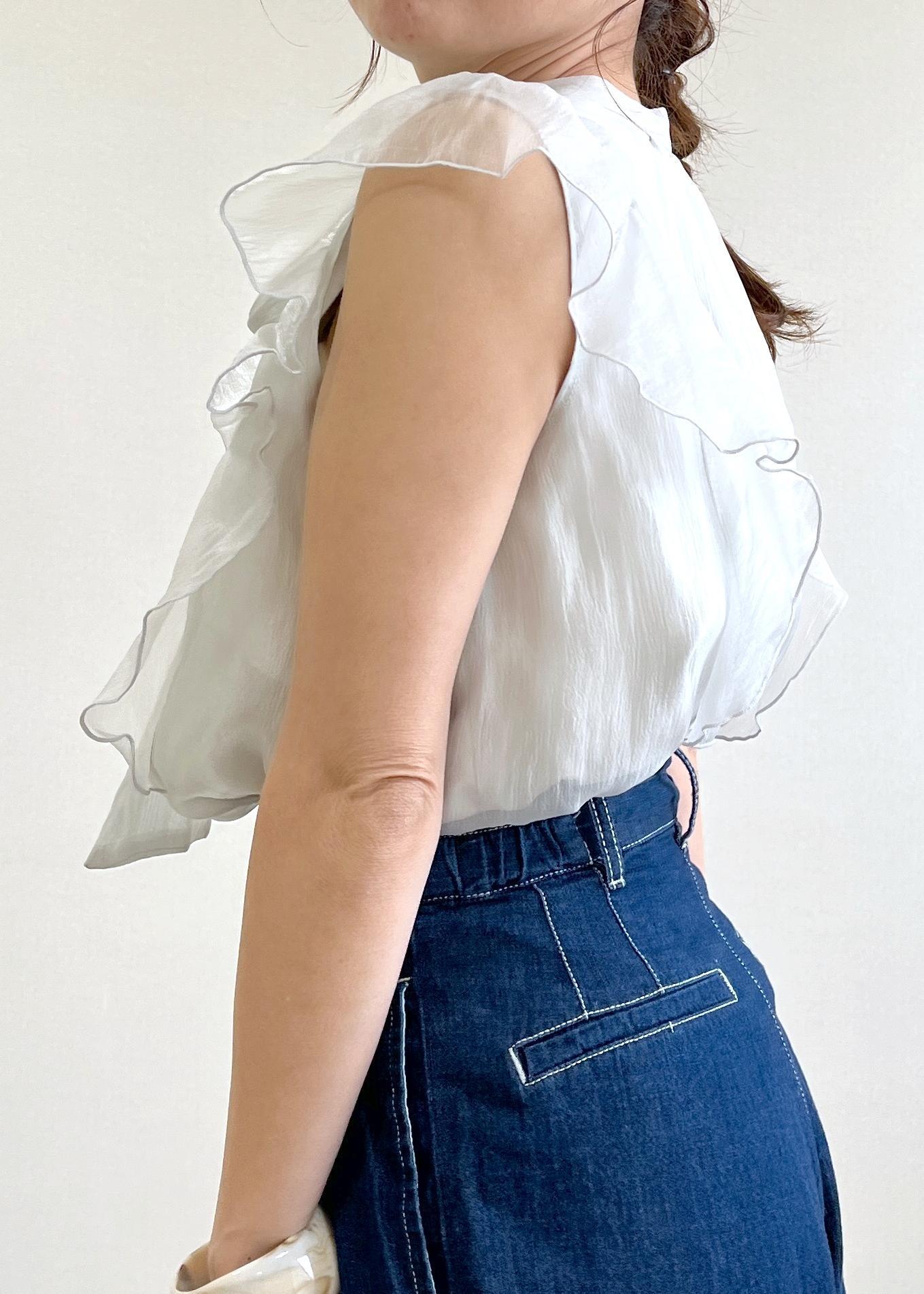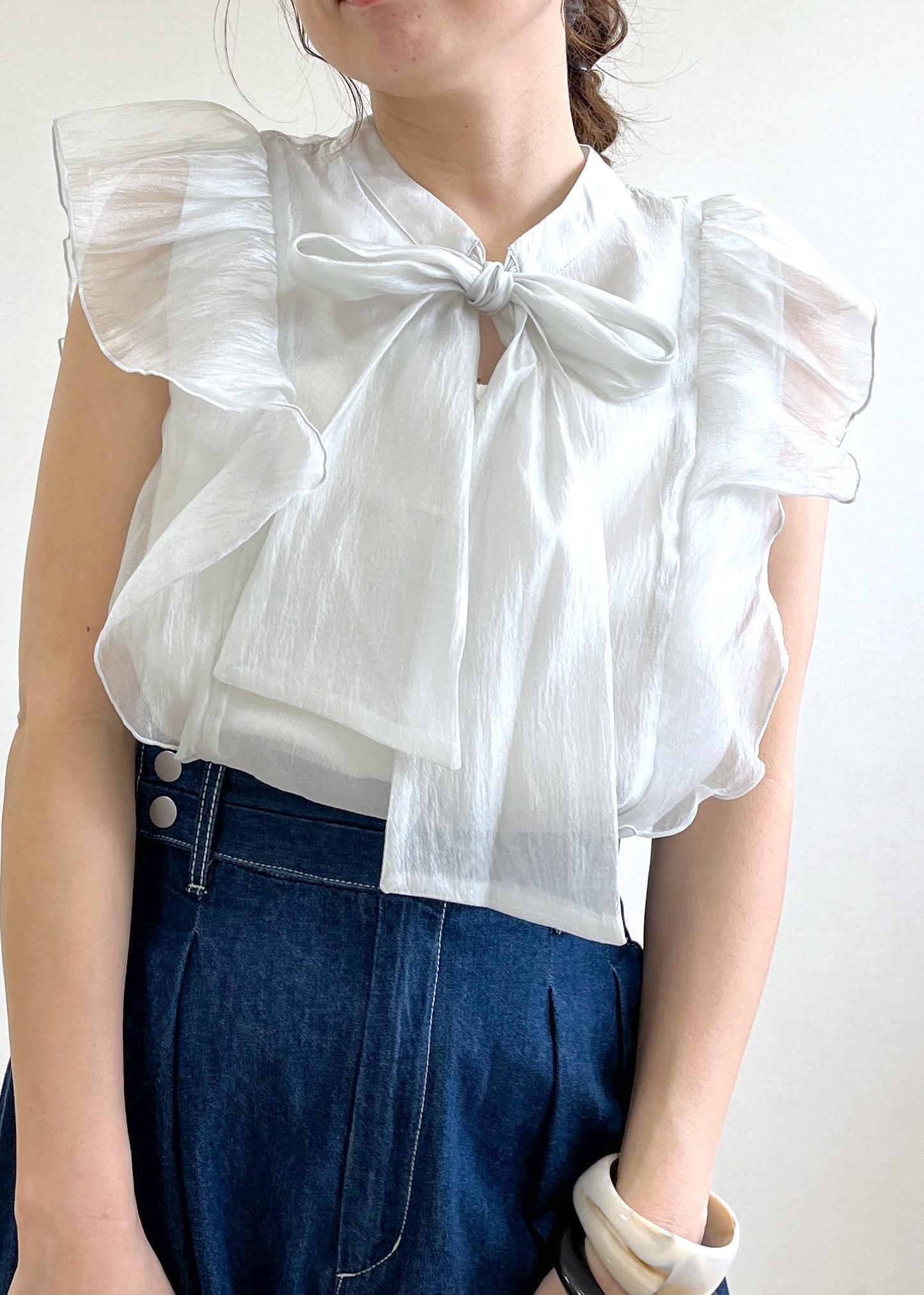 VIS【店頭人気】主役級!華やぎシアーシャイニーボウタイフリルブラウス【前後2WAY】【洗える】ライトグリーン / F¥5,489レビュー152cmでFサイズ着用し、着丈は腰にかかるくらいの丈。やや細身ですっきりお召しいただけるサイズ感。身体のラインを拾いすぎることはなく、スカートにもパンツにも合わせやすいです。柔らかい素材感がとっても着やすく、夏でもベタつくことない涼しいブラウスです。