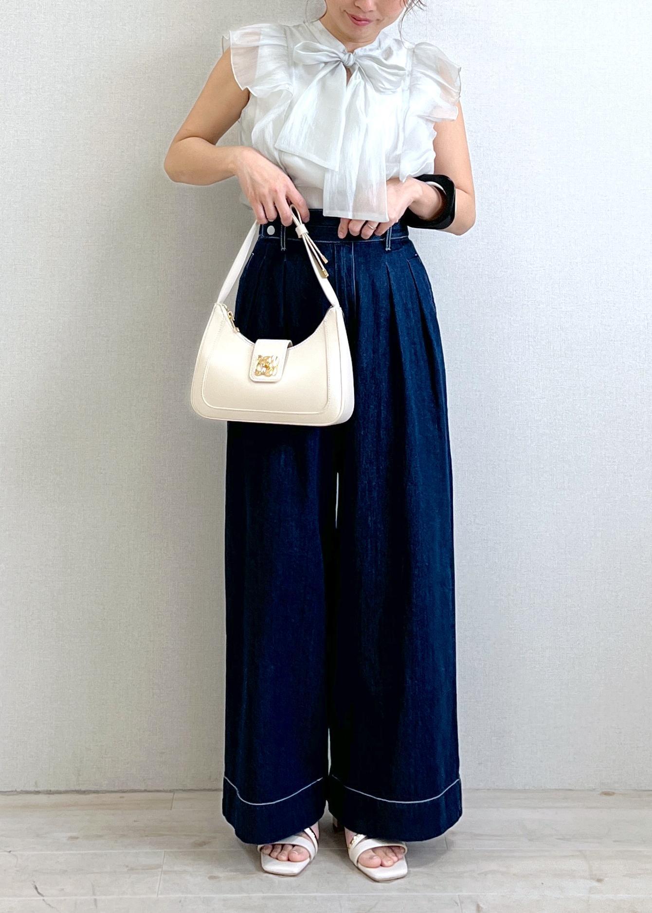 アウトレットVISタックデザインリラックスデニムパンツブルー / S¥3,460レビュー152cmでSサイズ着用し、着丈はペタンコ靴でも床につきませんでした。ウエストもジャストサイズ。ワイドシルエットですが、個人的にはもう少し太めでも良いかなと思うサイズ感でした。柔らかくて薄めのデニムなのでこれからの時期にもピッタリです!