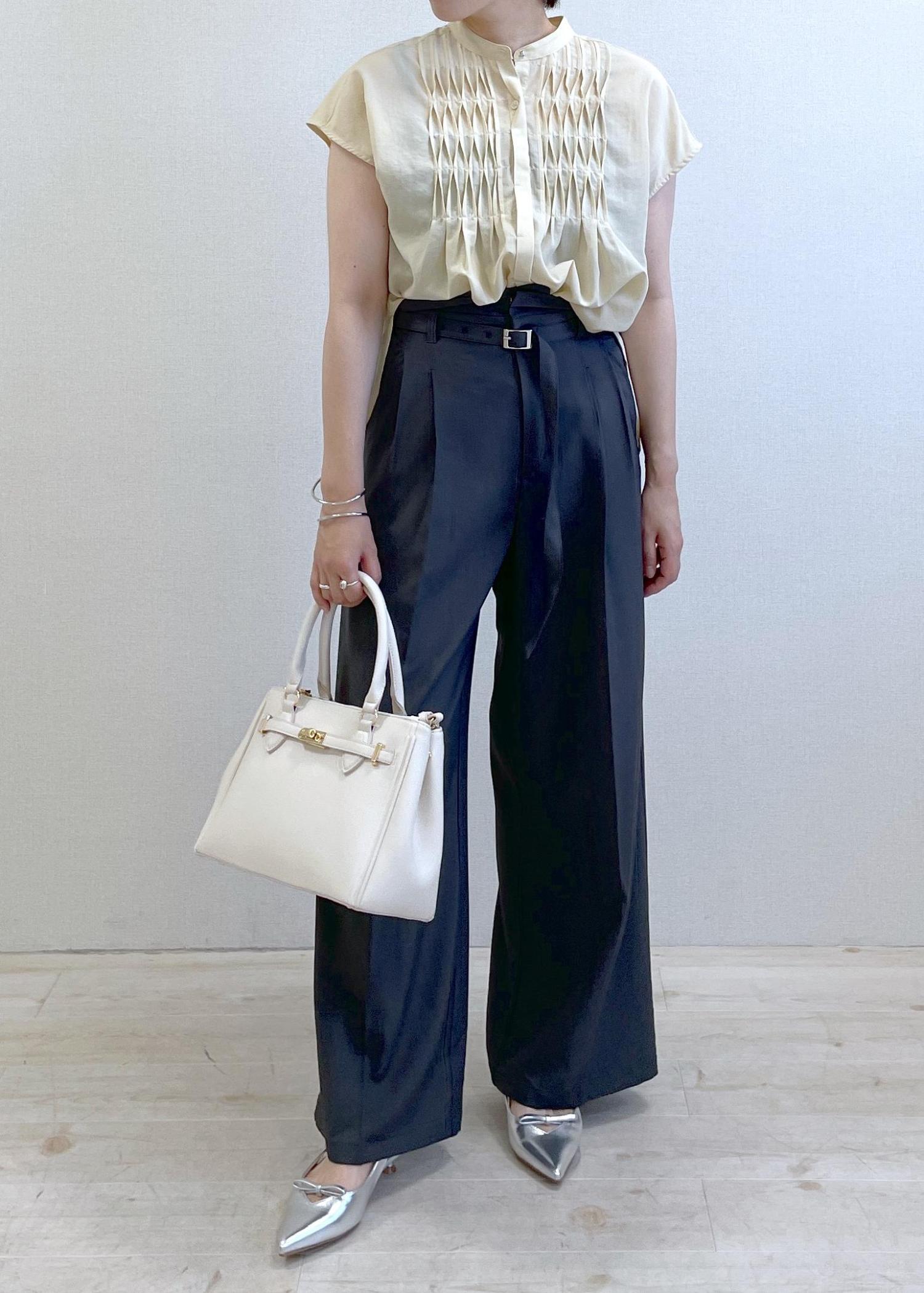 ハイウエストで、ベルトデザインもかわいく、インスタイルで着用すると、脚長効果もありキレイです。