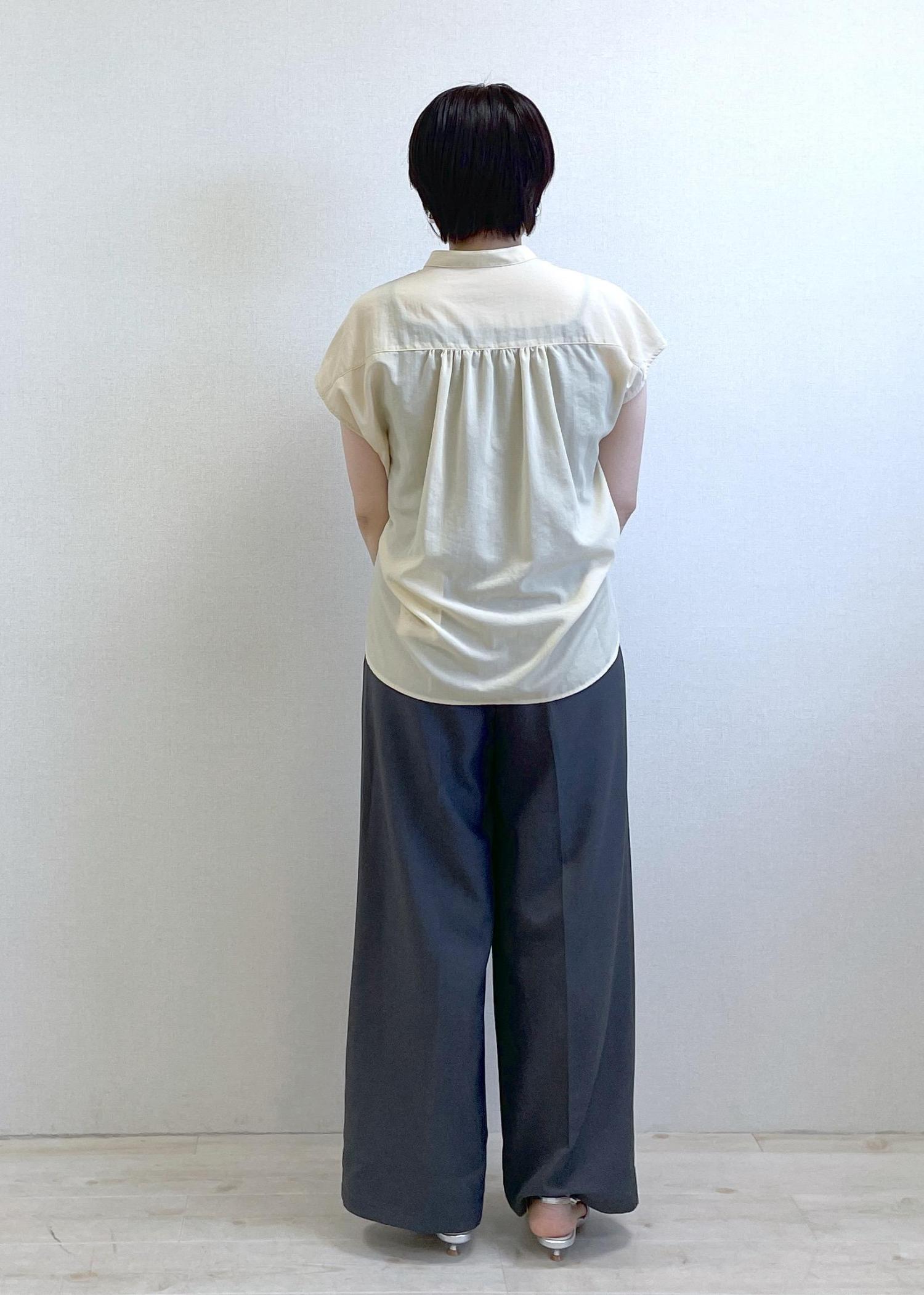 全体的にややゆとりのあるサイズ感で、窮屈感もなく、後ろはお尻すっぽり隠れる丈感で安心感もあります。