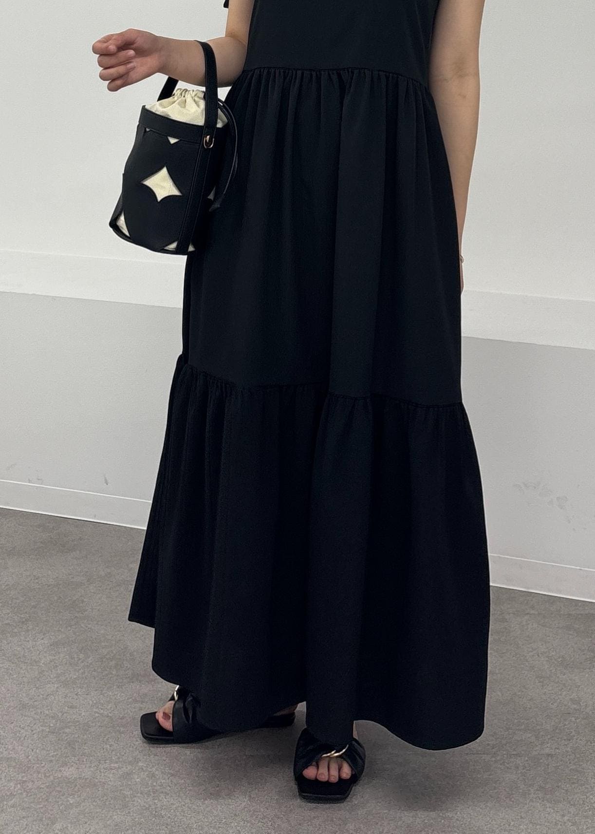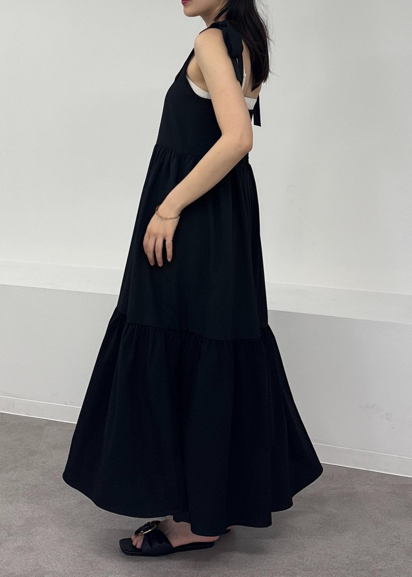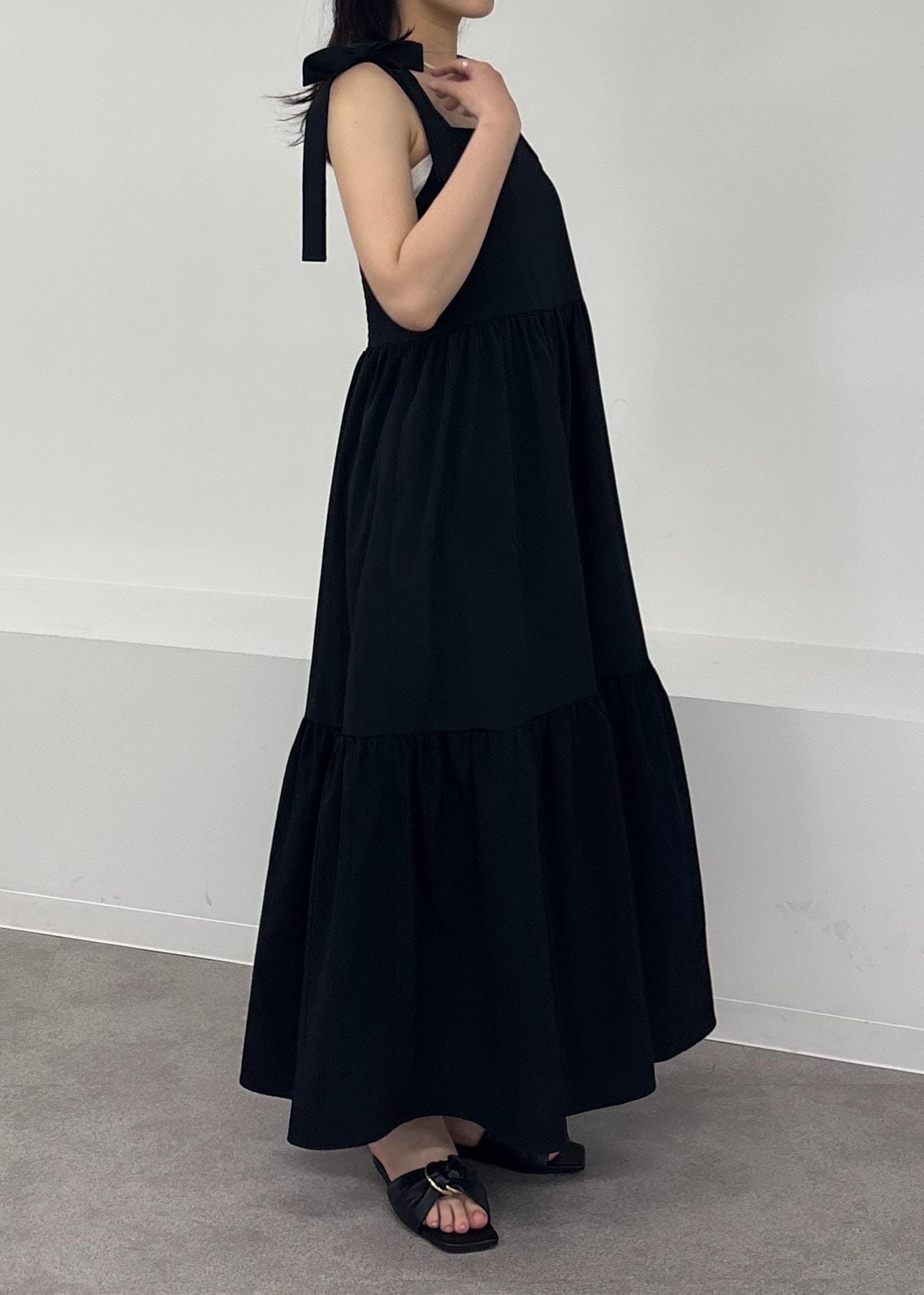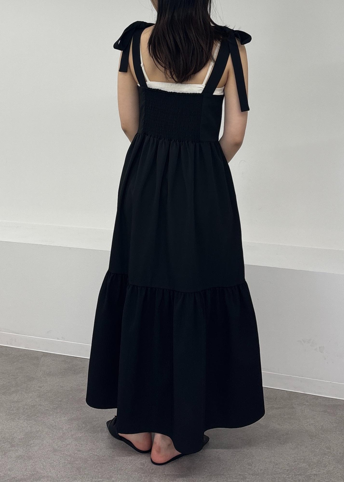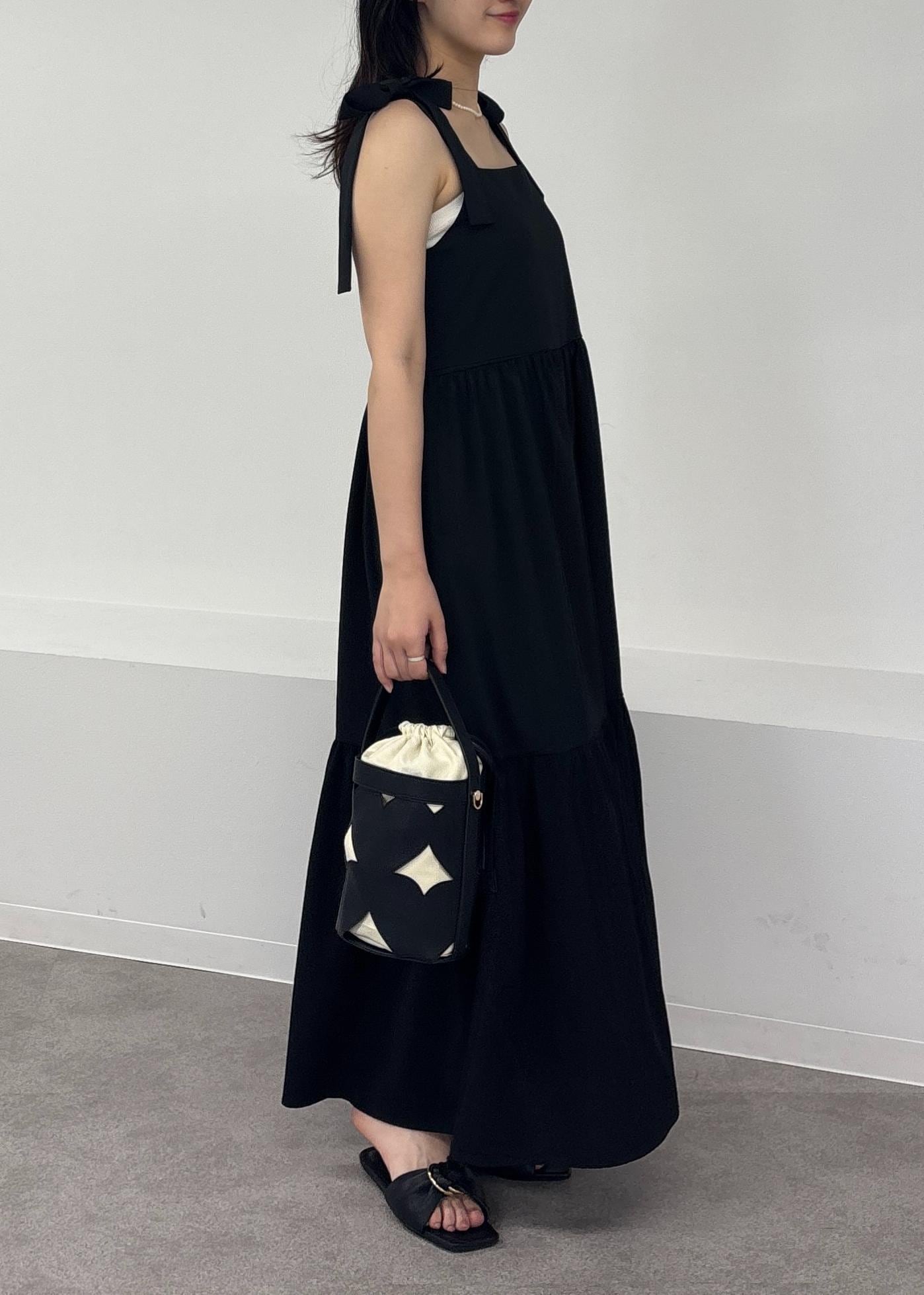 アウトレットVIS【WEB限定】ロングストラップリボンティアードワンピースブラック / F¥3,955レビュー165cmで足首が見える丈感です!