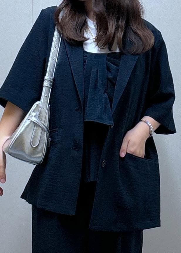 VIS【美easy】ハーフスリーブジャケット/セットアップ対応・洗えるネイビー / S¥7,909レビュー153cmでSサイズを着用してます。