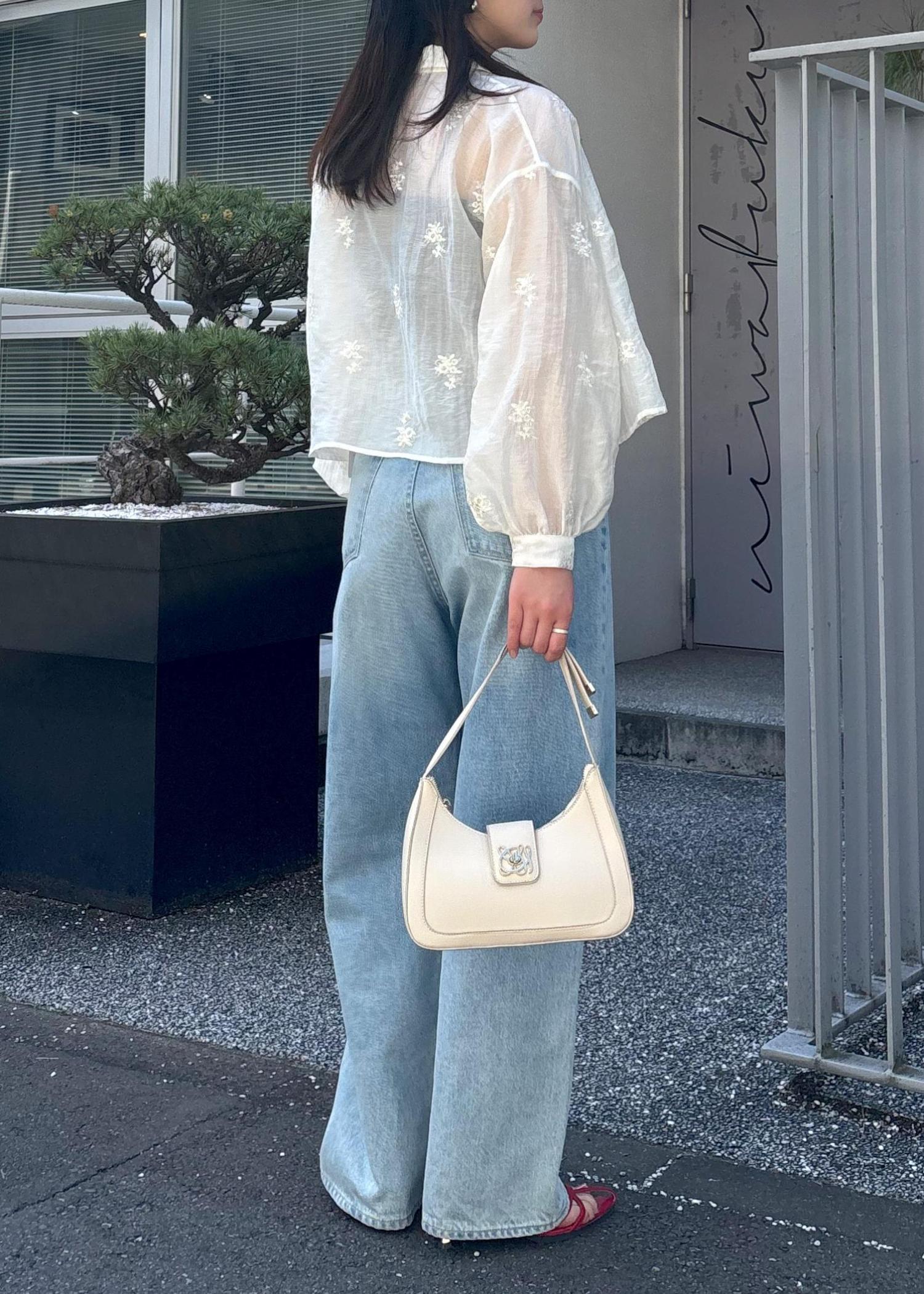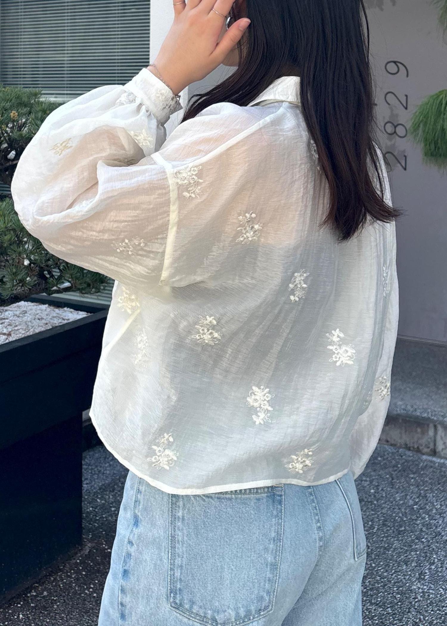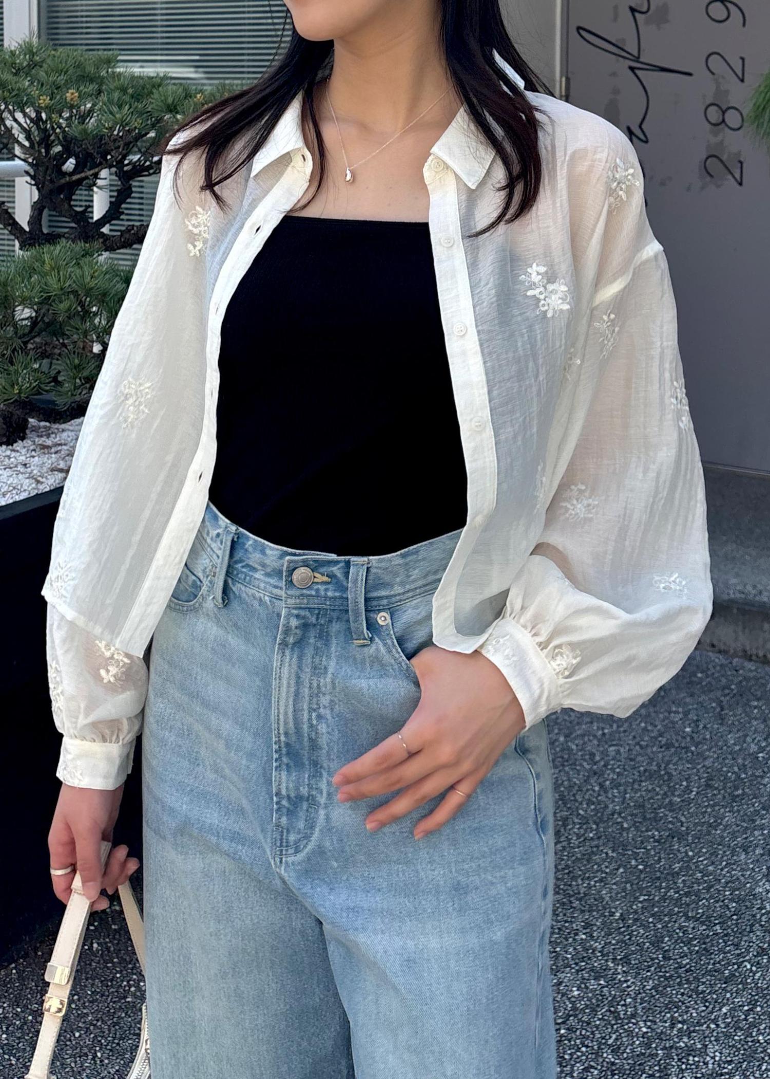VIS【WEB限定】花柄刺繍シャイニーシアーシャツホワイト系 / F¥3,845レビュー165cmで腰にかかる丈感です!