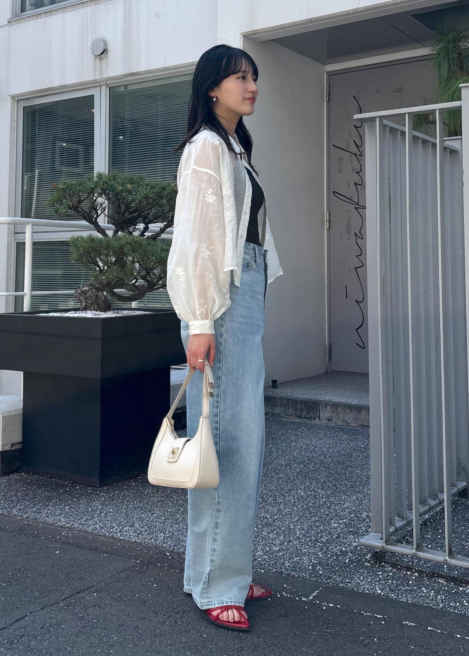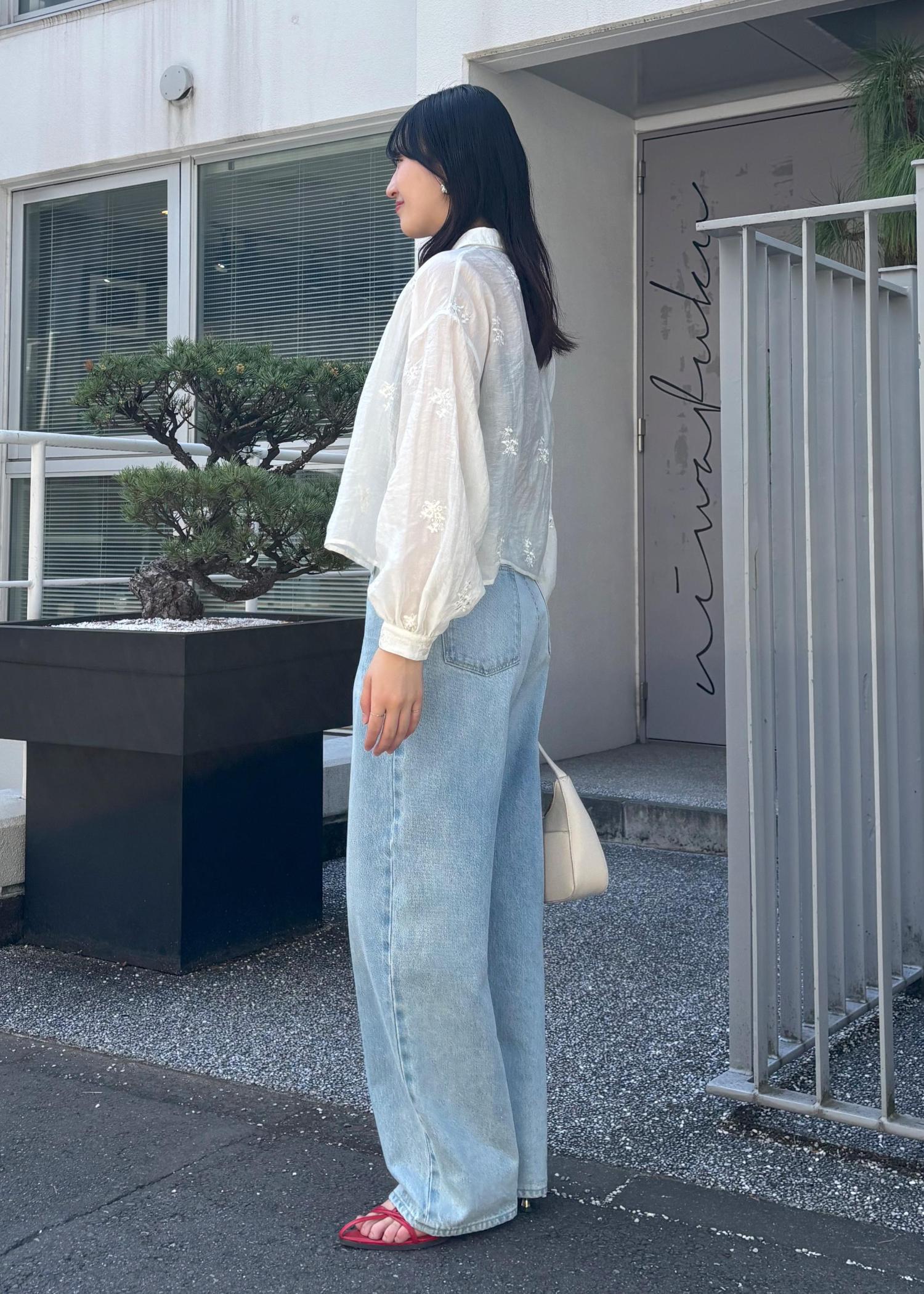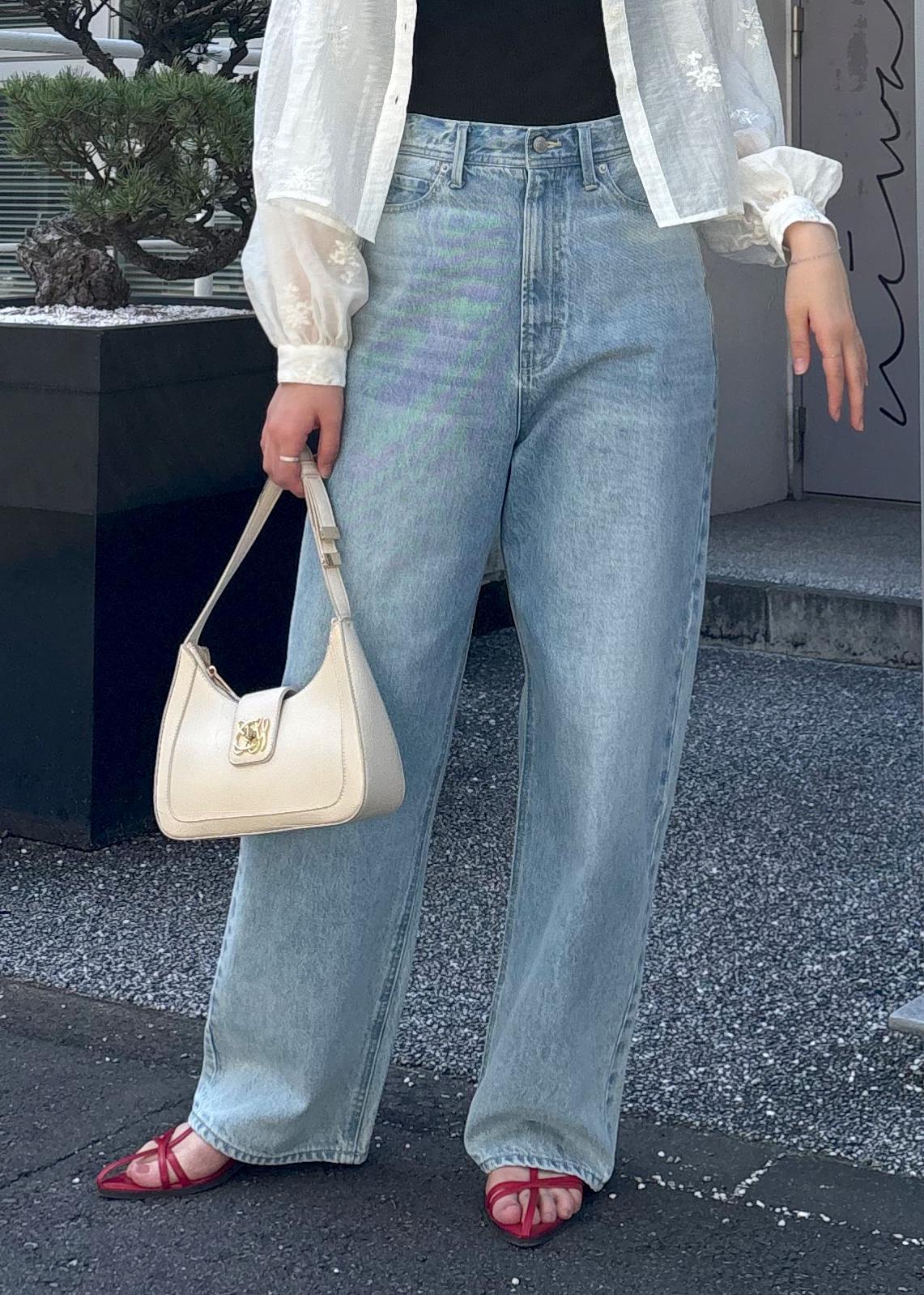 アウトレットVIS【洗える】ハイウエストルーズワイドデニムサックス / M¥4,395レビュー165cmで普段はMサイズ着用していますが、コンパクトに着たかった為こちらのコーデではSサイズ着用しています。