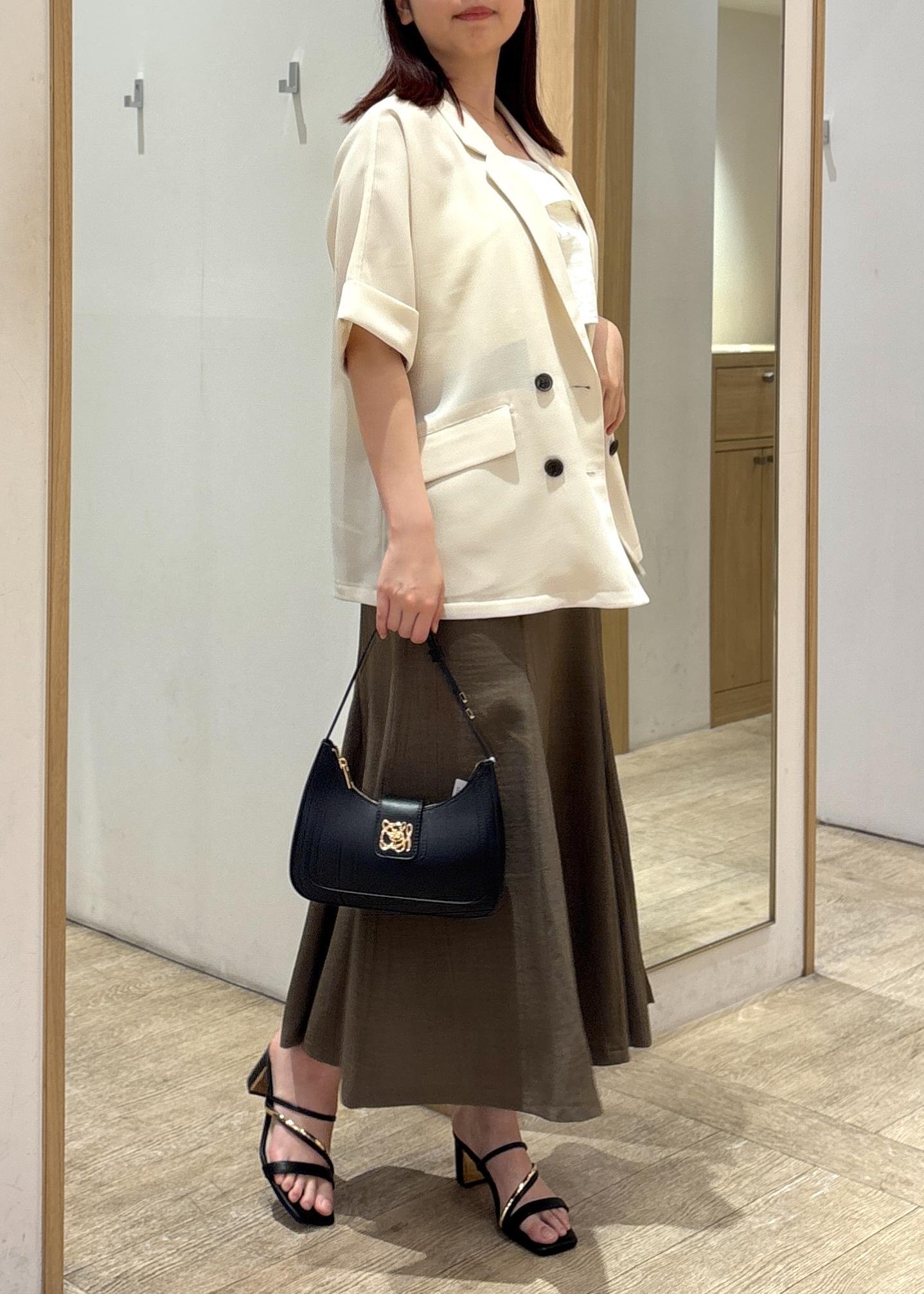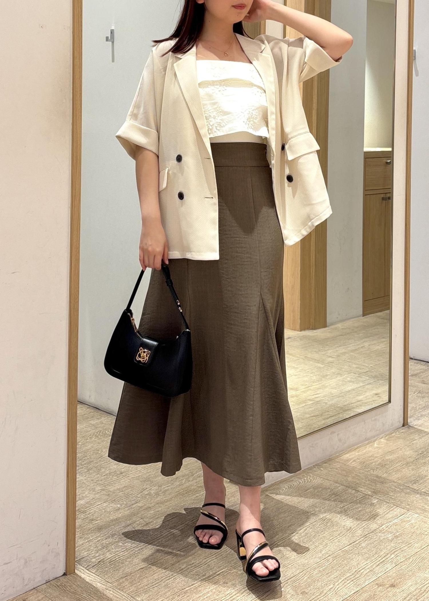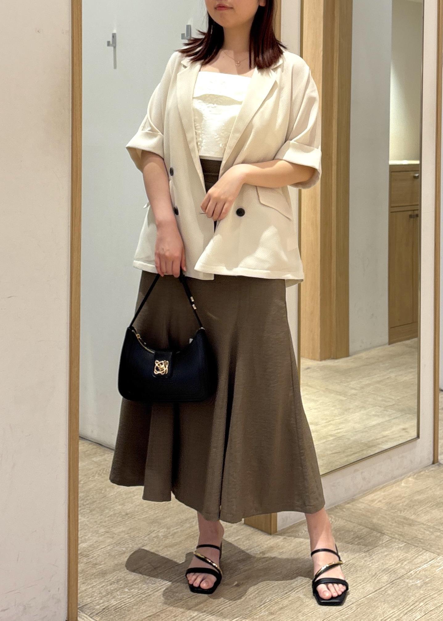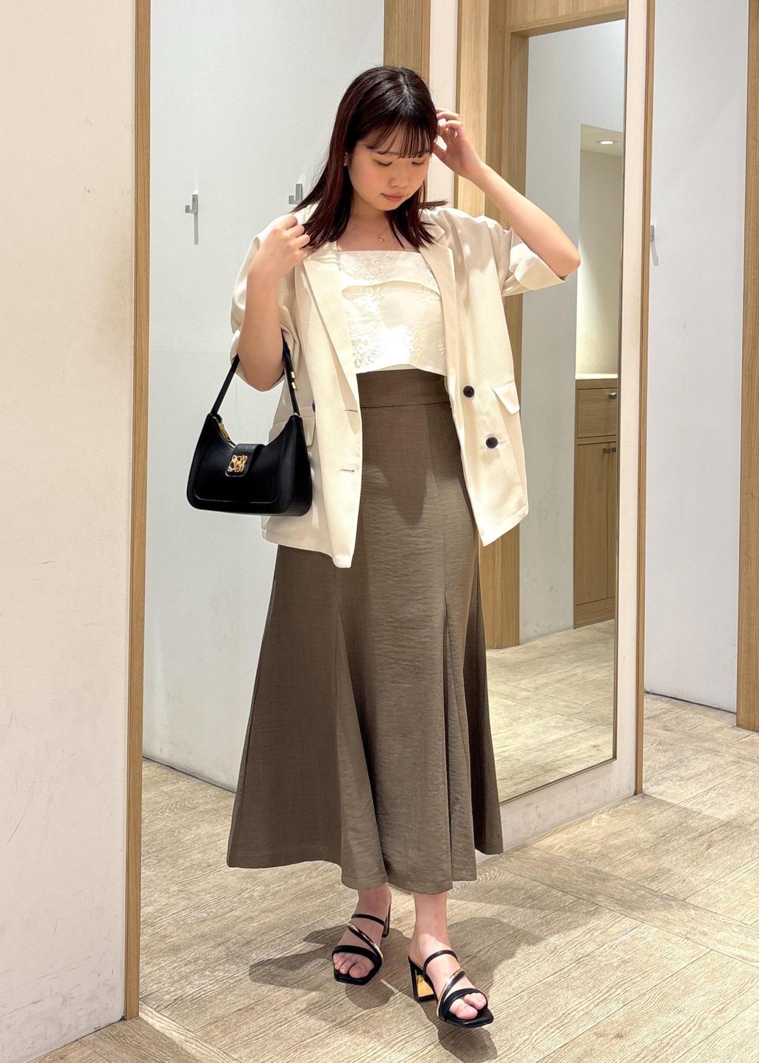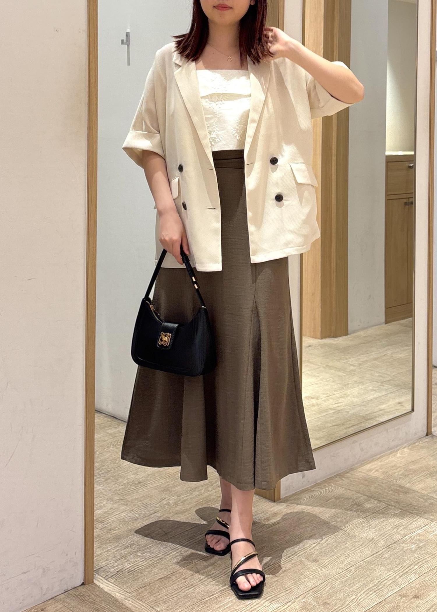 骨格ストレートの私はデコルテ部分がすっきりした方が盛れるので、カップ付きインナーの上に着用し上からジャケットを羽織りバランスをとりました! -