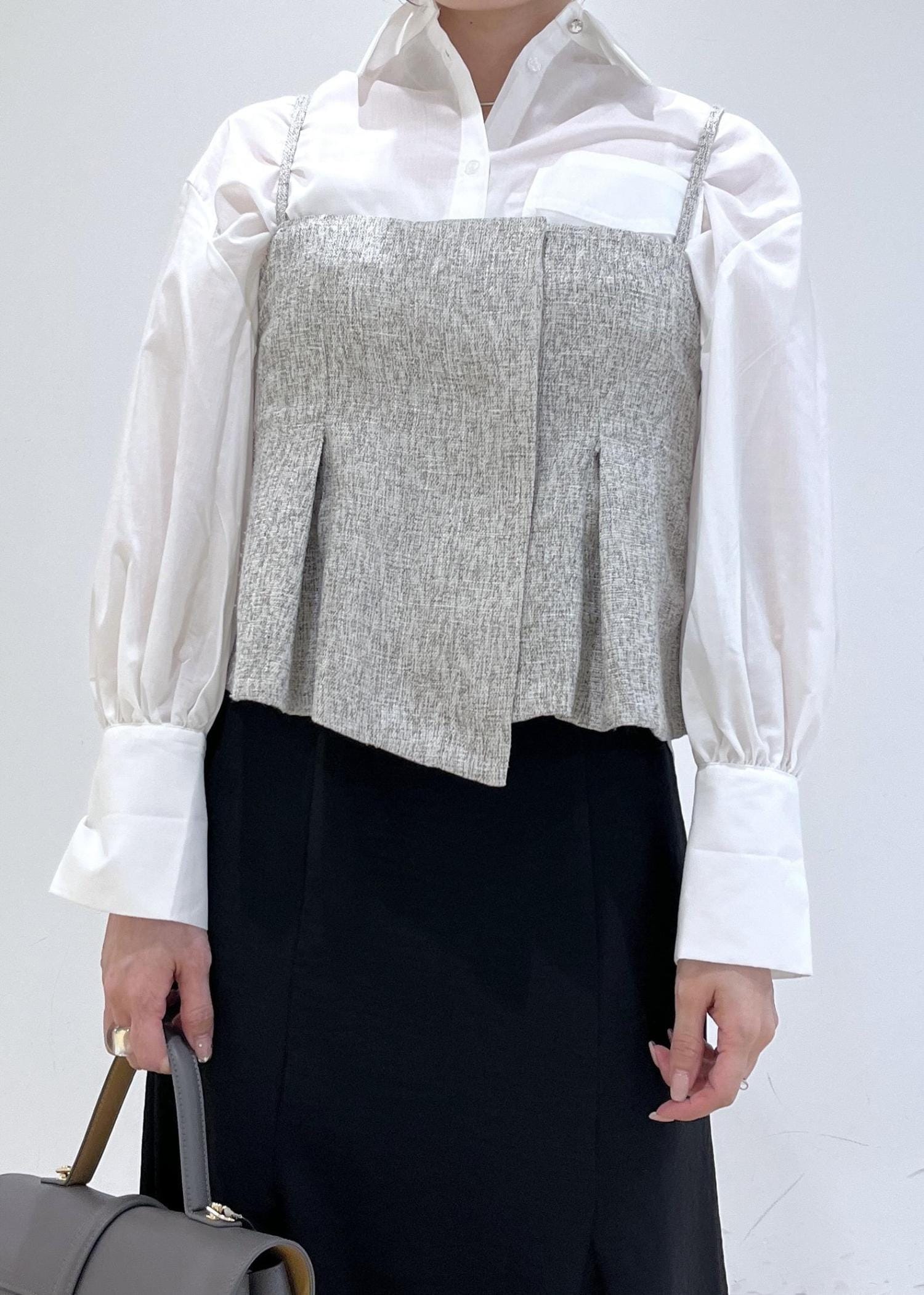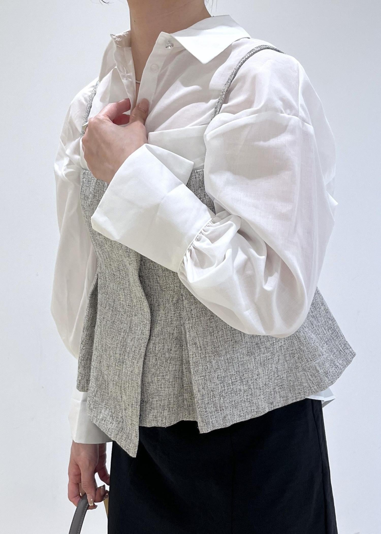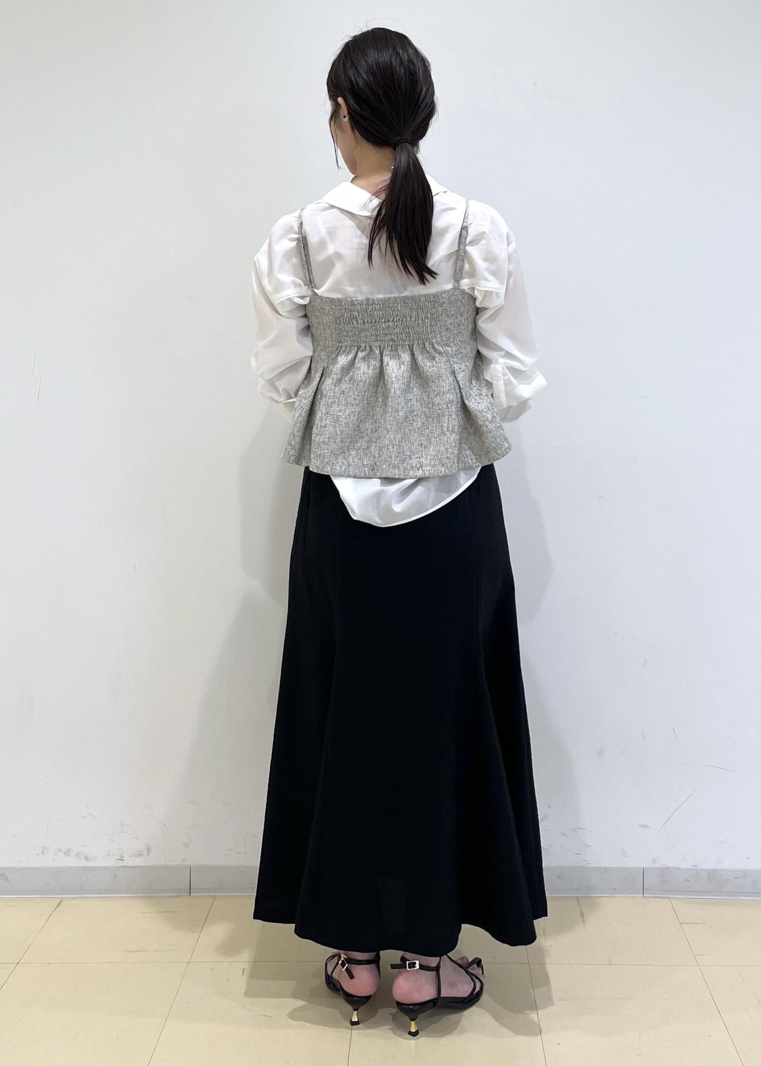 コーデが物足りない…という時にレイヤードするとオシャレ見えする万能ビスチェ。