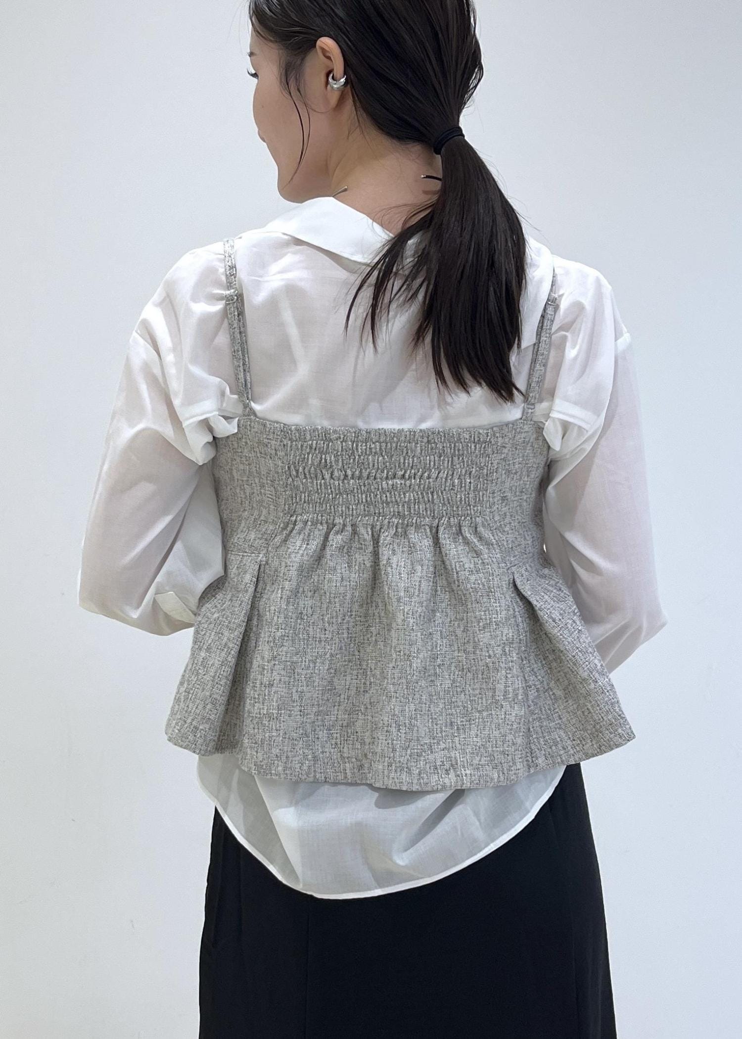 肩紐で調整できるので、長さが変えられ、羽織のインナーやTシャツの上からなど、色々な着方が楽しめます◎