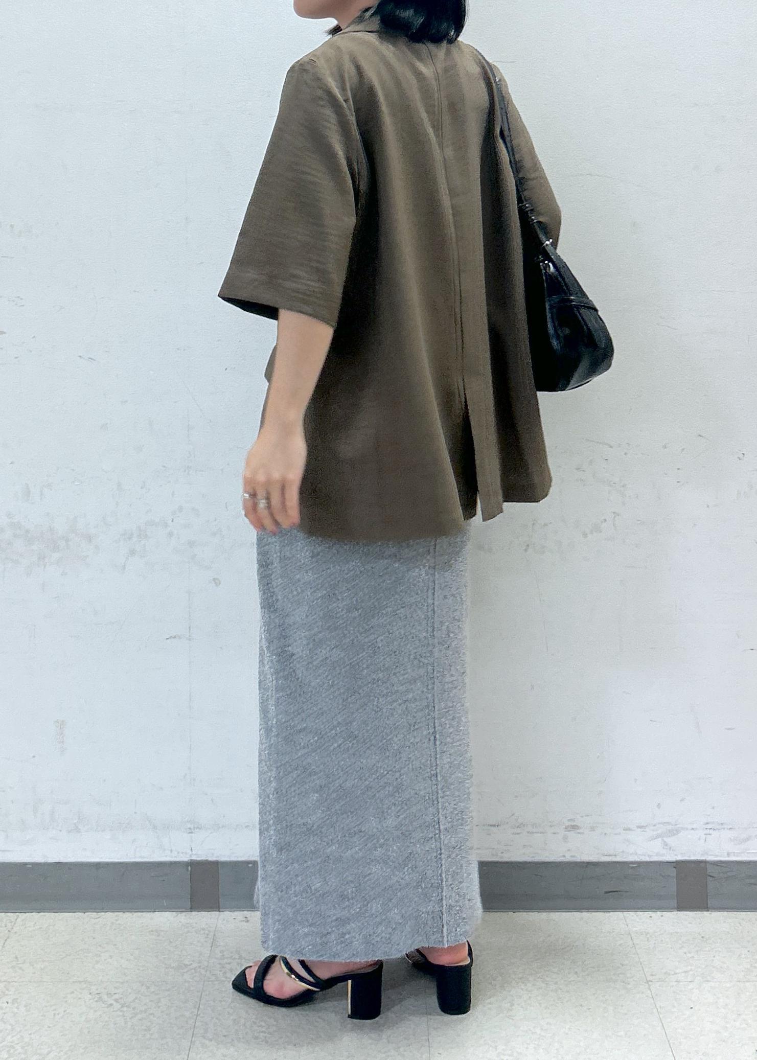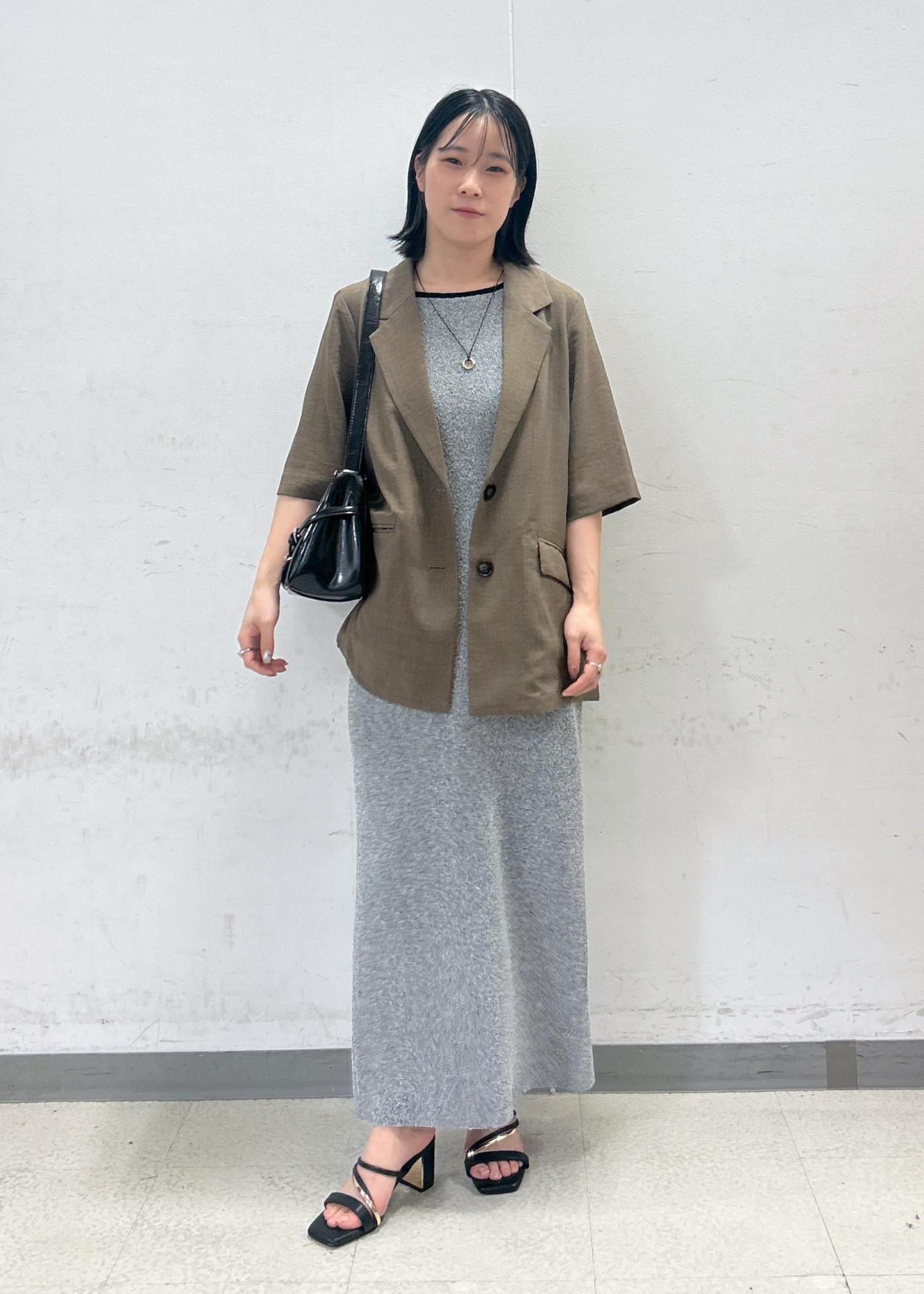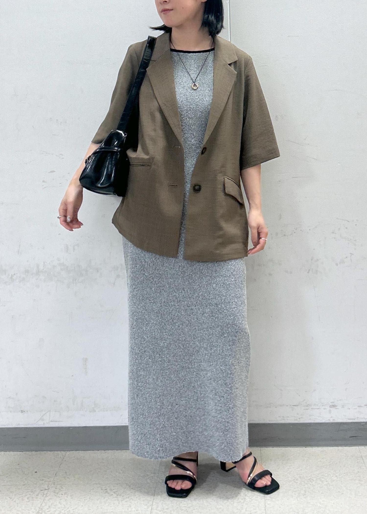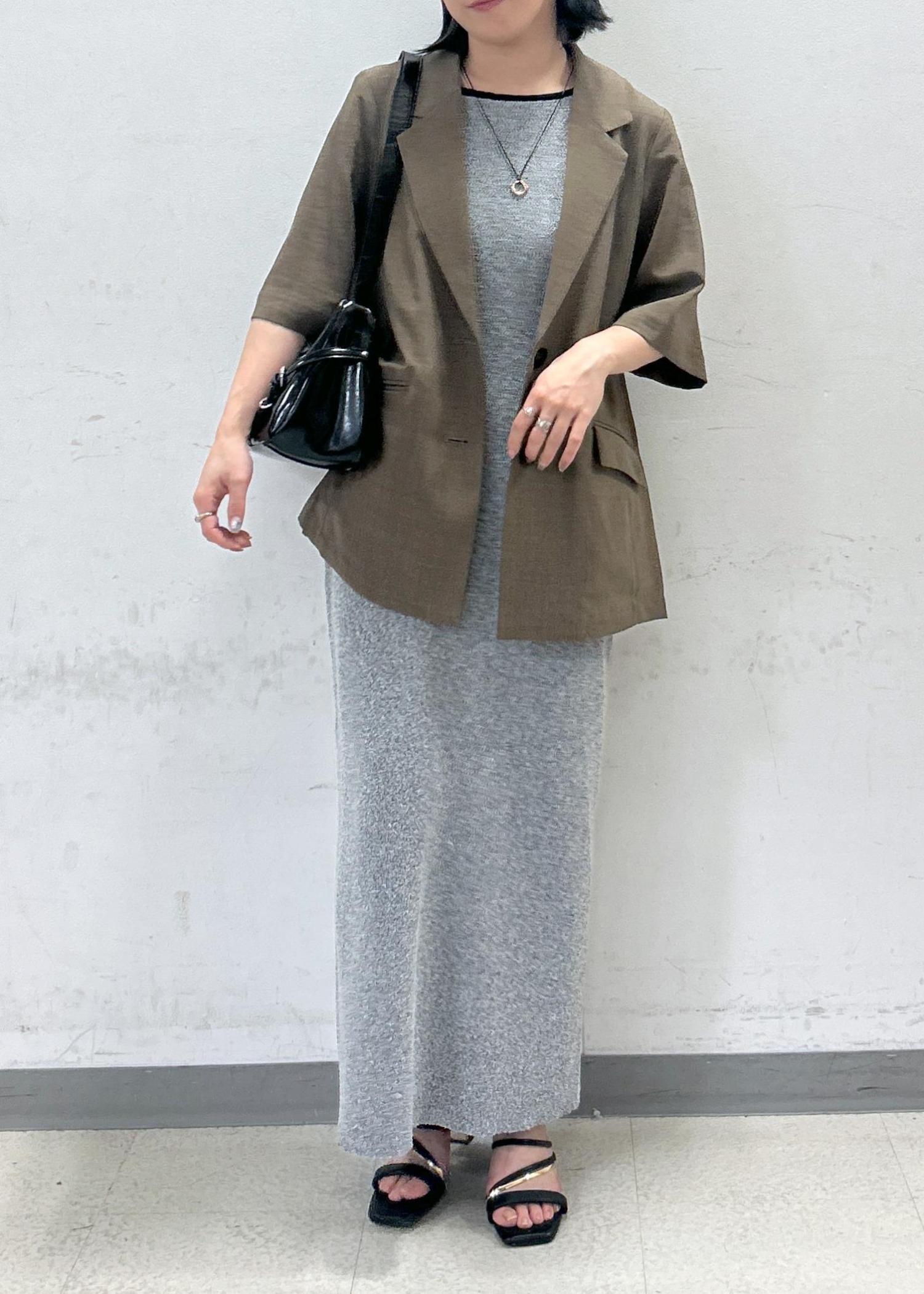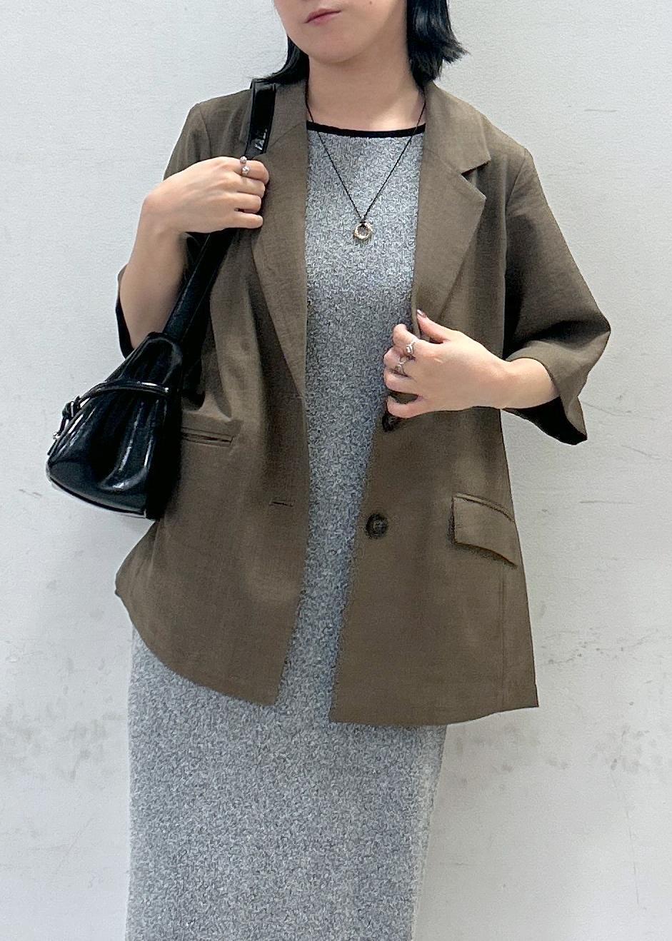 VIS【美easy】ハーフスリーブジャケット/セットアップ対応・洗えるカーキ系 / S¥7,909レビューSサイズ着用です。Sサイズでもゆったりしていて、全体的にオーバーサイズです。サラッとした麻調の素材で、ポリエステルなのでご自宅で洗濯できます。
