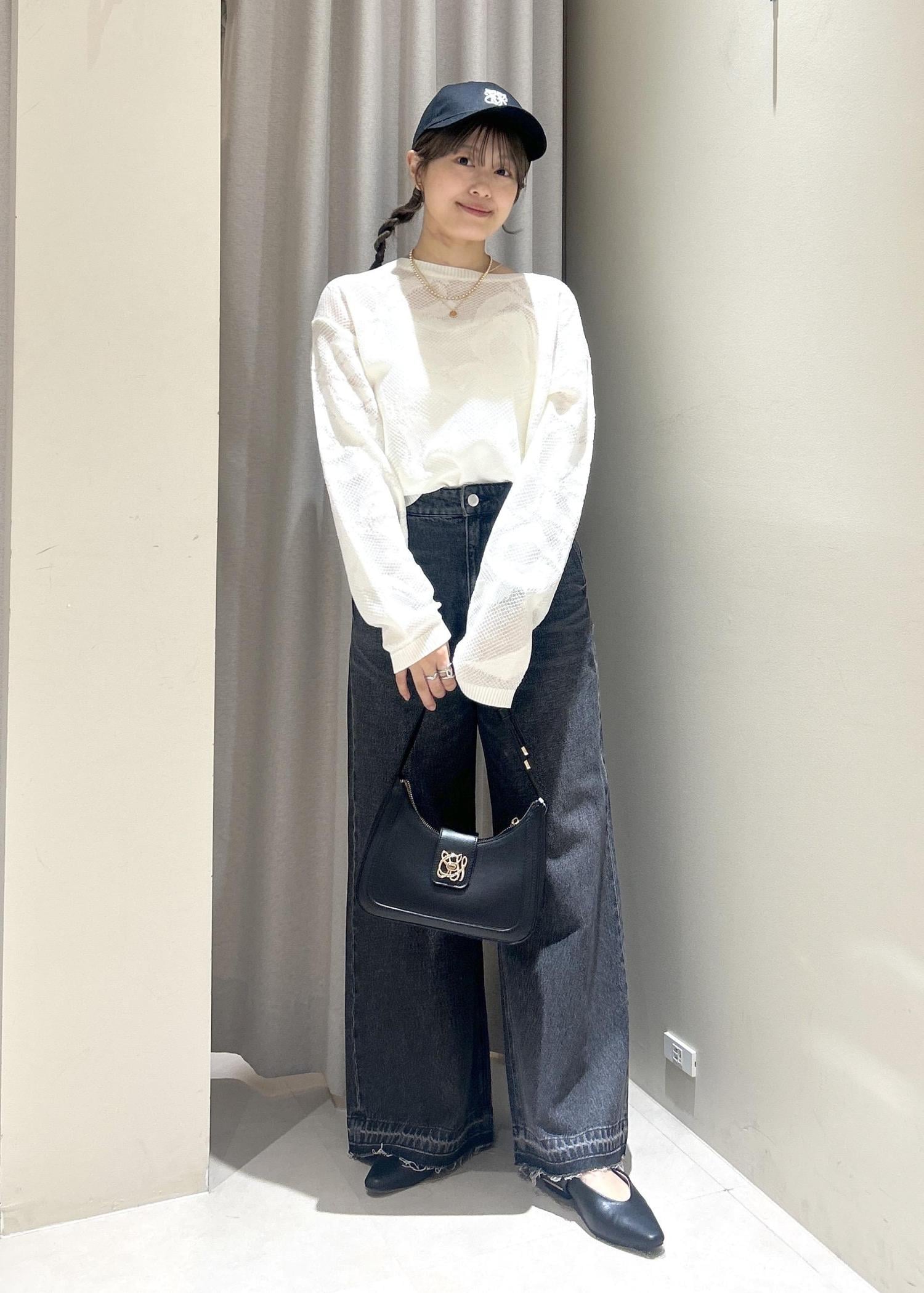 トップスを黒にすると重たくなりすぎてしまうので、ベージュや白の柔らかい色を使いました。