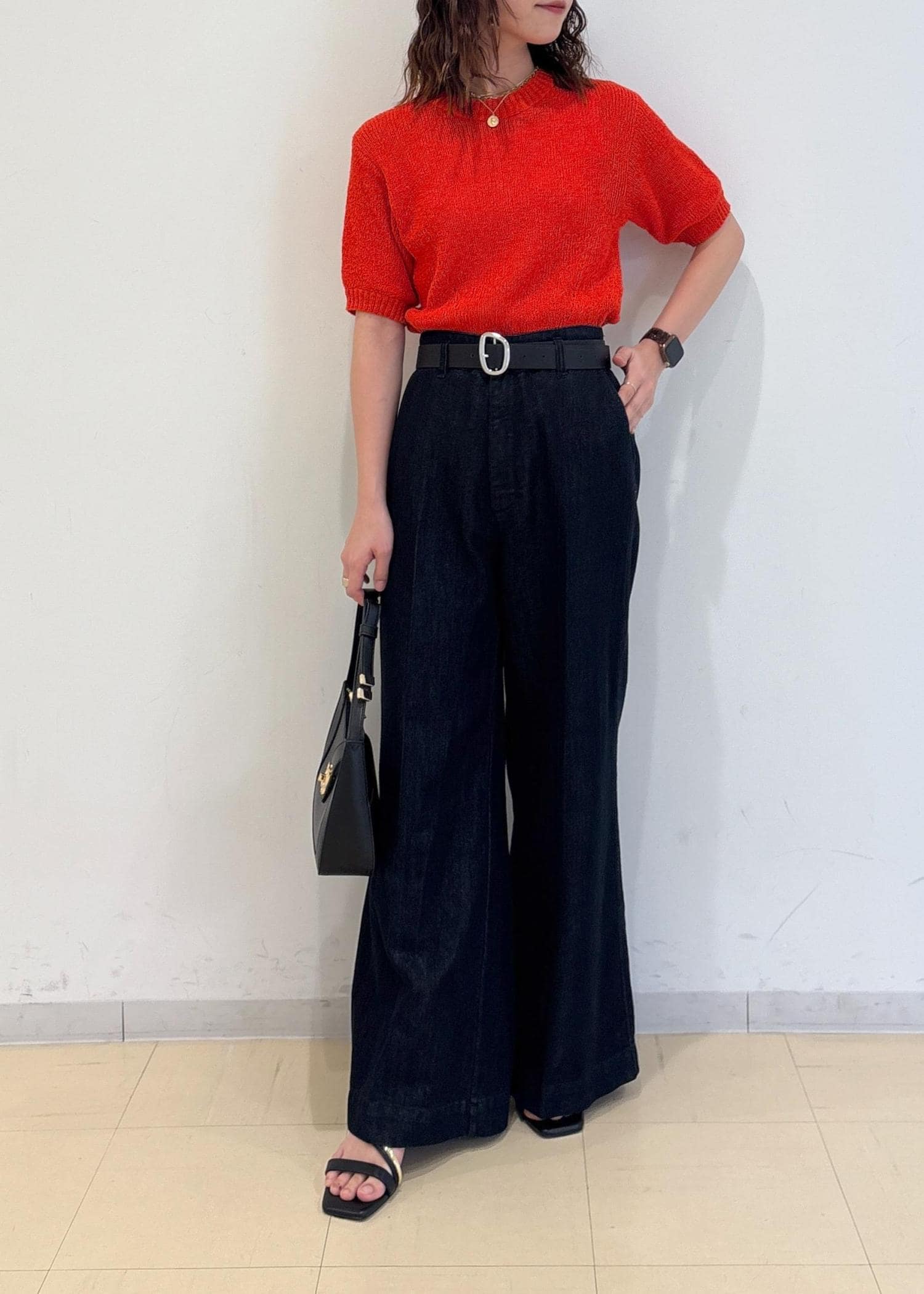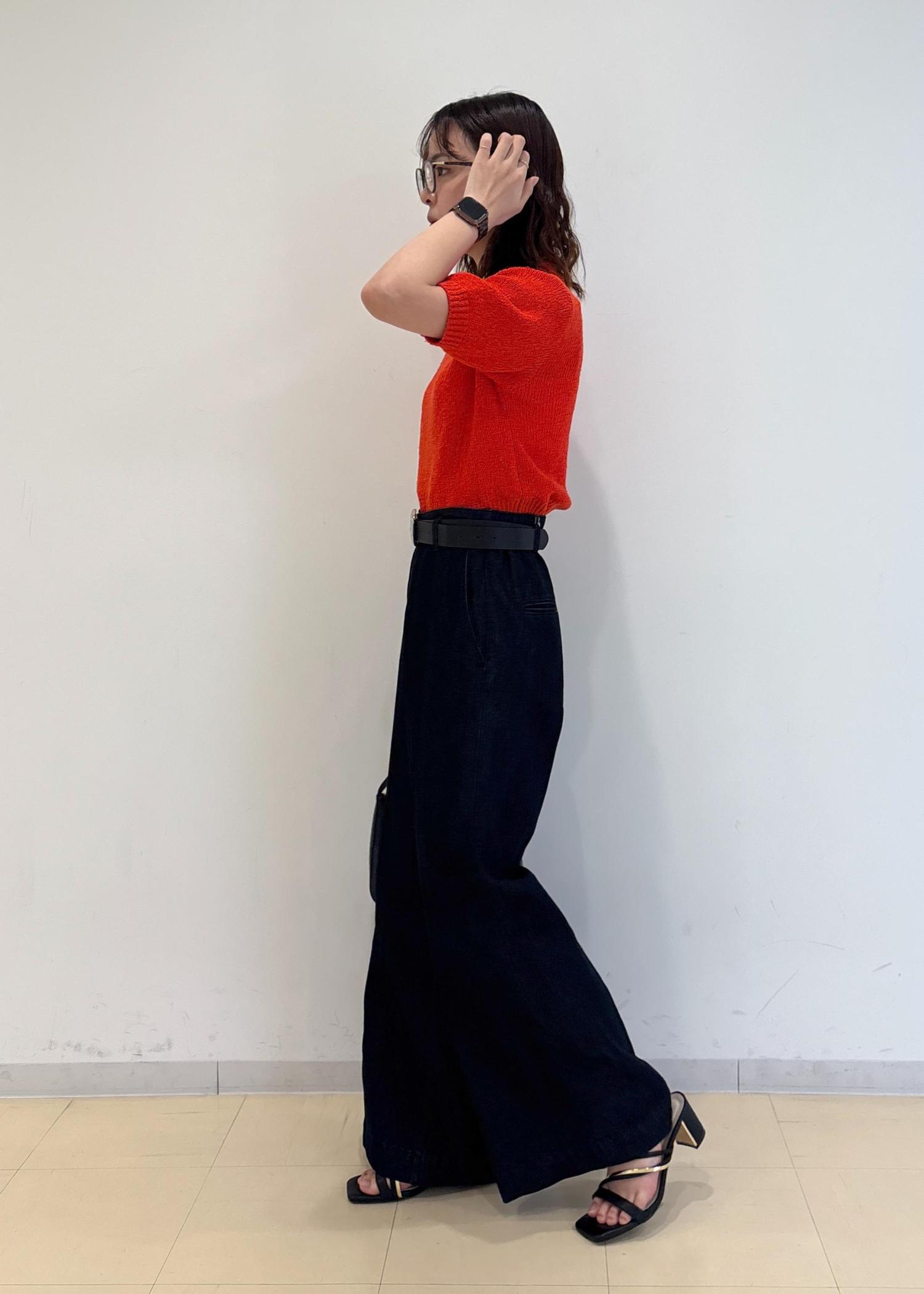 アウトレットVIS【洗える】アイレットブークレコンパクトニットレッド / F¥2,633レビュー160cm着用で骨盤にかかる程の丈感でハイウエストのボトムと合わせるとINが出来ます◎