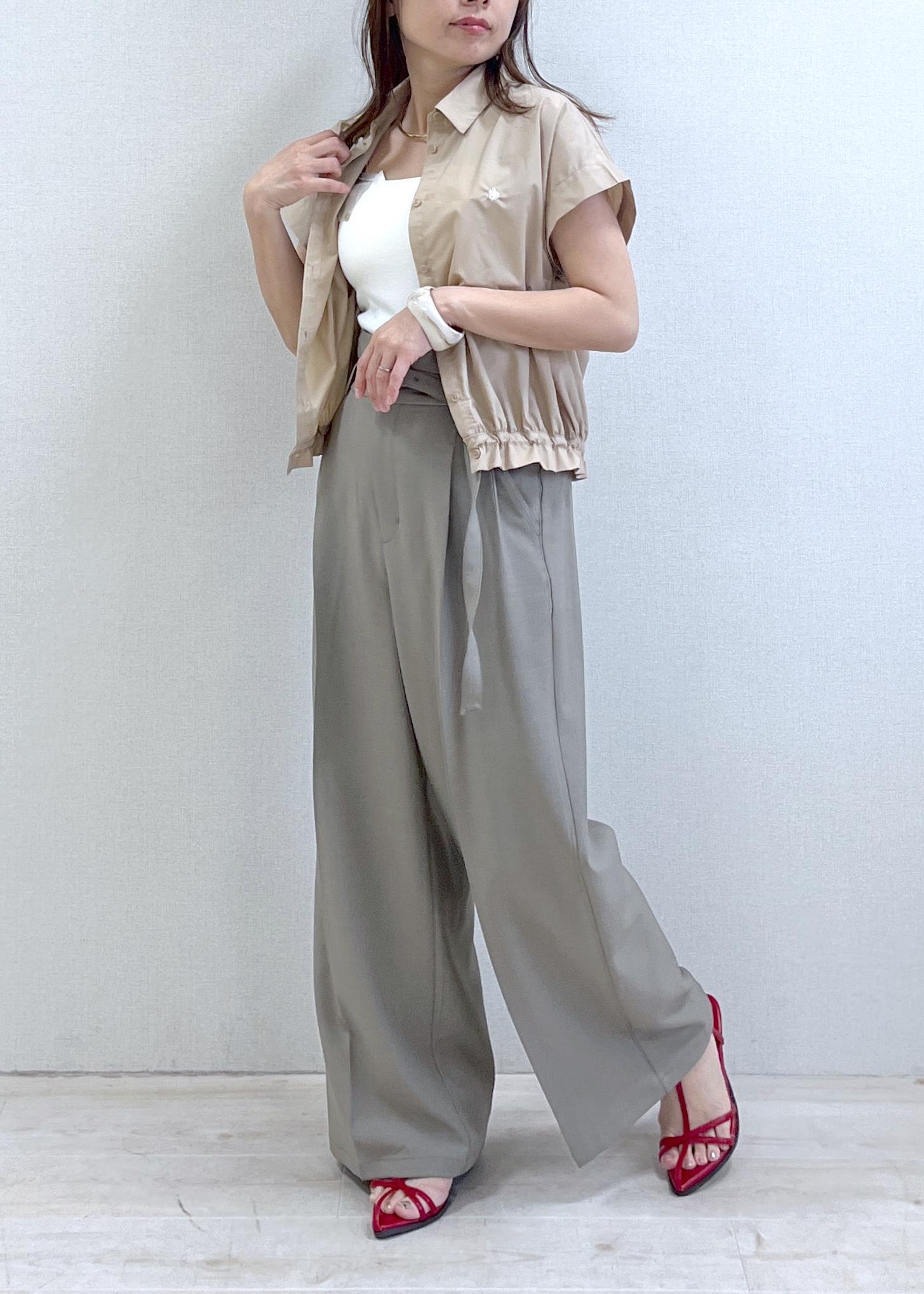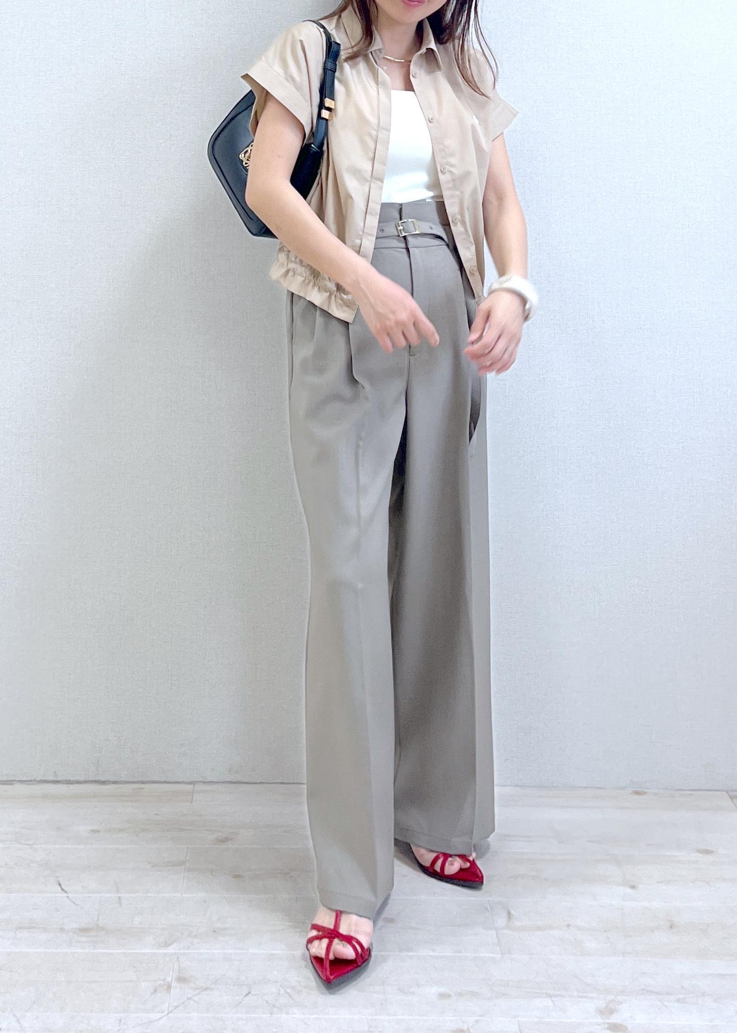 VIS【新色追加】【防シワ/接触冷感】ベルトディテールタックワイドスラックスパンツベージュ系 / S¥6,589レビュー152cmでSサイズ着用し高めの位置で付属のベルトでしめてペタンコ靴でギリギリ床につかないくらいの長め丈。オチ感のある素材でシワにもなりにくく、とっても履きやすかったです。太すぎないワイドシルエットでどんなスタイリングにも使えそうです!