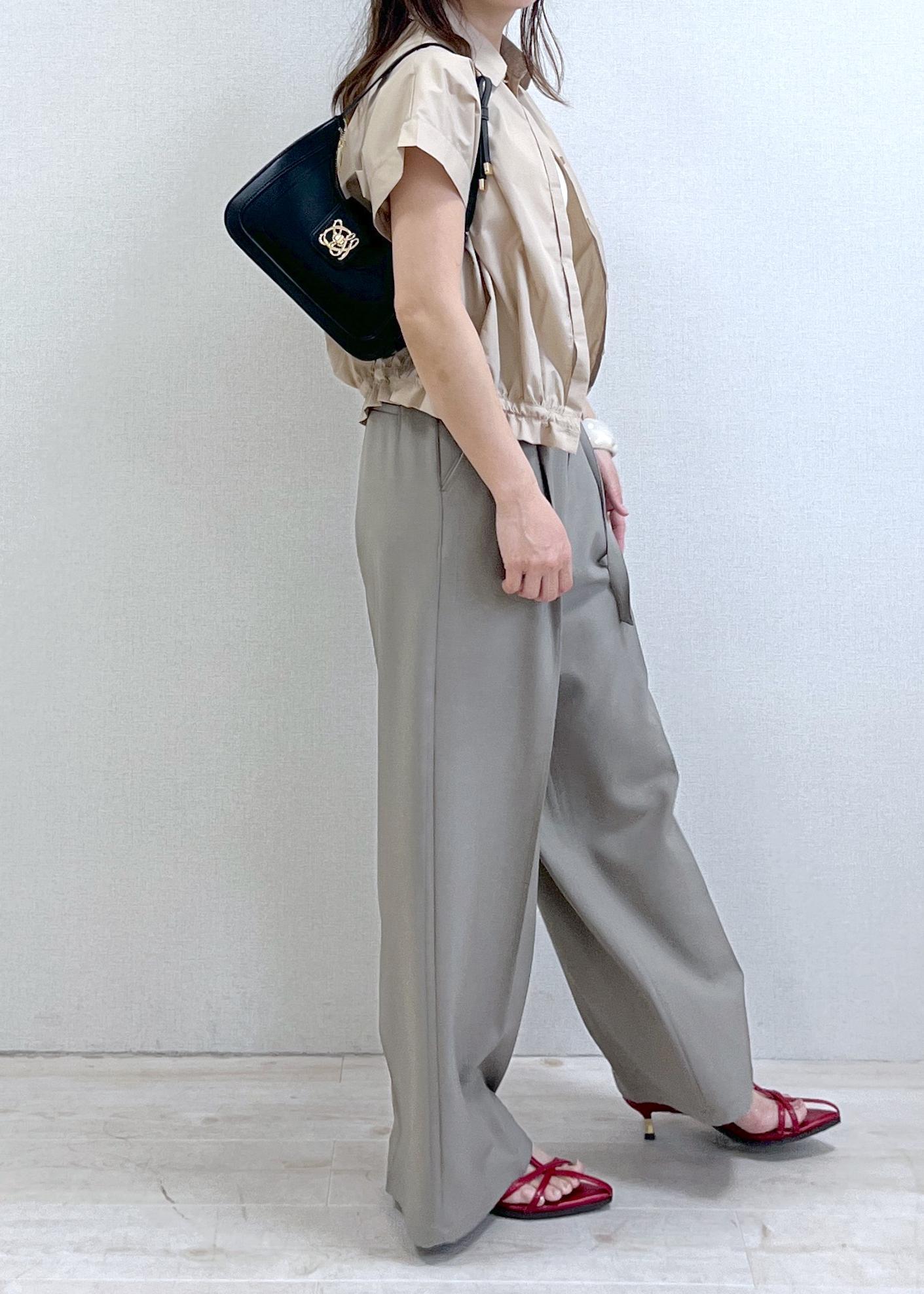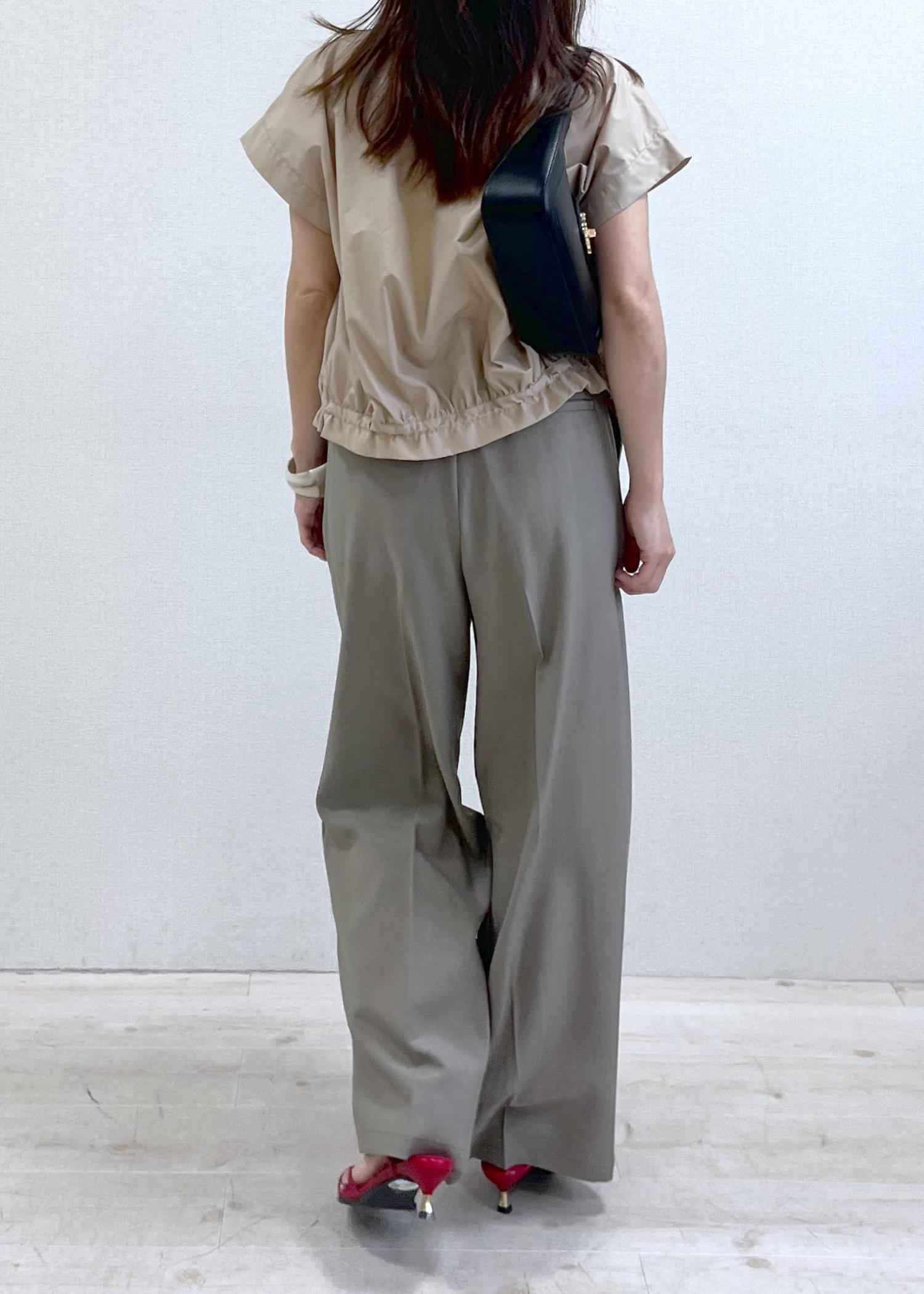 シンプルながら裾の絞りで雰囲気を変えられ、落ち着いた