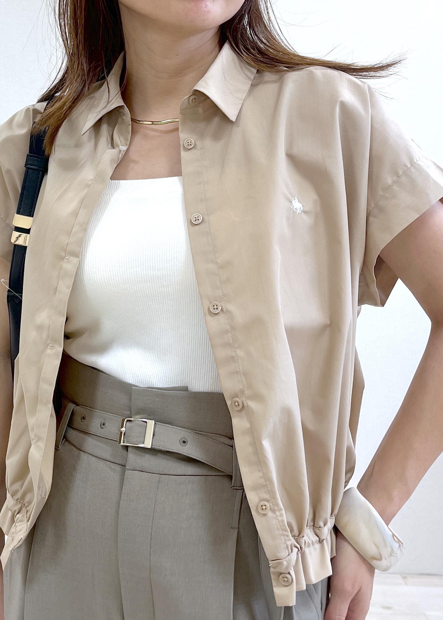 VIS【POLO BCS】VIS別注フレンチスリーブドローストリングシャツベージュ系 / F¥6,050レビュー152cmでFサイズ着用し、着丈はウエストにかかるくらいの丈。腕にかかるフレンチスリーブは細見え効果◎コンパクトトップスでバランスがとりやすくレトロなデザインが新鮮でした!ややハリ感のある素材でどんなスタイルにもあわせやすいです。