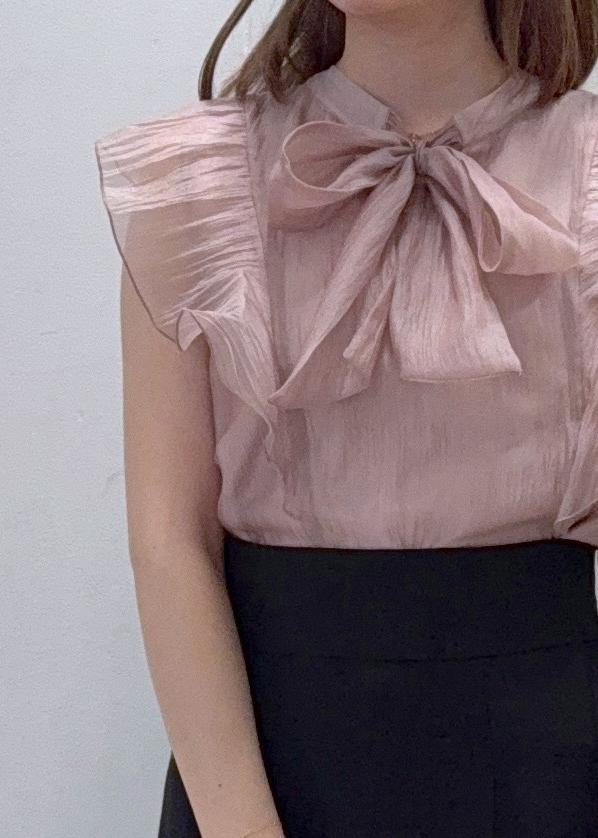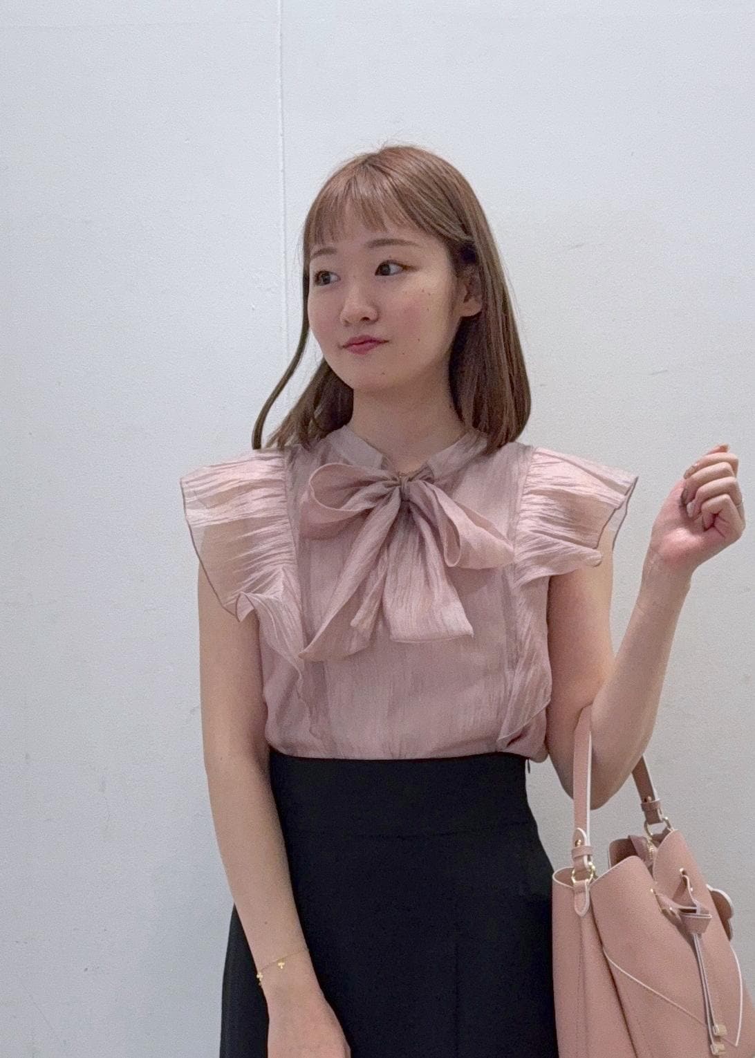 VIS【店頭人気】主役級!華やぎシアーシャイニーボウタイフリルブラウス【前後2WAY】【洗える】ピンク / F¥5,489レビューフリルが大きめなので二の腕をふんわりカバーしてくれます◎