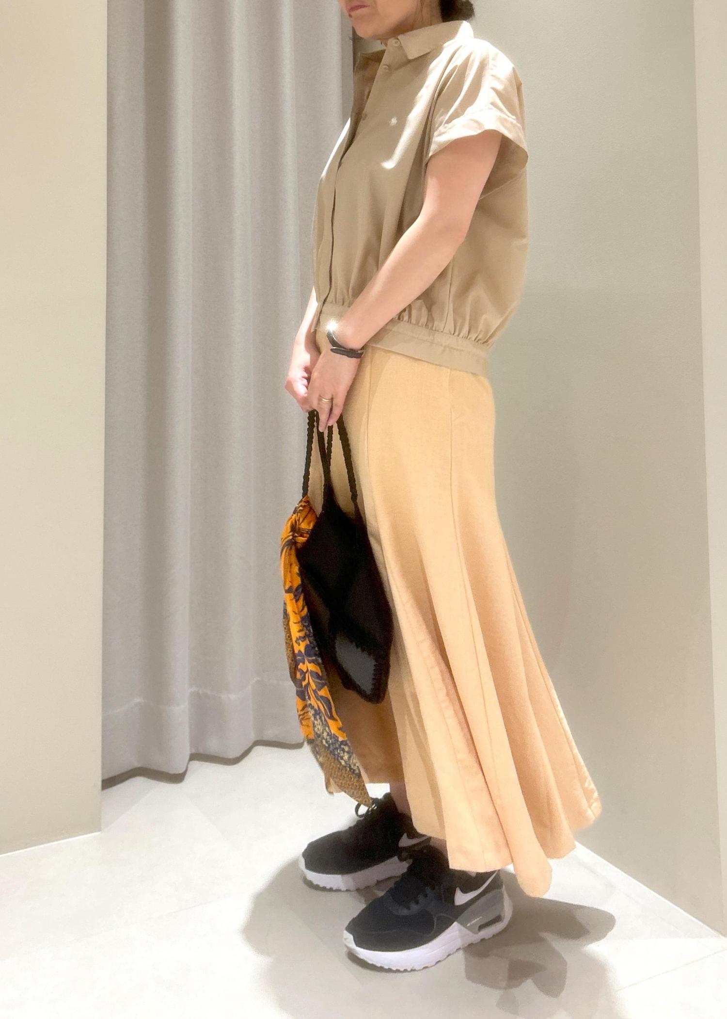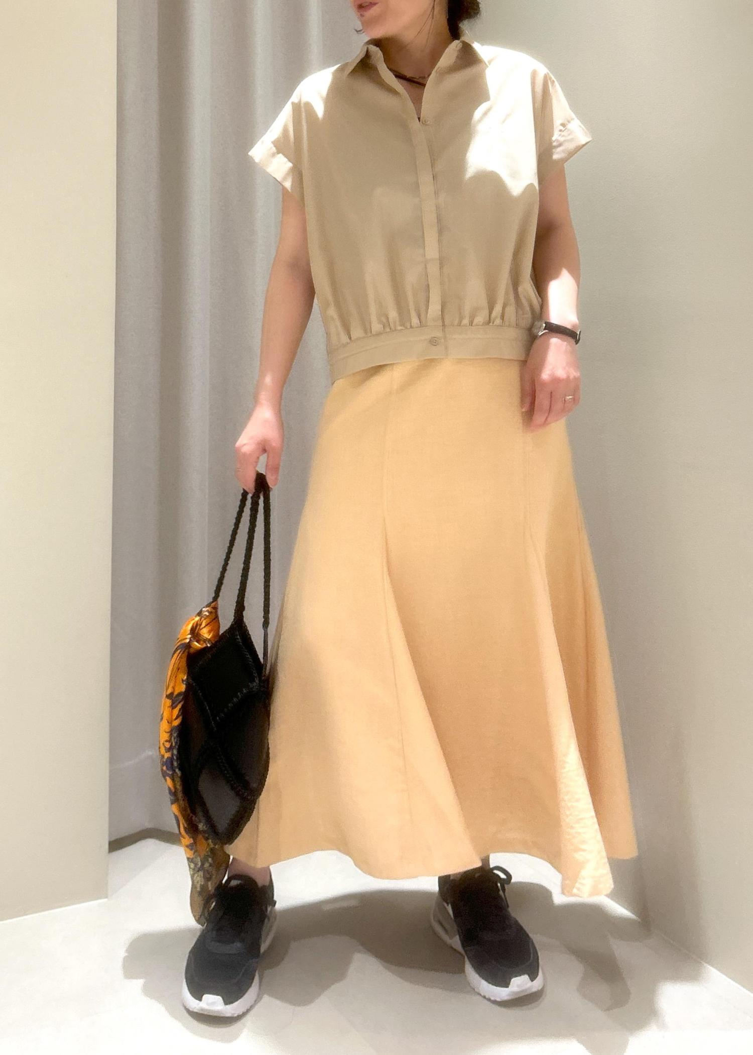 程よいマーメイドシルエットで立体的なきれいなフレア感で、腰回りもすっきりでスタイルアップ。ご自宅でお洗濯もできるお手入れも楽◎