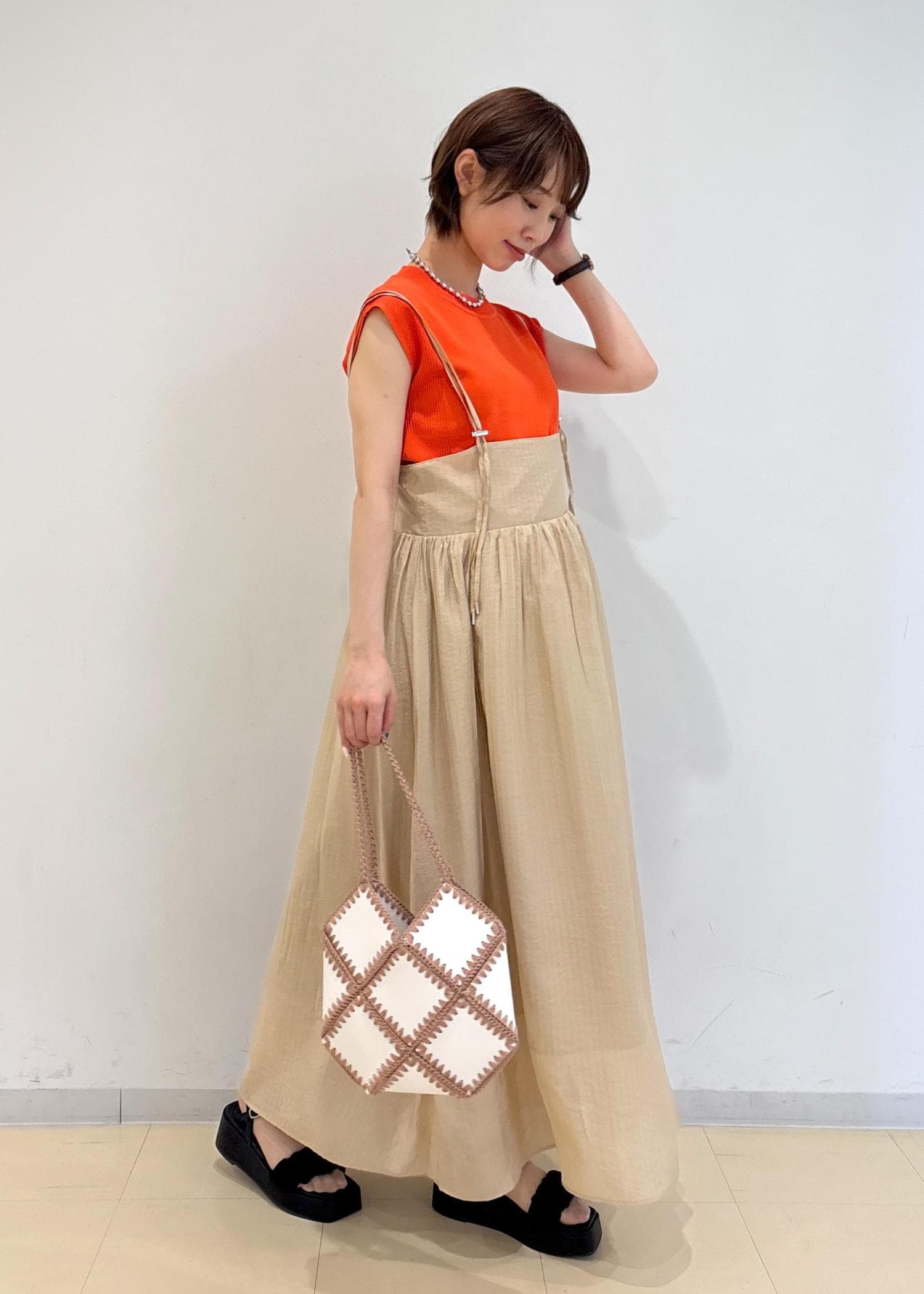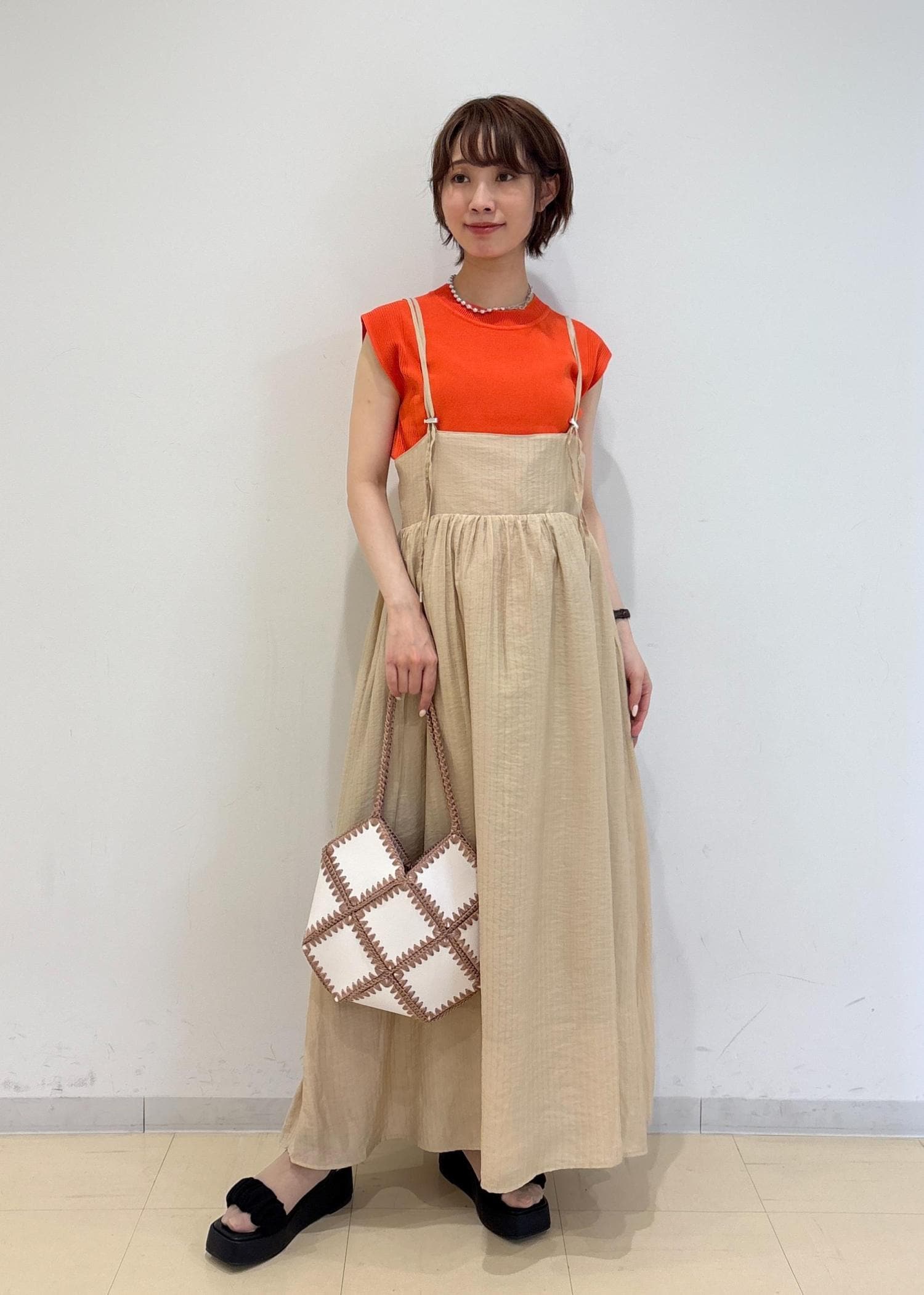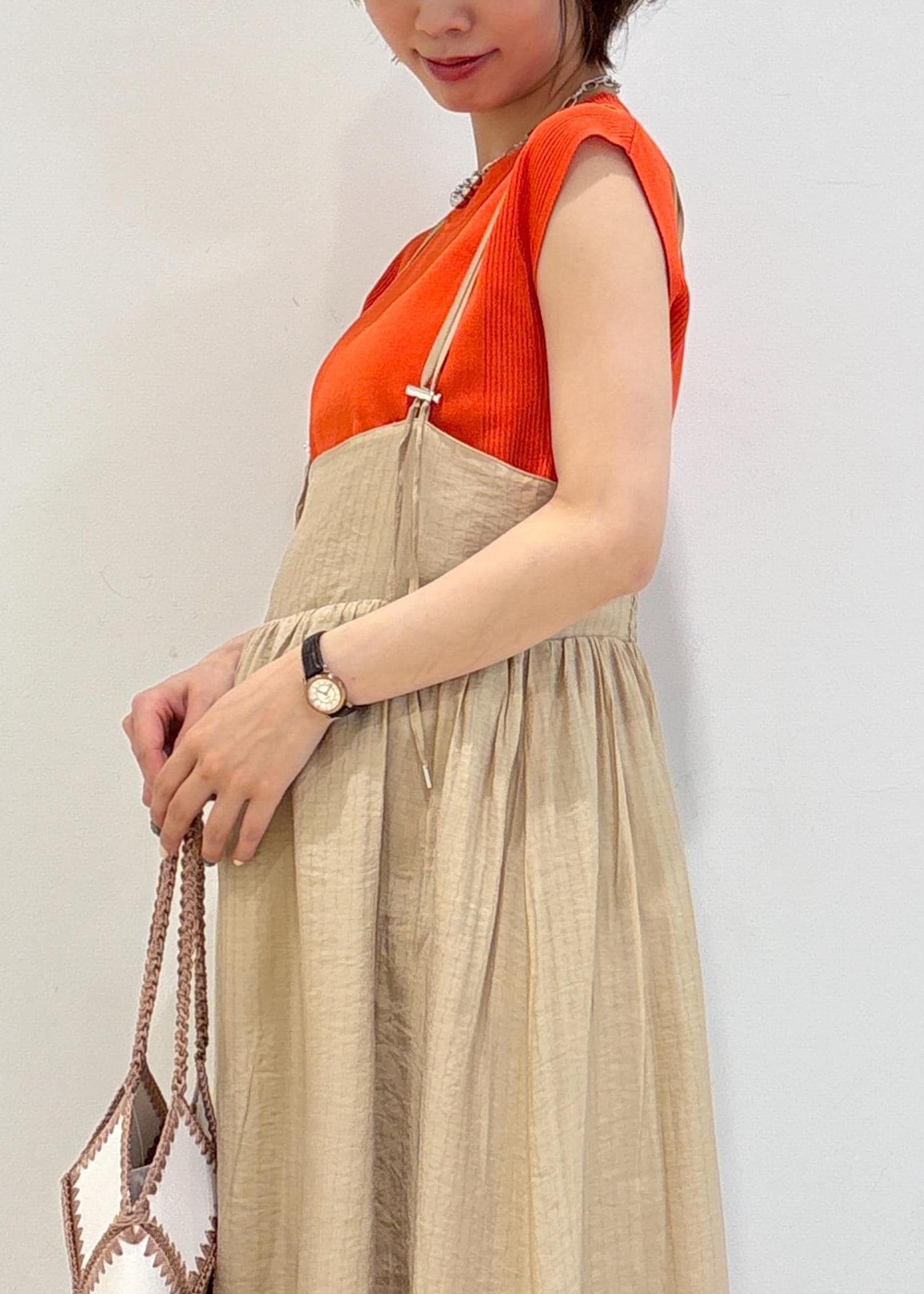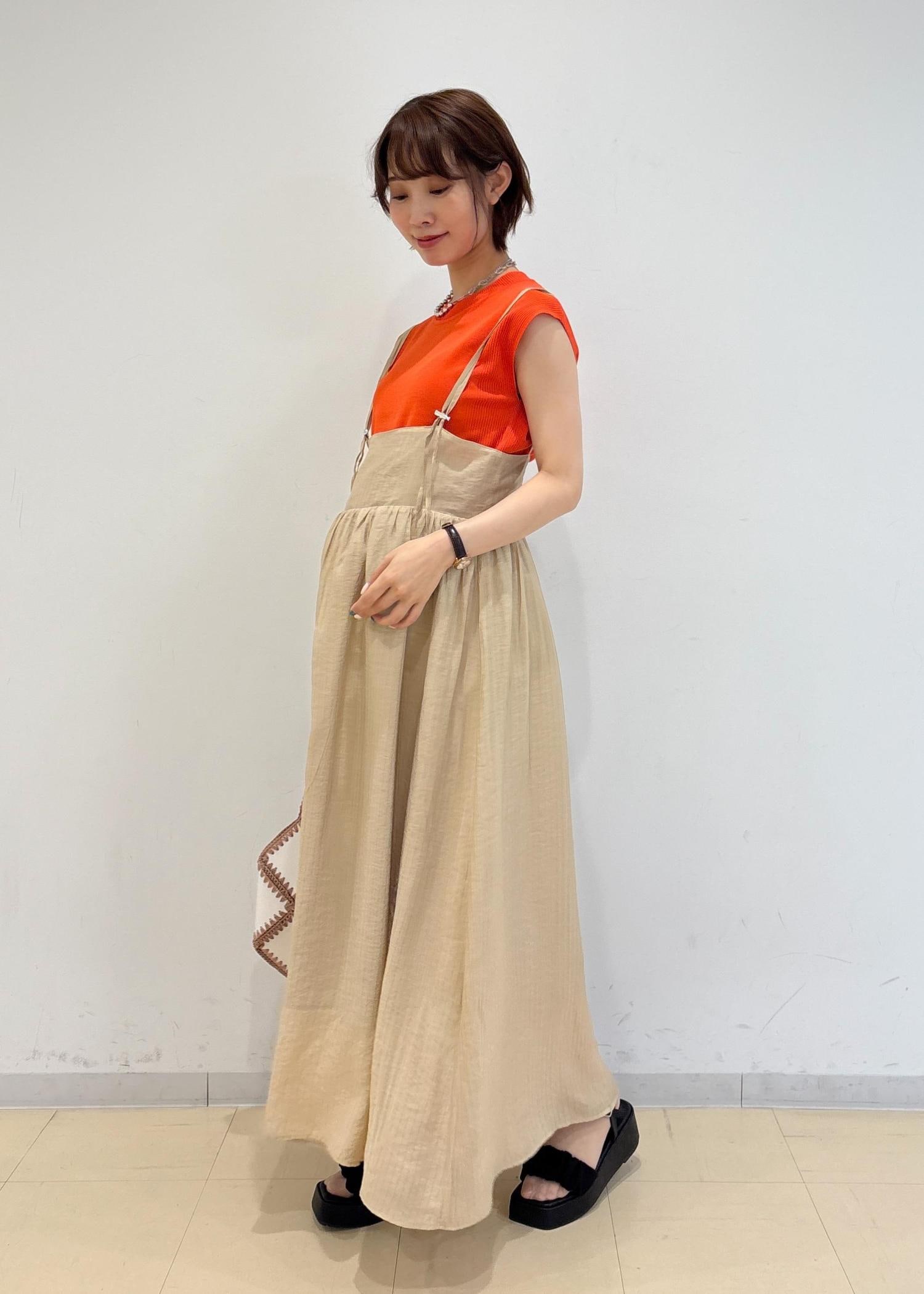 アウトレットVISAラインキャミワンピースベージュ / F¥3,955レビューふわっと軽い素材感でとても涼しいキャミワンピースです。胸下の高めの位置の切替なのでウエスト位置が高く見えてスタイル良く見えます。