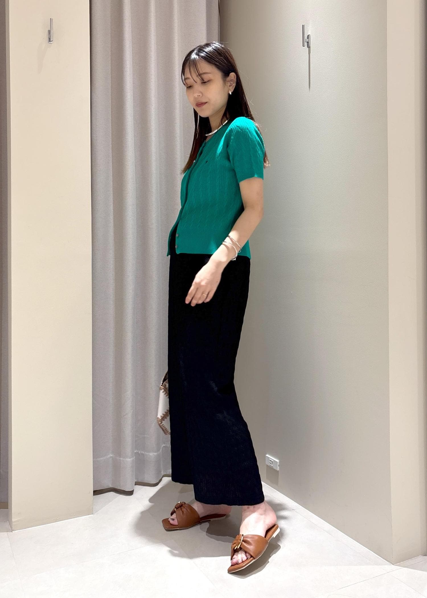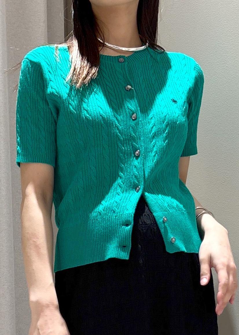 VIS【POLO BCS】VIS別注ハーフスリーブミニケーブルカーディガングリーン / F¥6,600レビュー161cm/フリーサイズ着用で着丈は腰下あたりで少しコンパクトなサイズ感です。