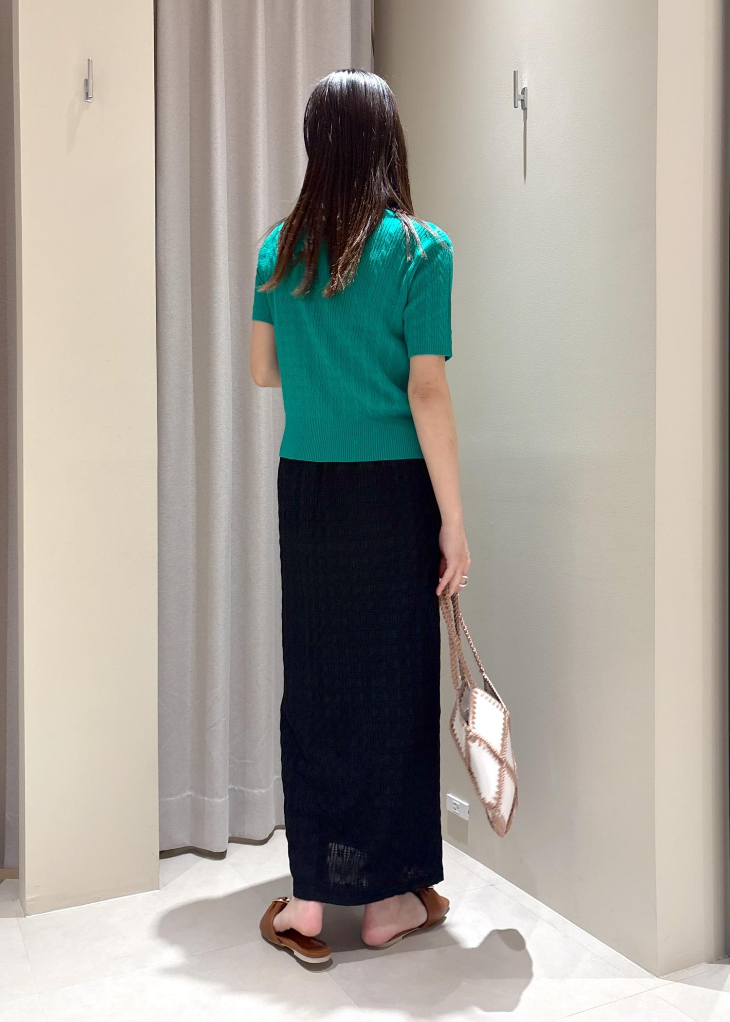 伸縮性のある素材で、ウエストはゴムなので履き心地が楽なスカートです。 -