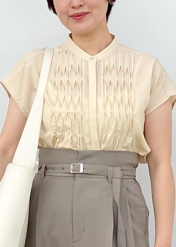 夏に嬉しい接触冷感機能付き!さらにお洗濯可能なブラウスです!フロントのピンタックデザインが華やかな印象に!フレンチスリーブなので気になる二の腕もカバーしてくれます!ボトムを選ばずオンオフ兼用で着ていただけます!