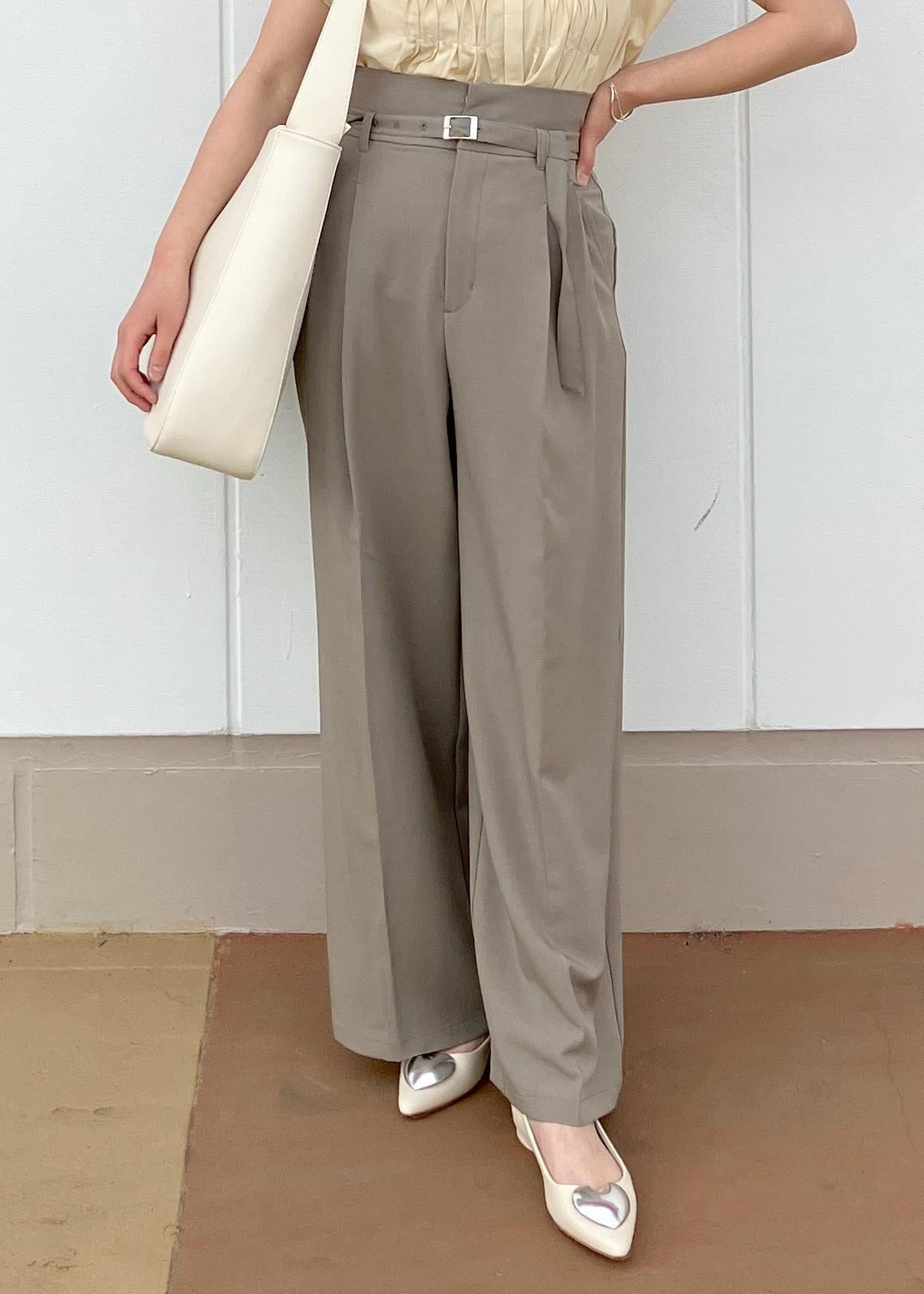 【新色追加】【防シワ/接触冷感】ベルトディテールタックワイドスラックスパンツ
