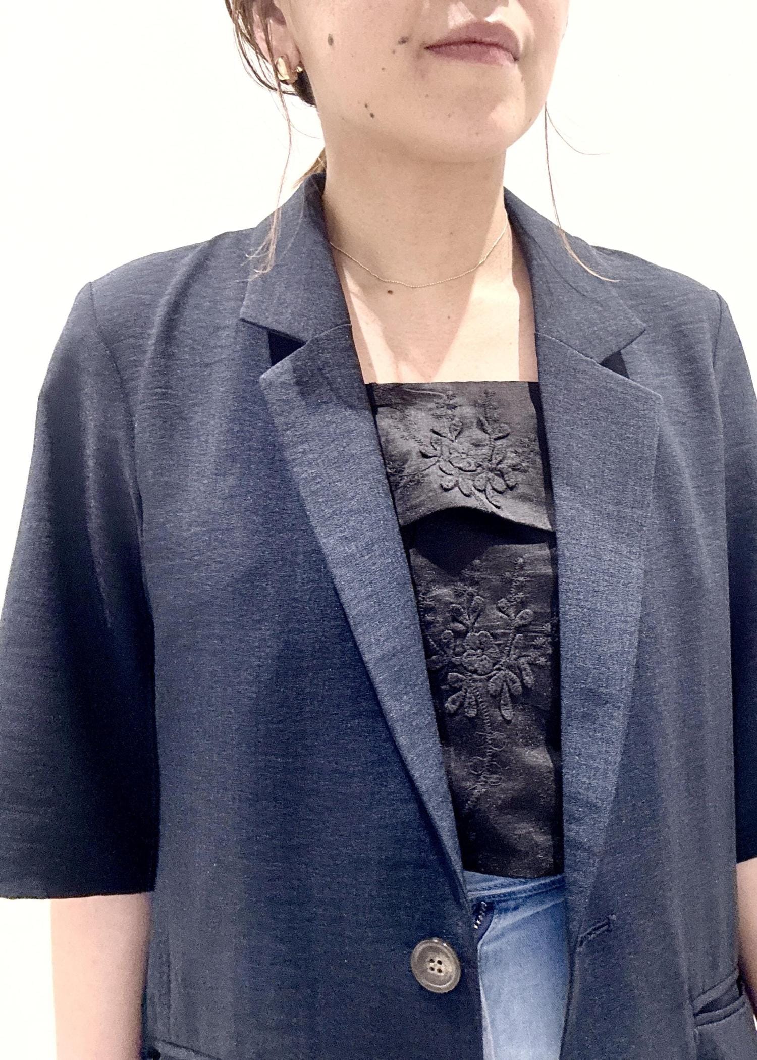 VIS【美easy】ハーフスリーブジャケット/セットアップ対応・洗えるネイビー / S¥7,909レビュー夏身長155cmの私はSサイズでお尻が隠れる着丈でした。