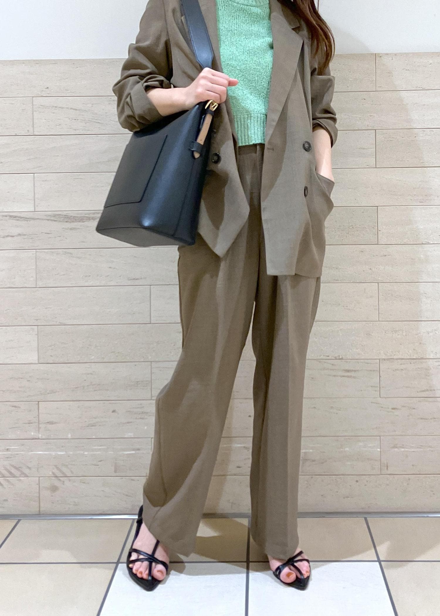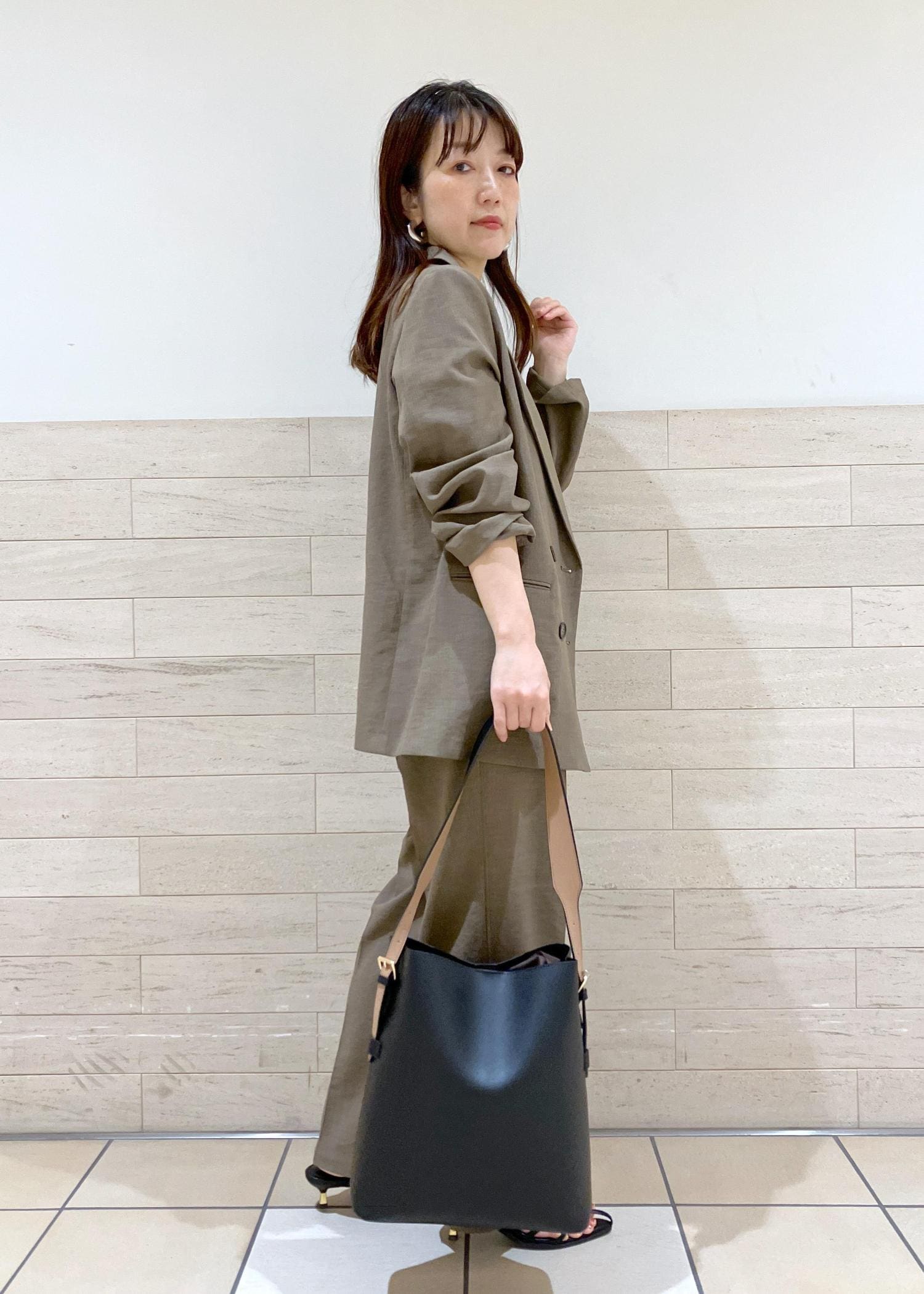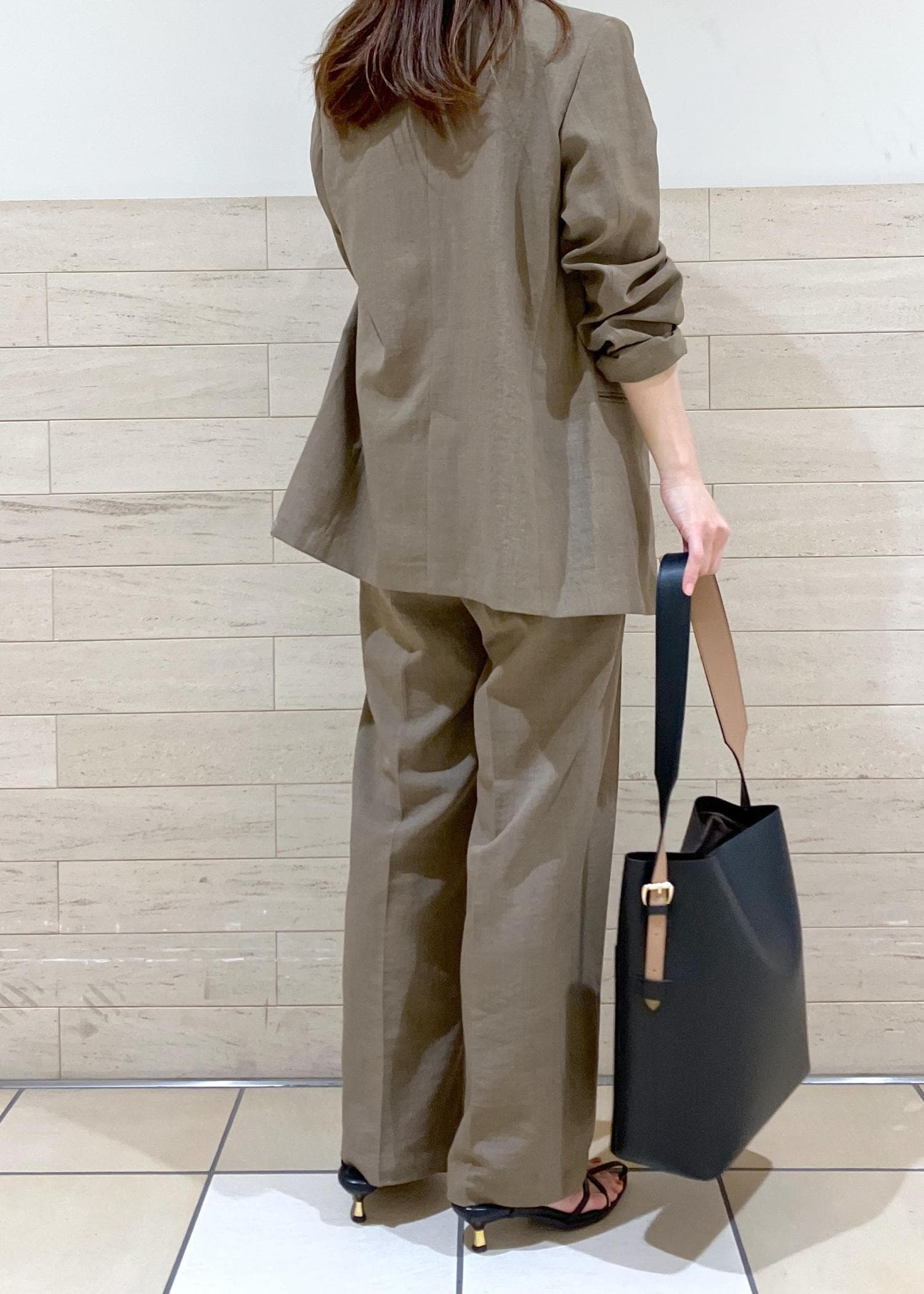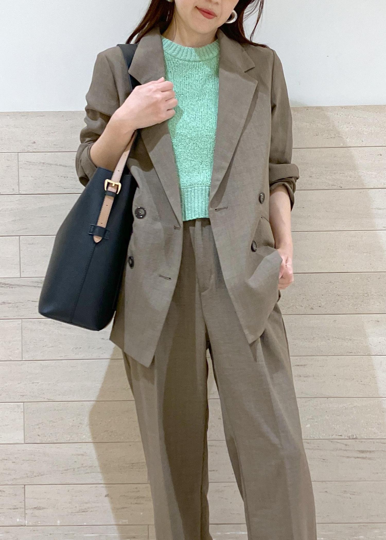 ハンサム女子におすすめのジャケット×パンツのセットアップstylingです。