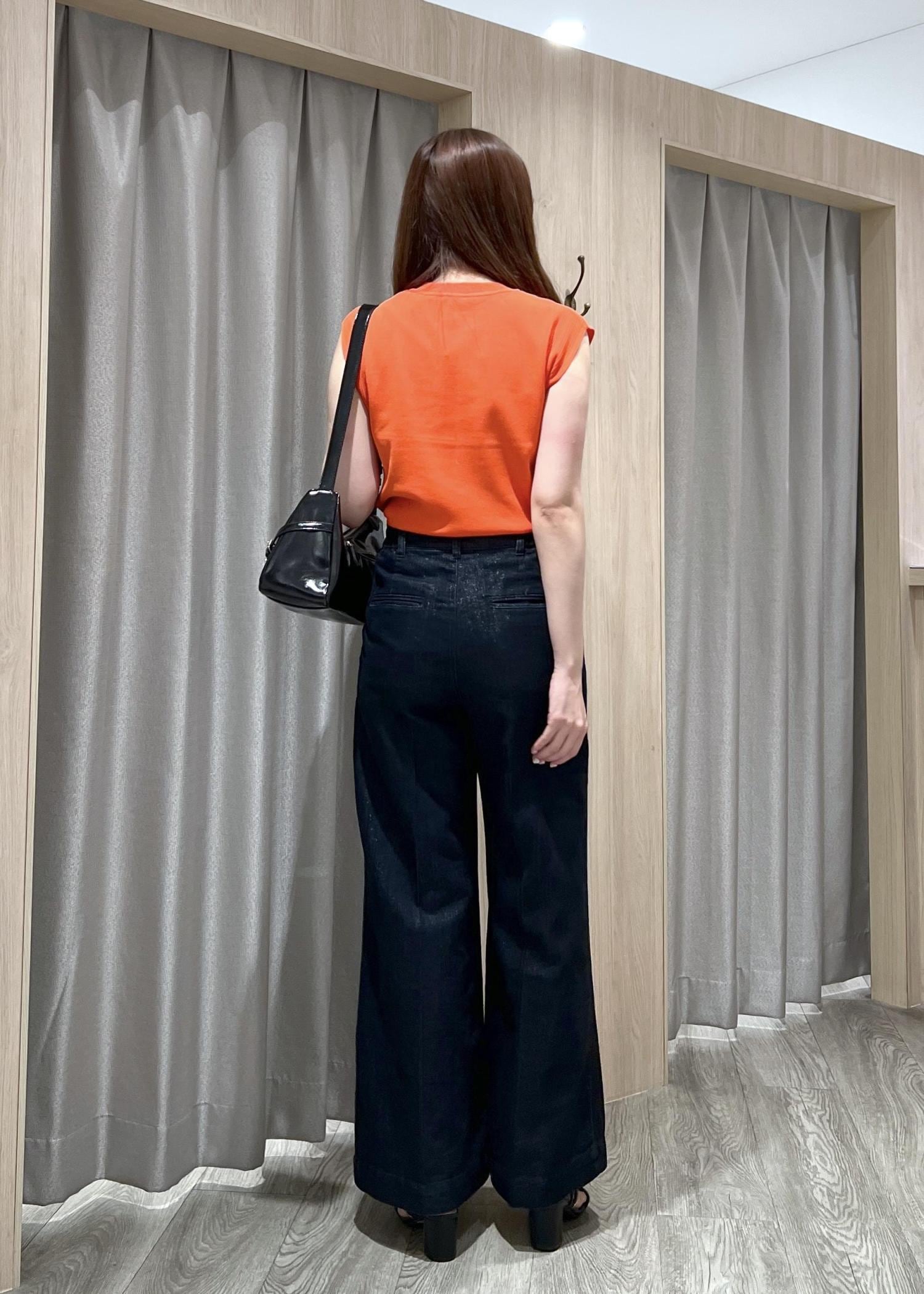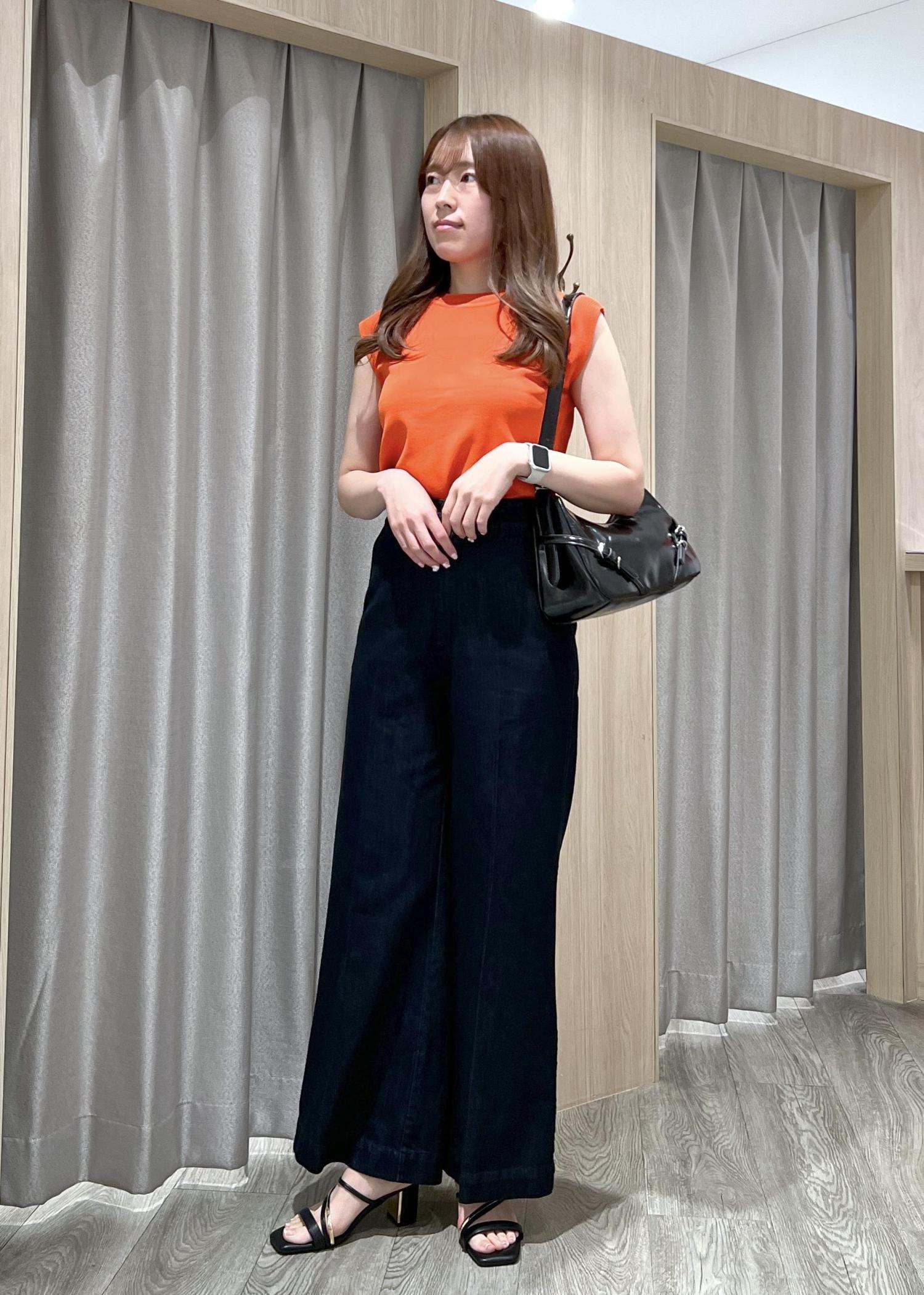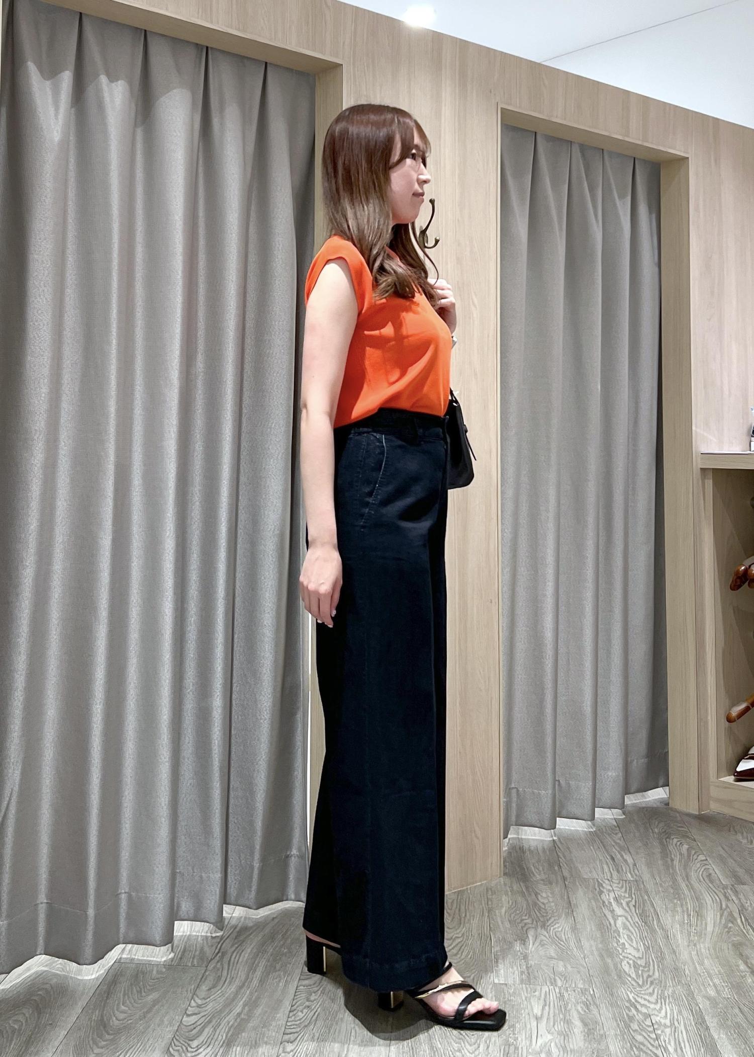VIS【UVケア/接触冷感/洗える】美人スリーブニットオレンジ / F¥3,850レビュー着心地はぴったりしすぎず、程よく余裕のあるサイズ感です!気になる肩周りが出過ぎないのもポイント◎