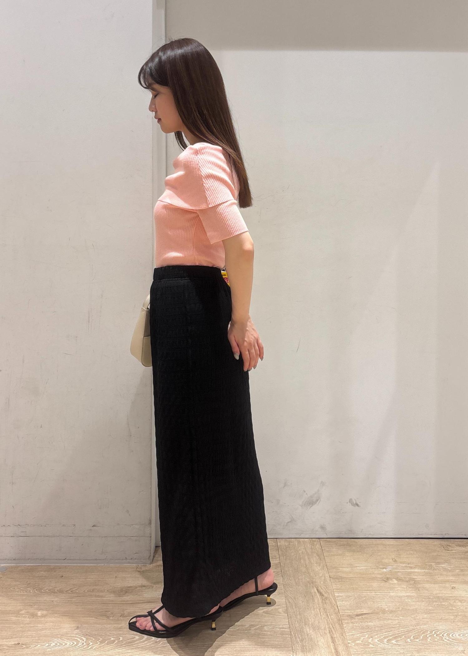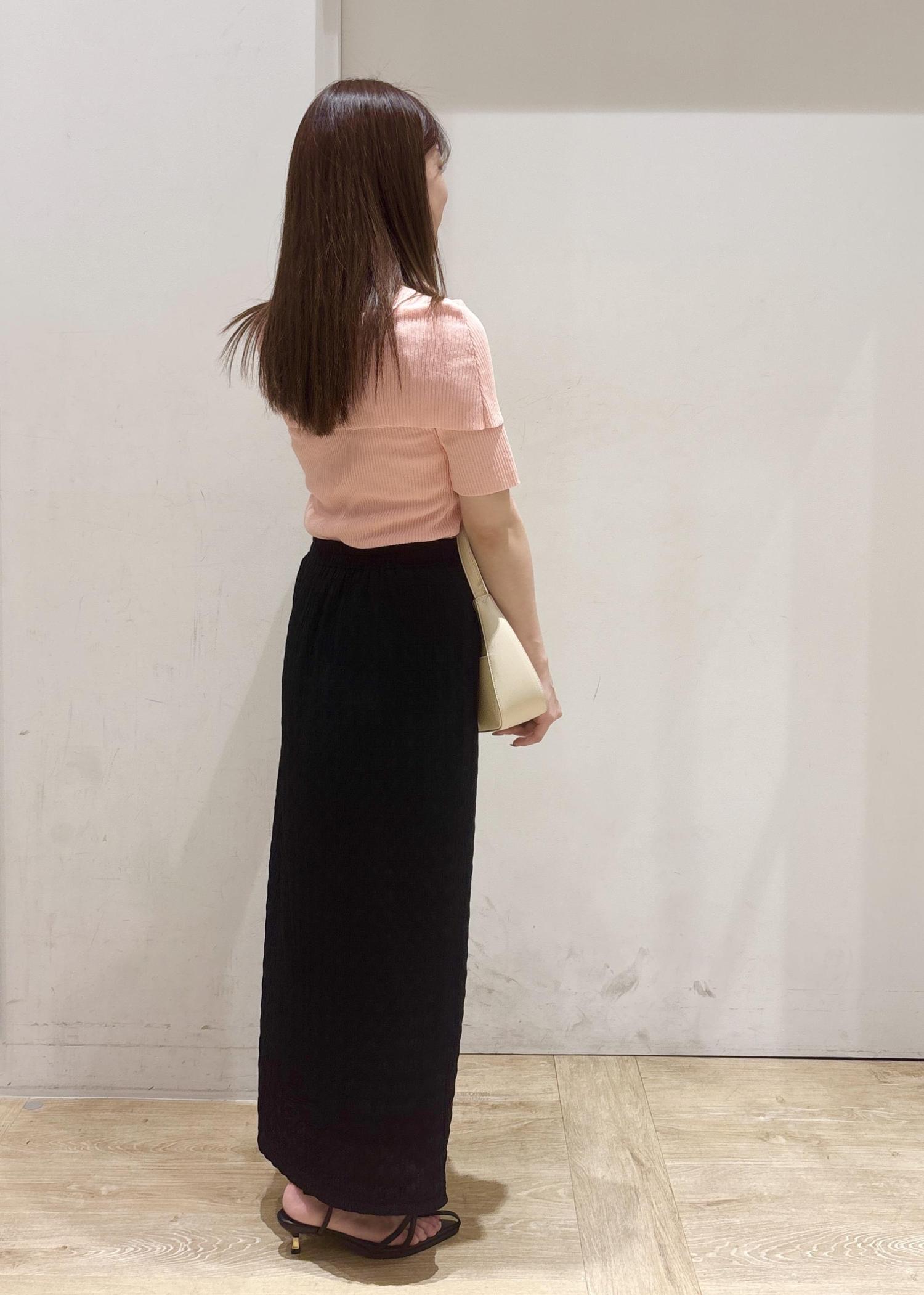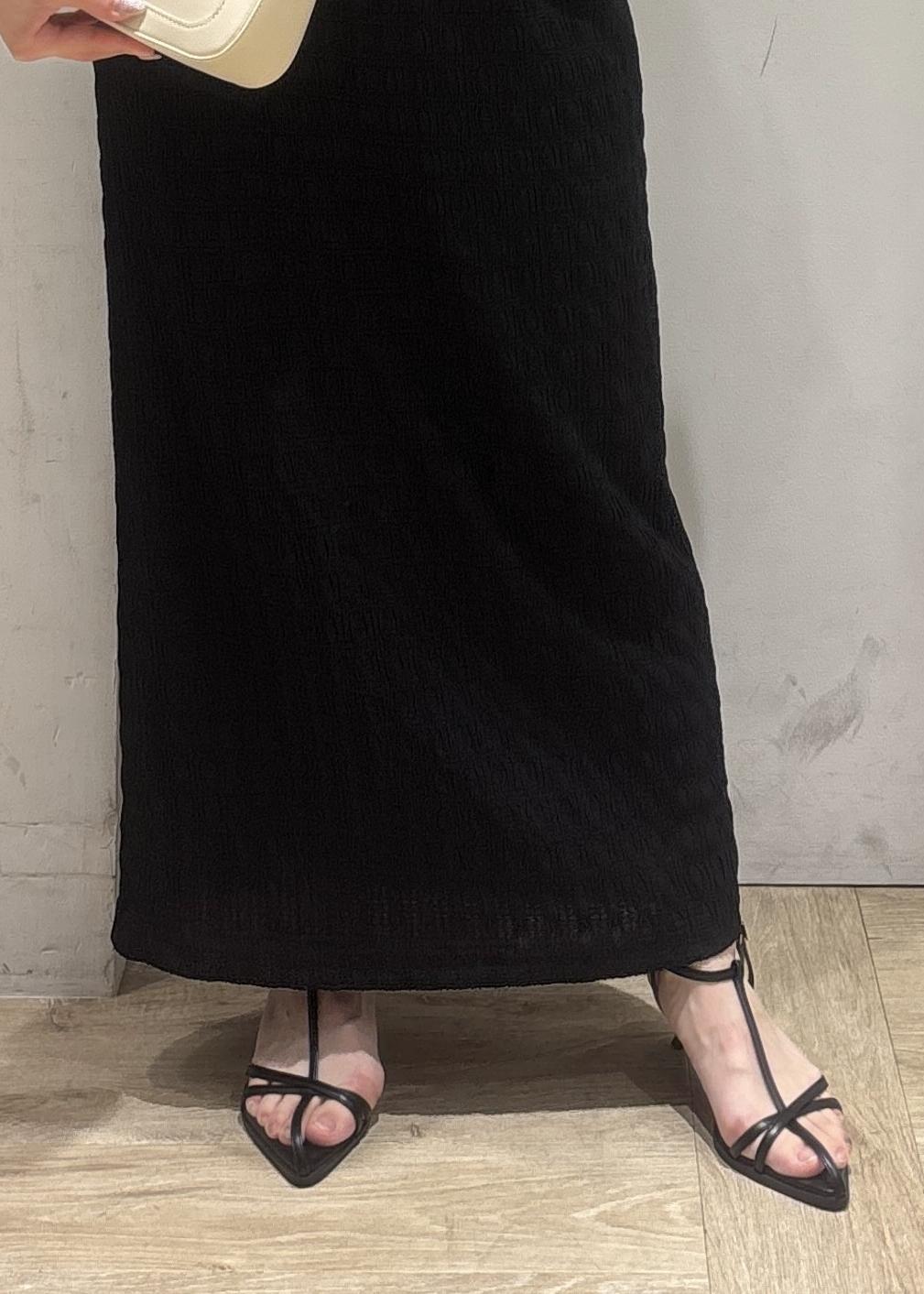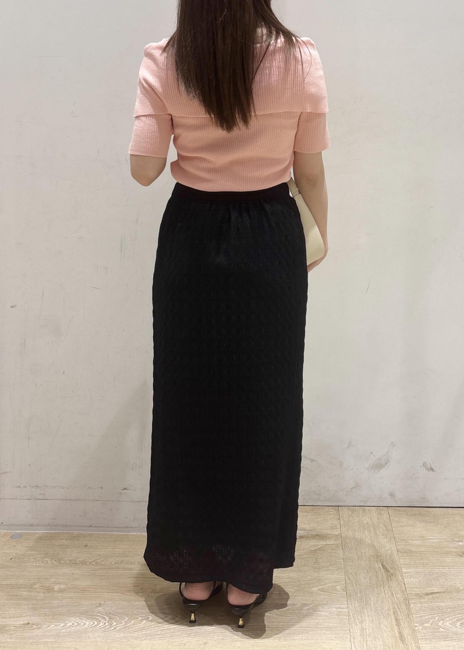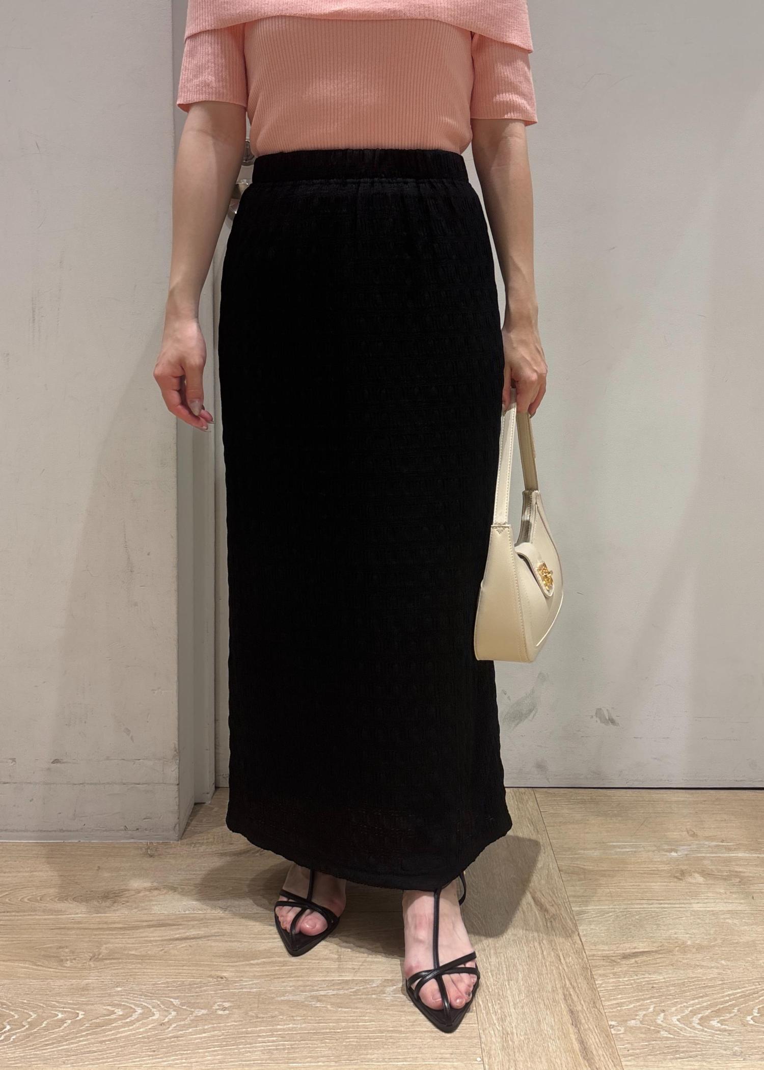 アウトレットVIS【新色追加】【接触冷感】膨れジャガードナロースカートブラック / F¥3,293レビュー158cmでちょうど足首位の丈感。ウエストはゴムが入っているので動きやすく締め付け感ないです◎