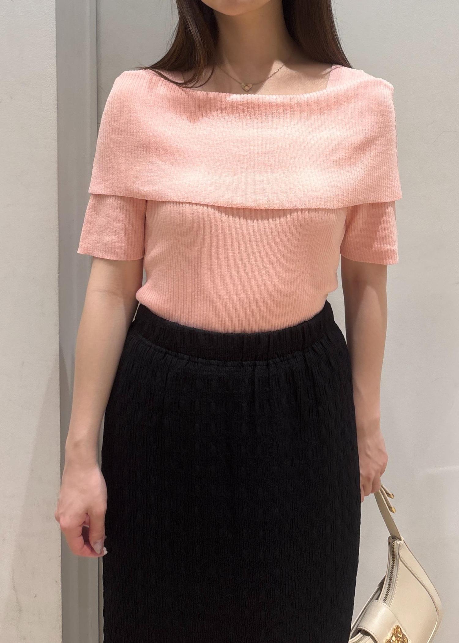 VIS【アンチピリング/UVケア/洗える】オフショルハーフスリーブニットピンク / F¥4,939レビュー着丈は腰がすっぽり隠れるくらいで、ボトムインしやすかったです◎